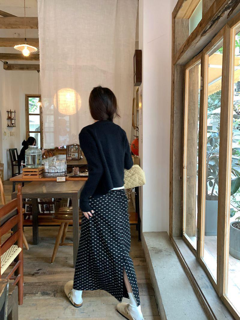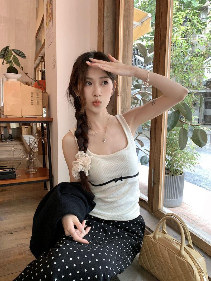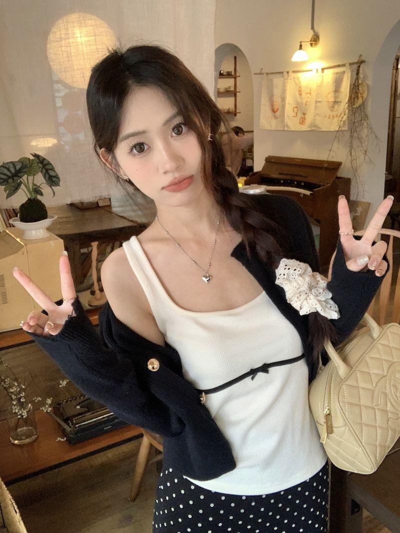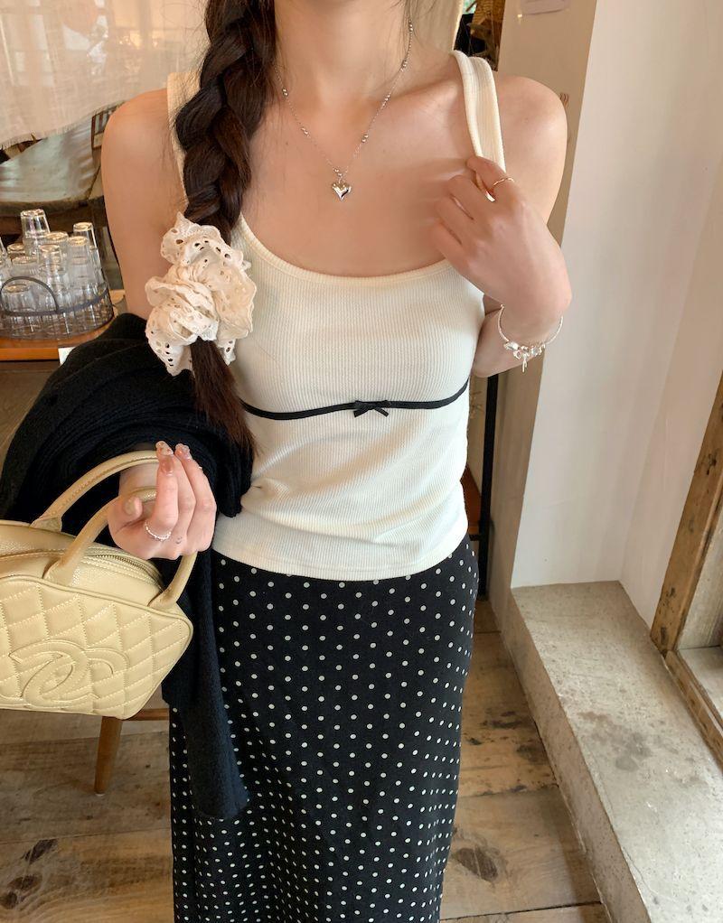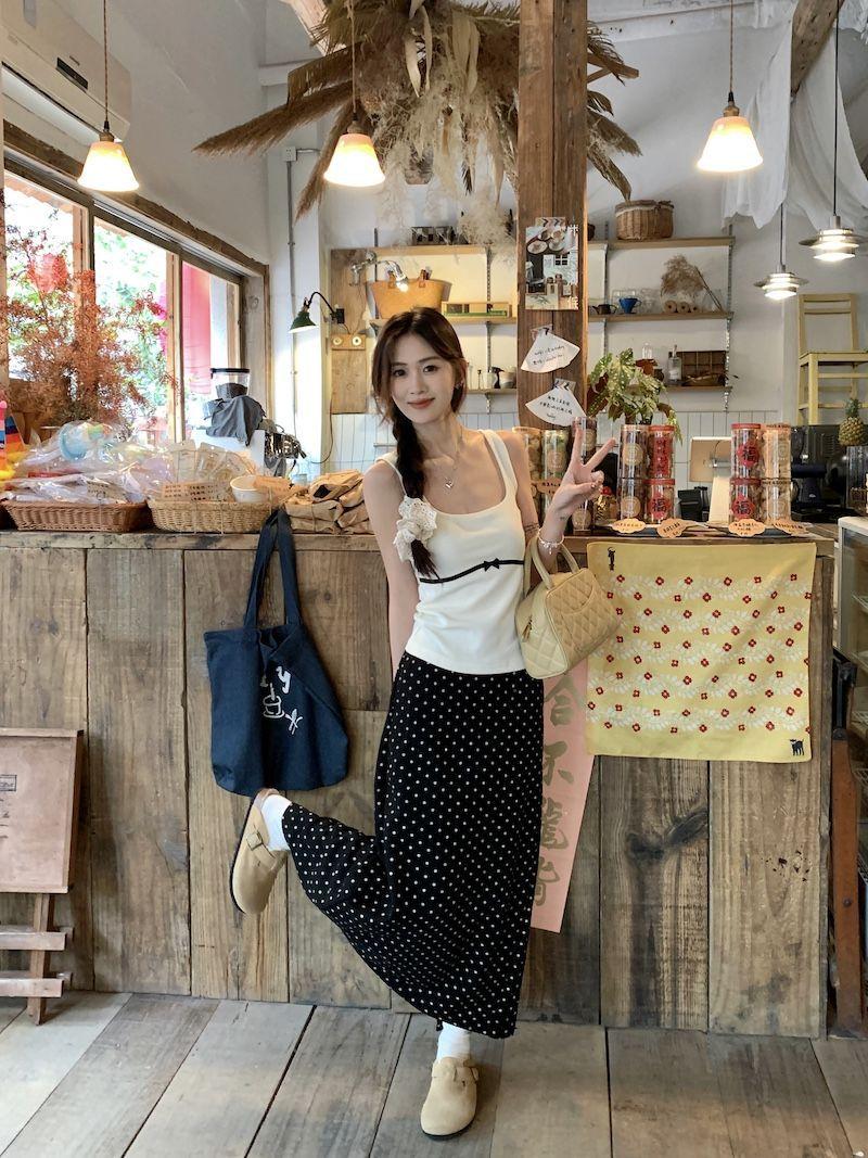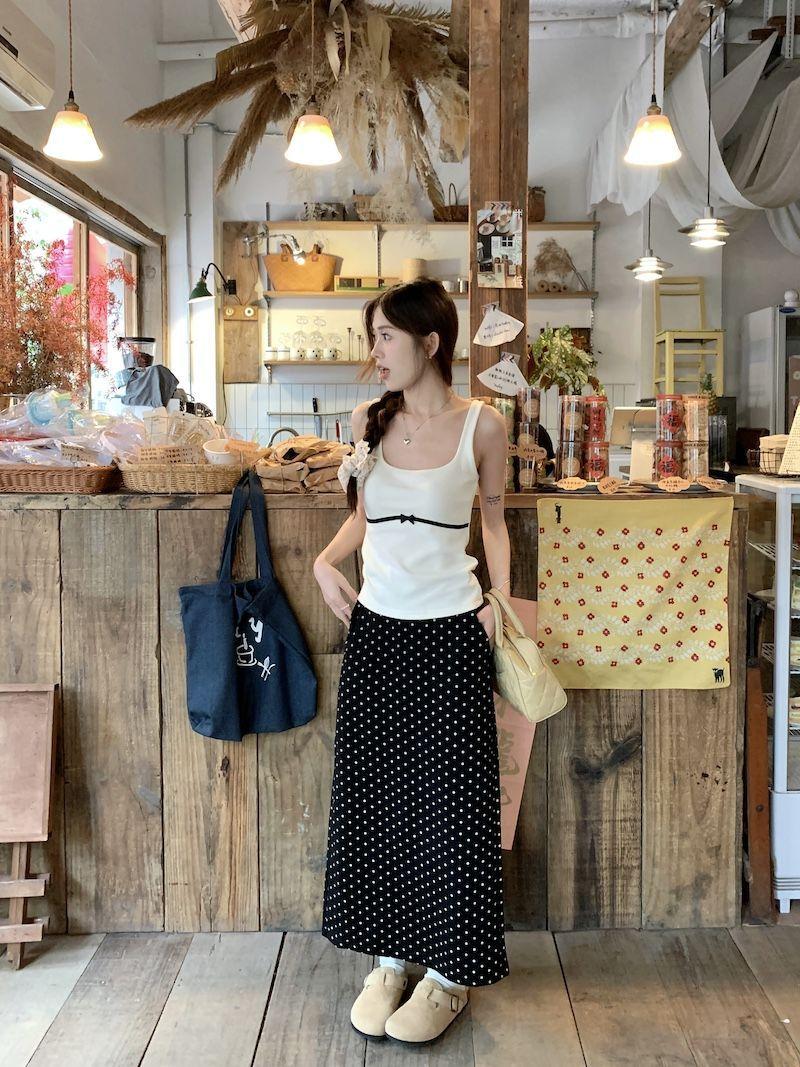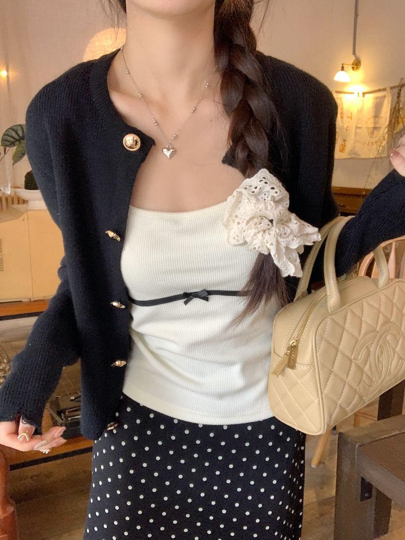 Polka dot skirt [flowers selected good quality], Black cardigan [flowers are selected with good quality], Cami...
