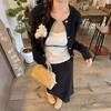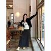 Traje Estilo Tweed para Mujer Primavera Cárdigan Corto de Punto Coreano Camisola Falda de Lunares Moda Conjunto de Tres Piezas