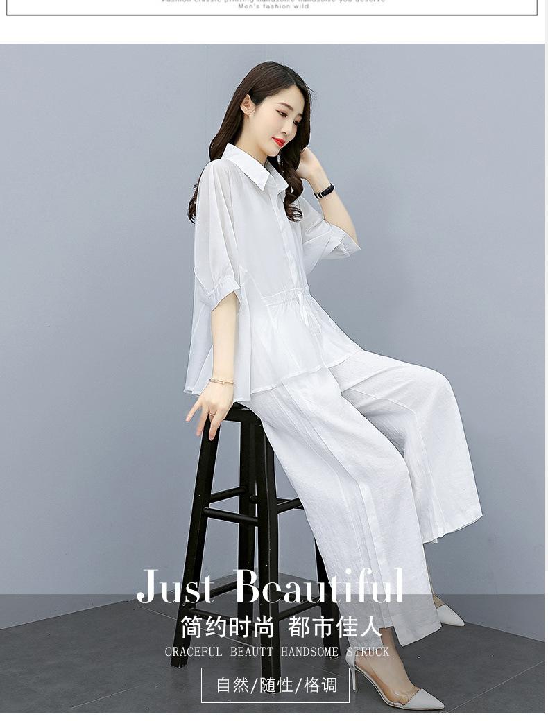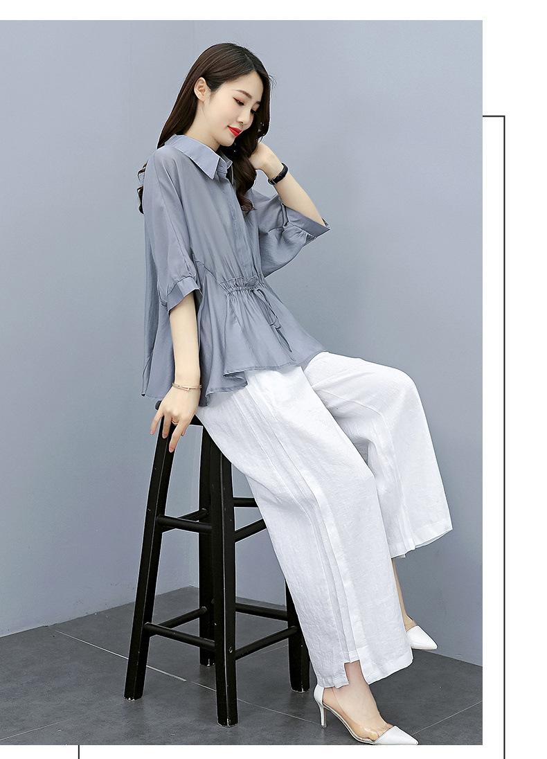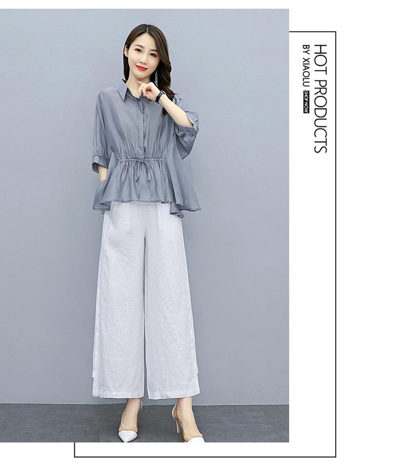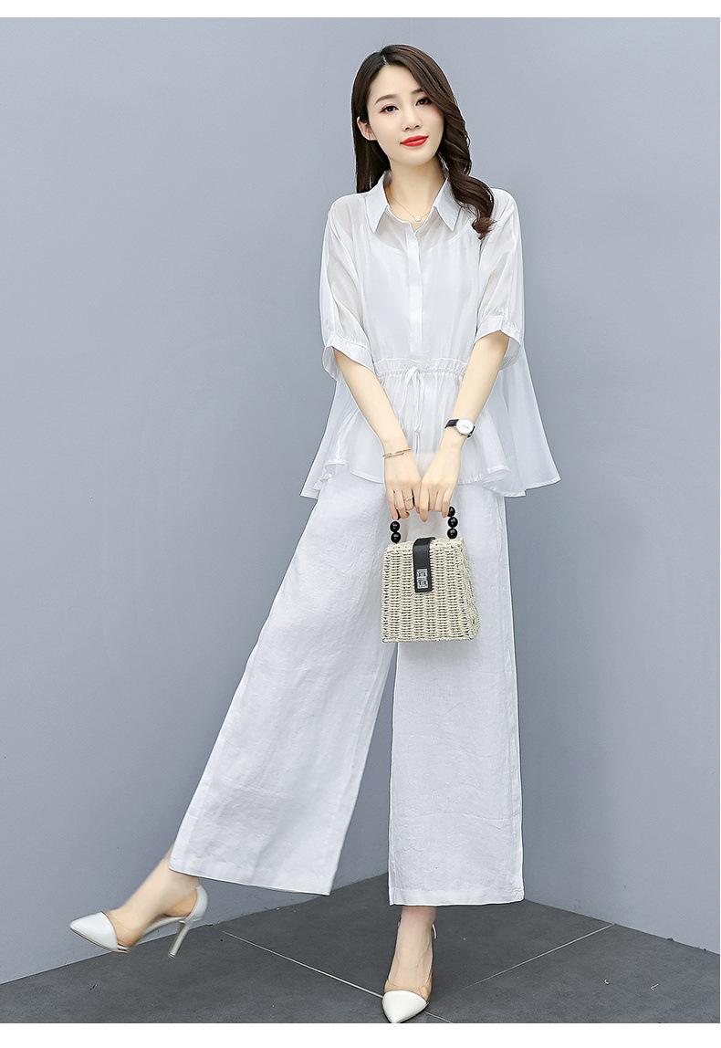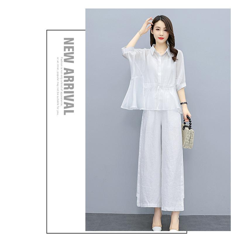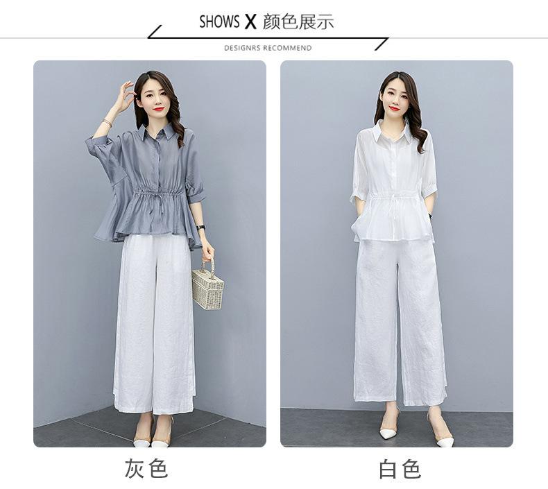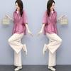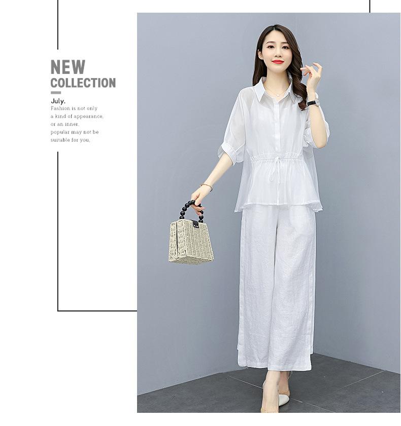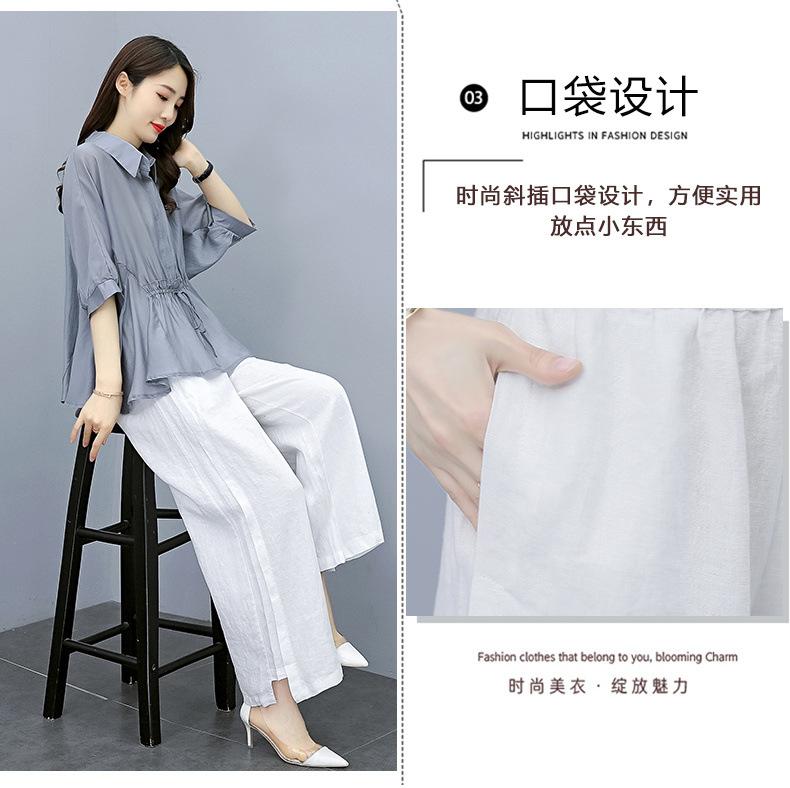 Traje de algodón y lino de moda para mujer, primavera y verano, nuevo, elegante, adelgazante, estilo occidental, pantalones de lino antiedad, conjunto de dos piezas con pierna ancha