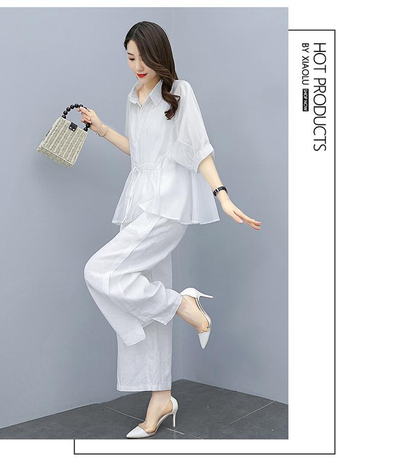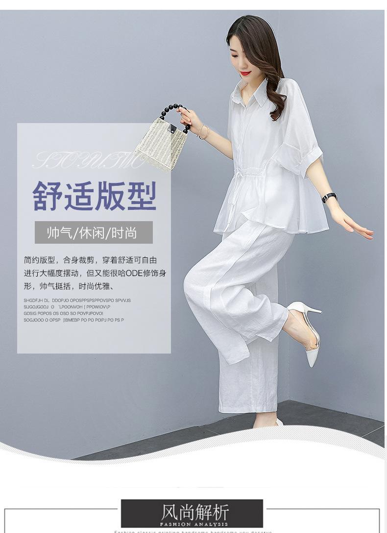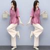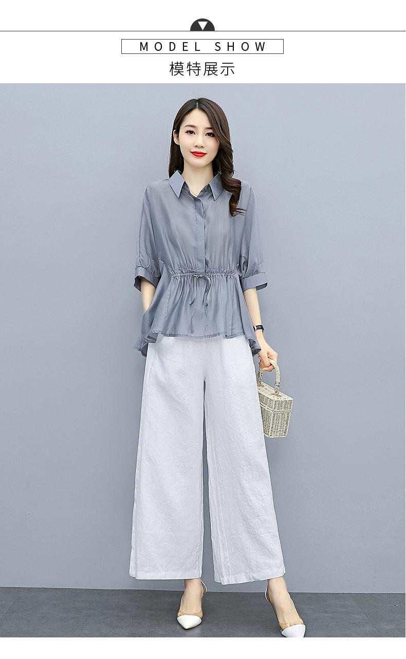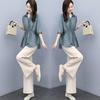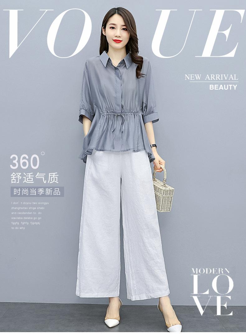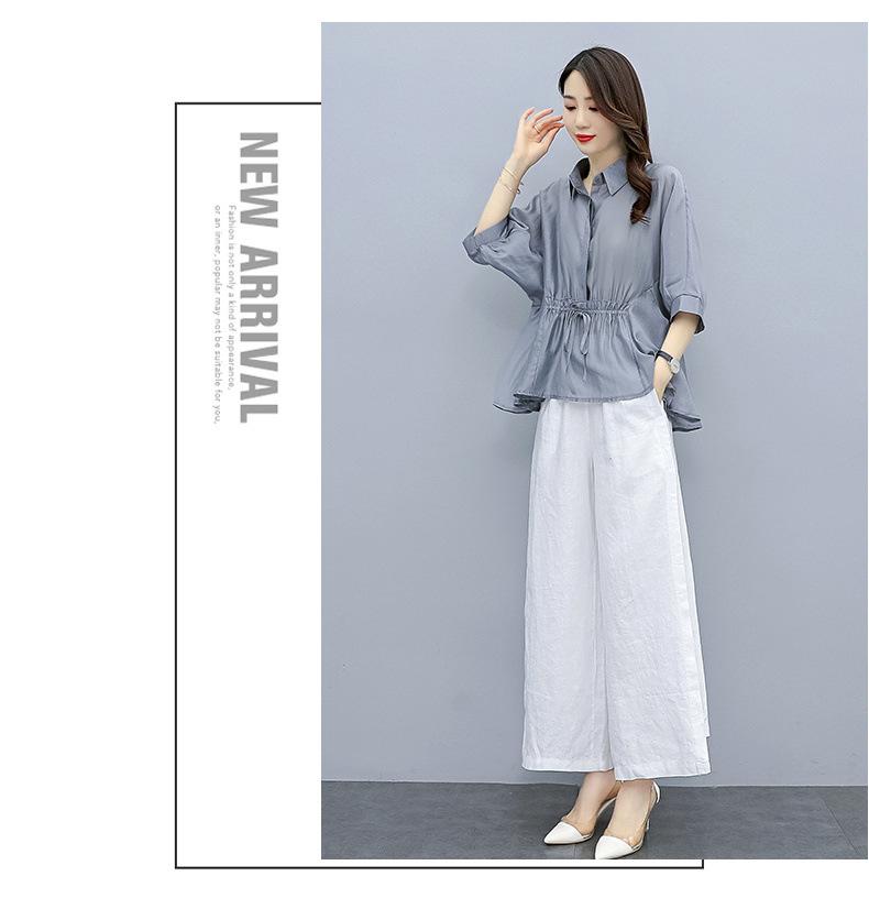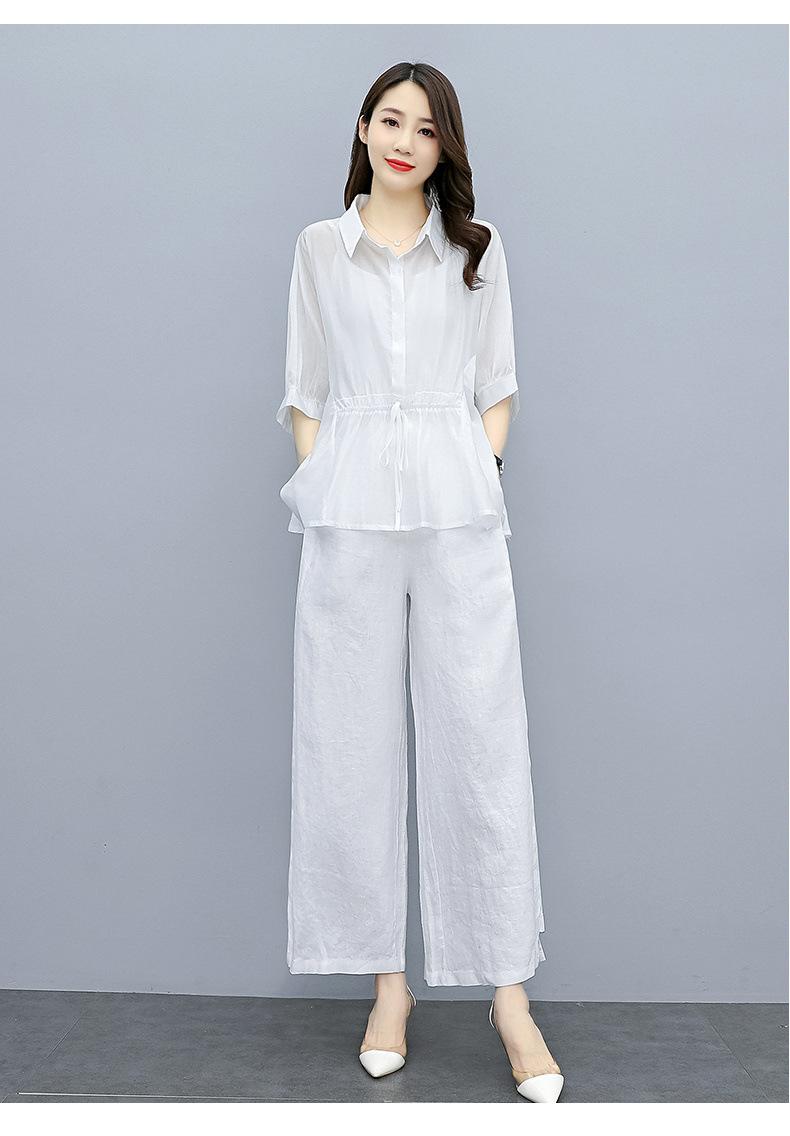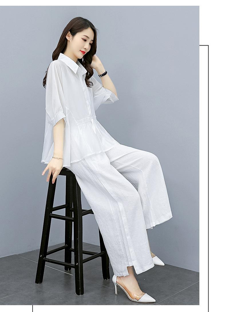 Traje de algodón y lino de moda para mujer, primavera y verano, nuevo, elegante, adelgazante, estilo occidental, pantalones de lino antiedad, conjunto de dos piezas con pierna ancha