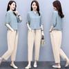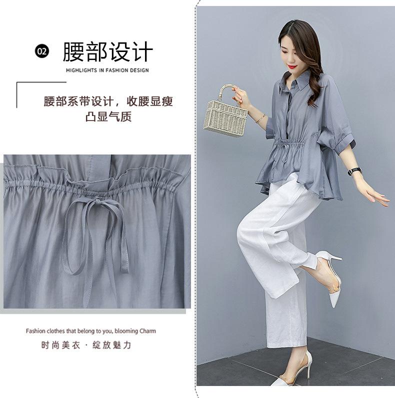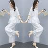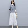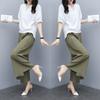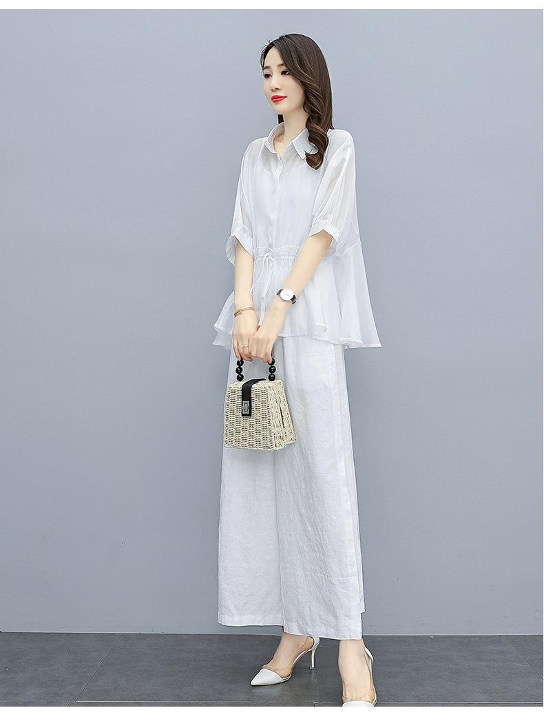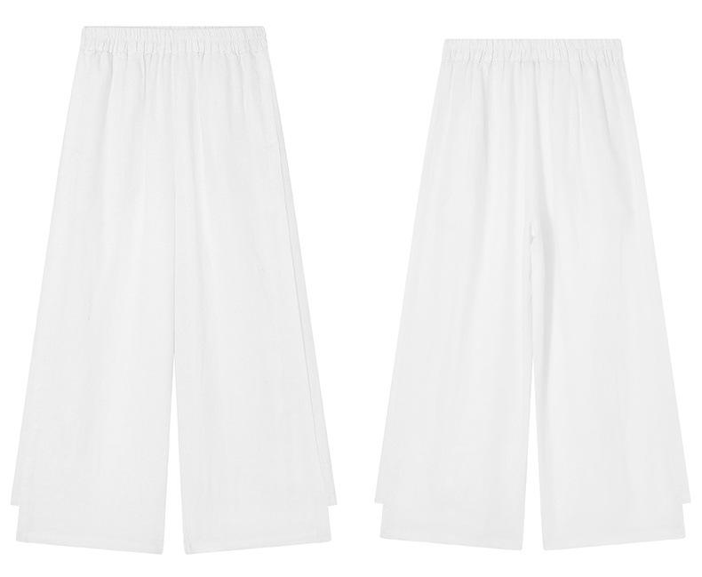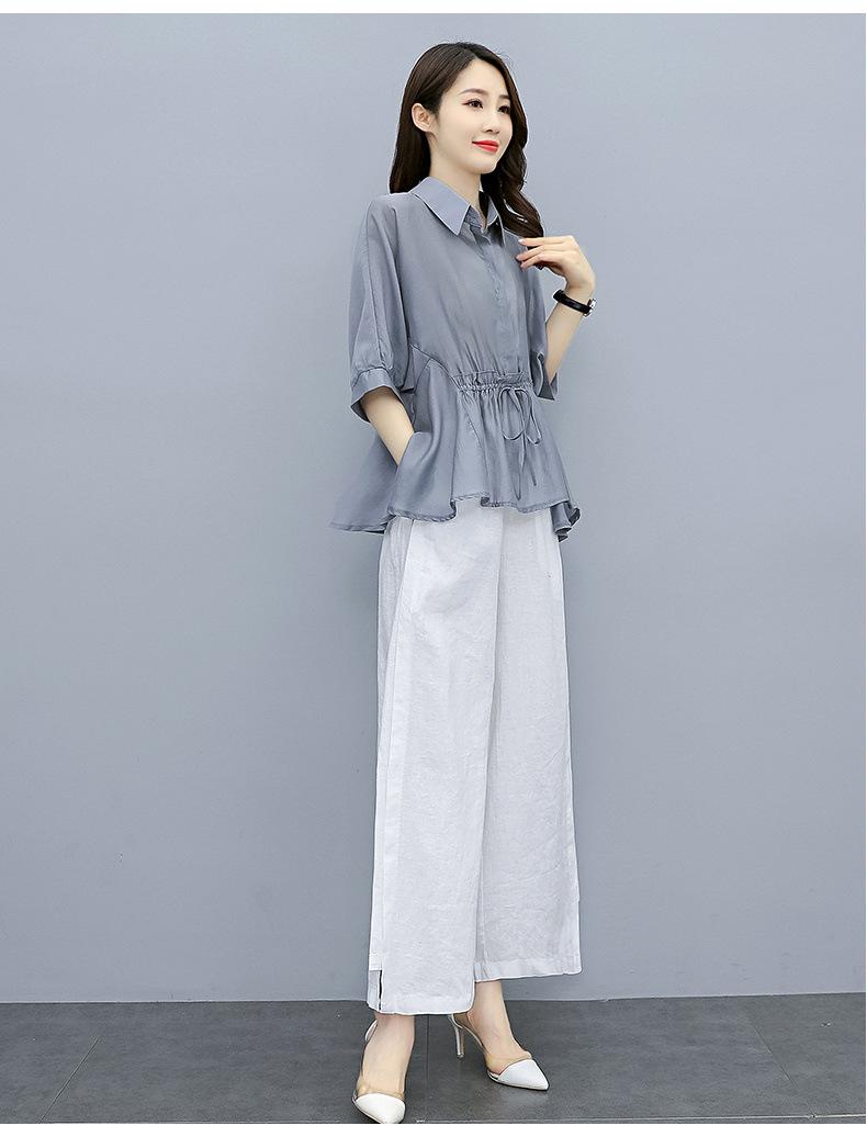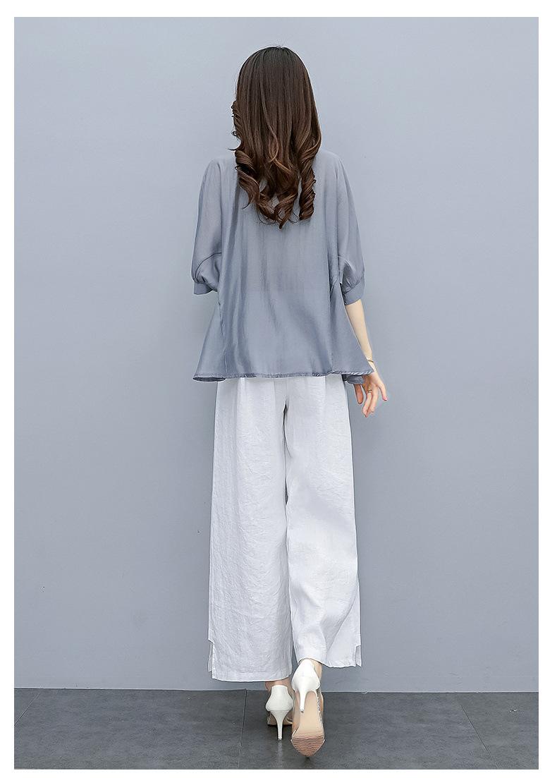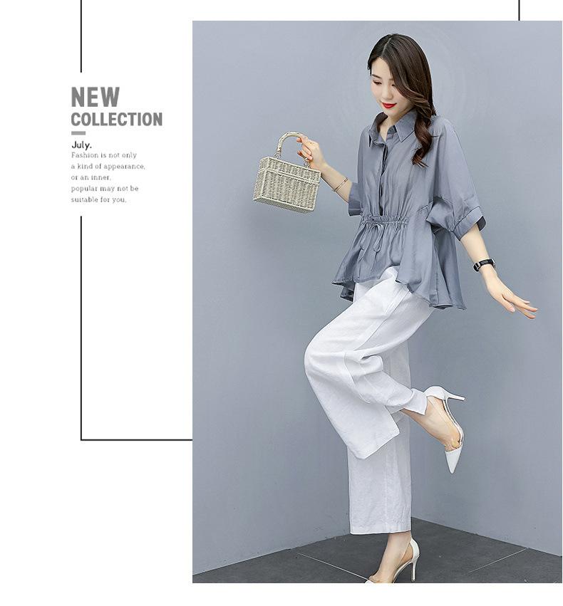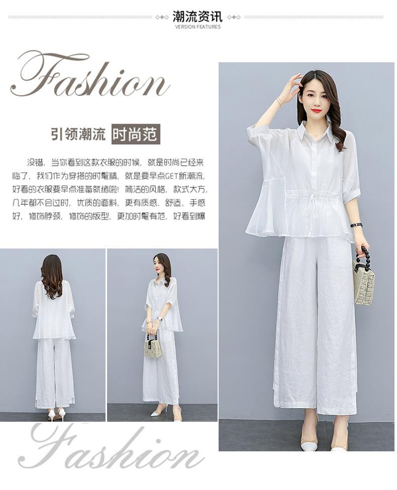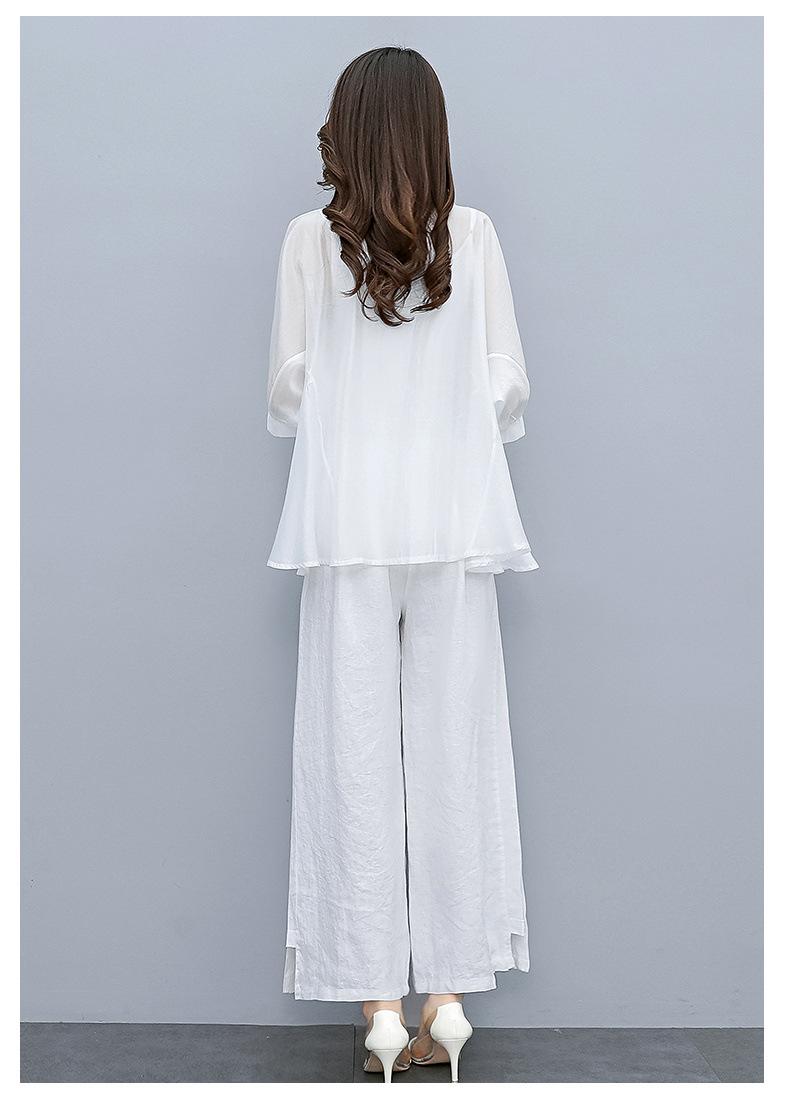 Traje de algodón y lino de moda para mujer, primavera y verano, nuevo, elegante, adelgazante, estilo occidental, pantalones de lino antiedad, conjunto de dos piezas con pierna ancha