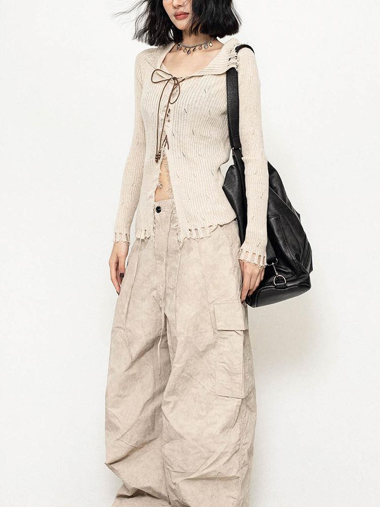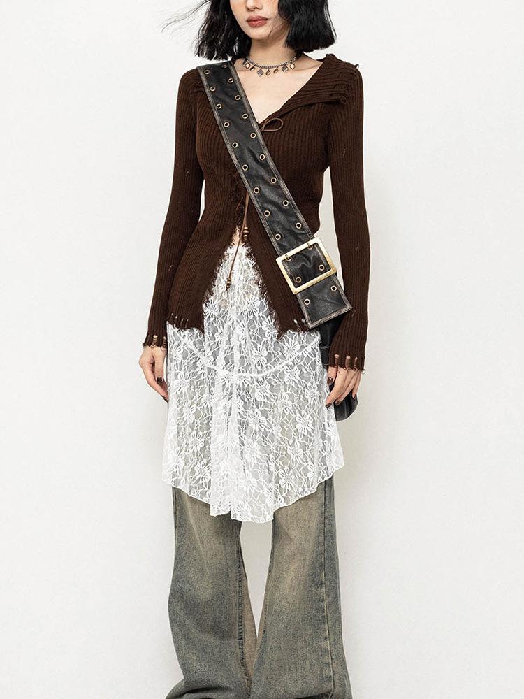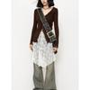 Suéter Americano Retro con Tirantes y Manga Larga para Mujer en Otoño e Invierno, Ajustado y Dulce Ropa de Trabajo Top Estilo Caliente