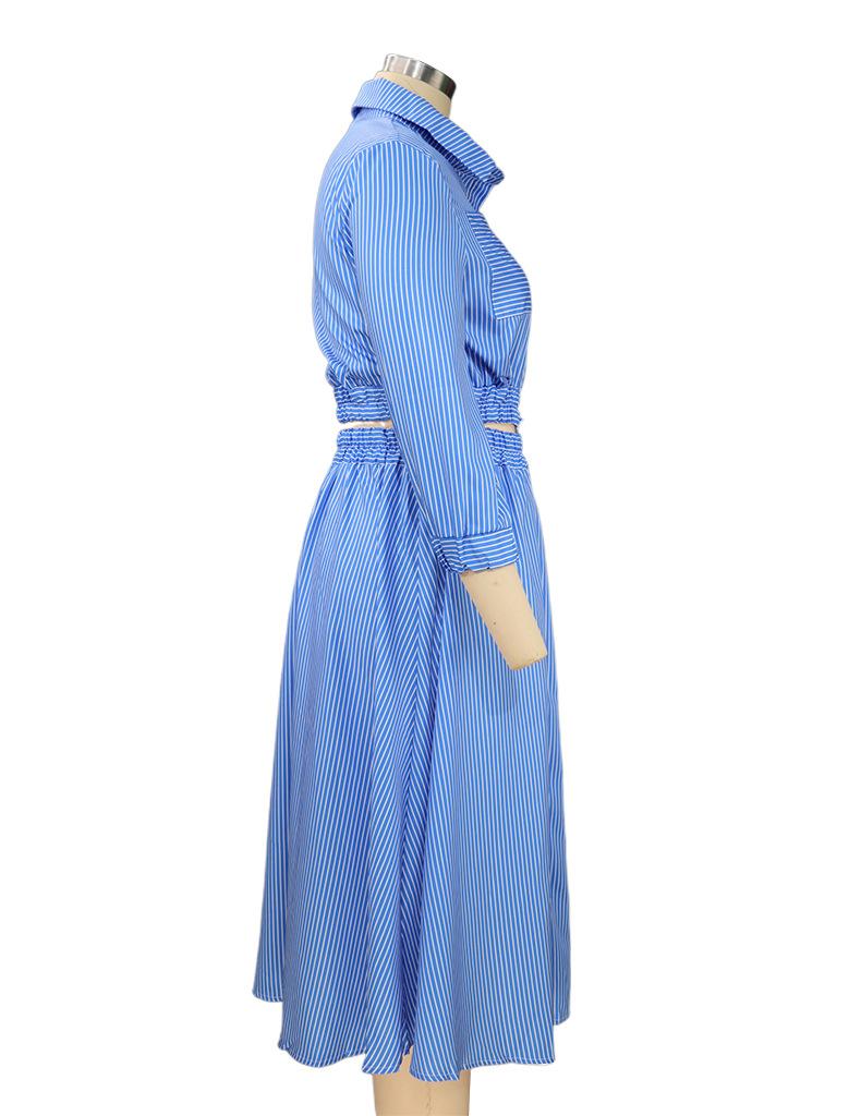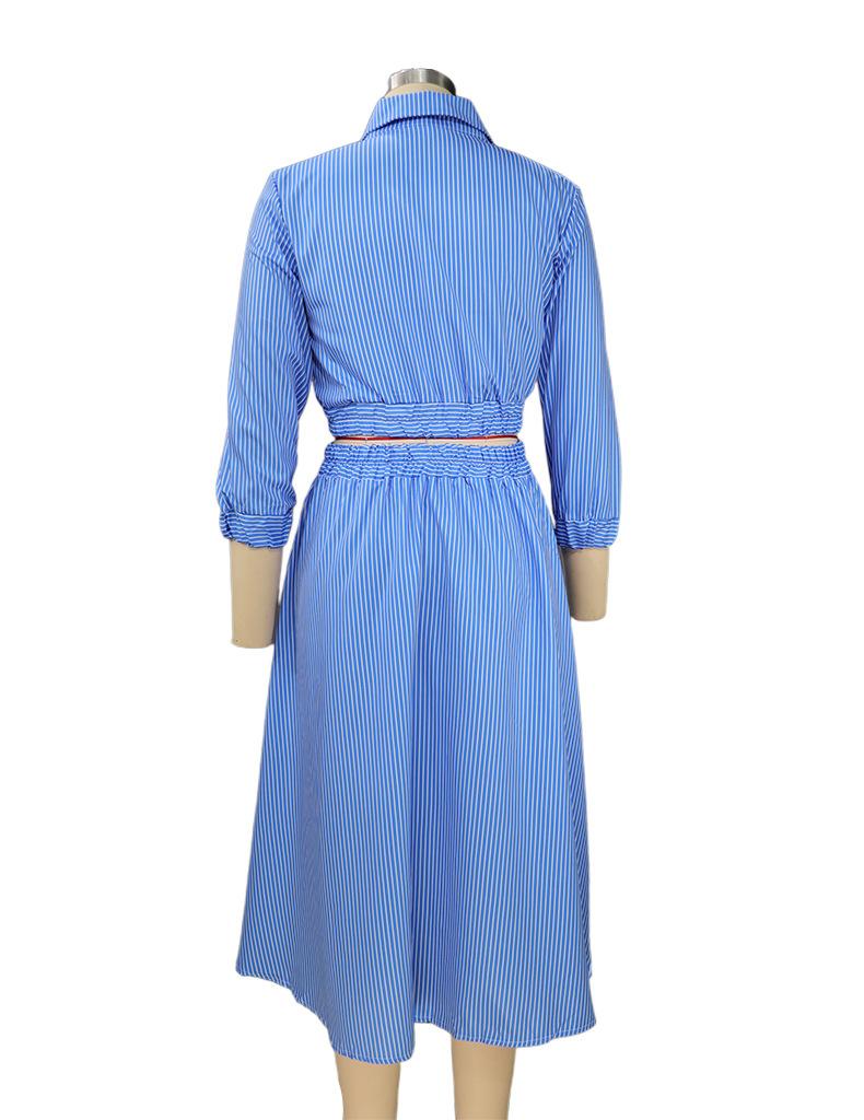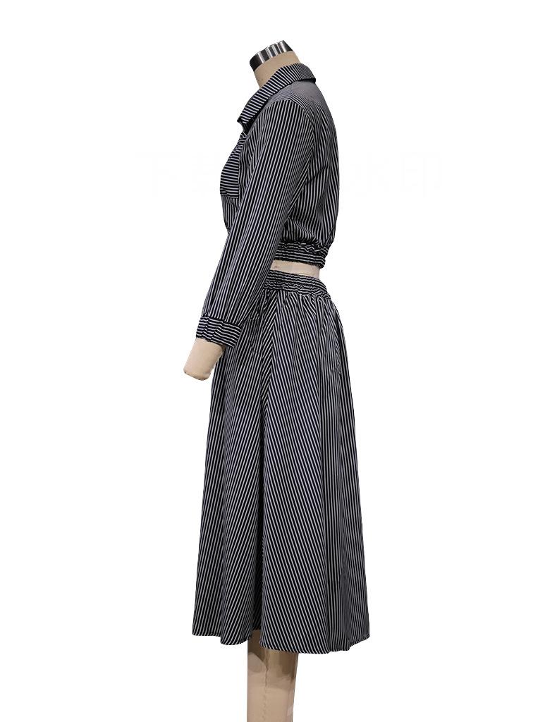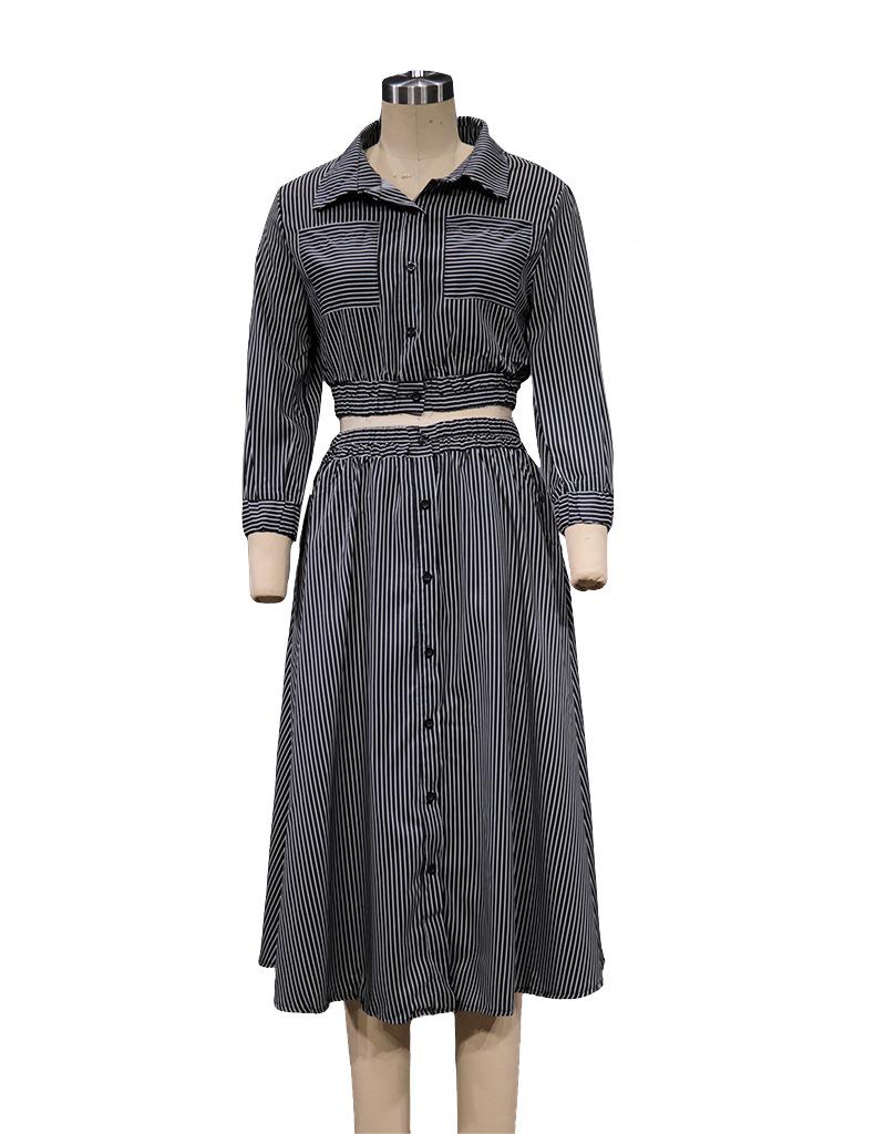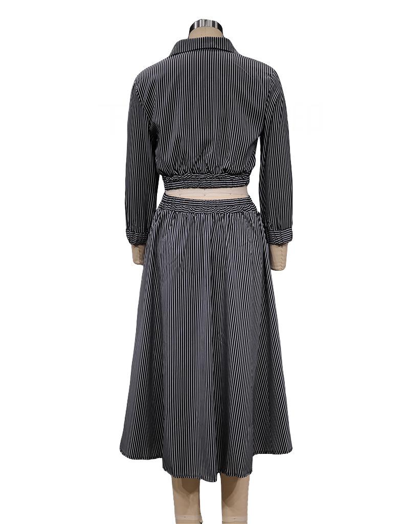 FD496 en stock otoño e invierno 2024 nueva moda temperamento manga larga traje de camisa a rayas falda conjunto de dos piezas