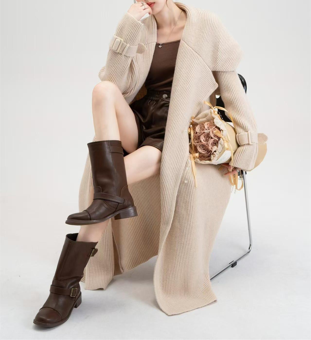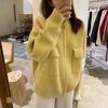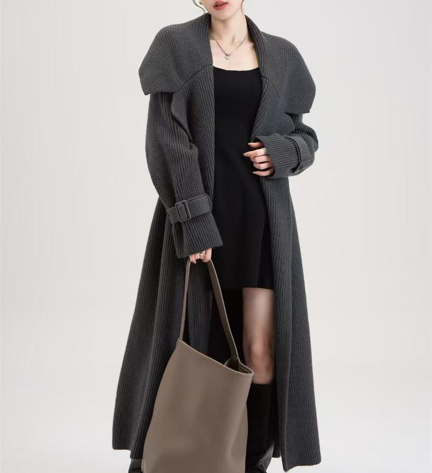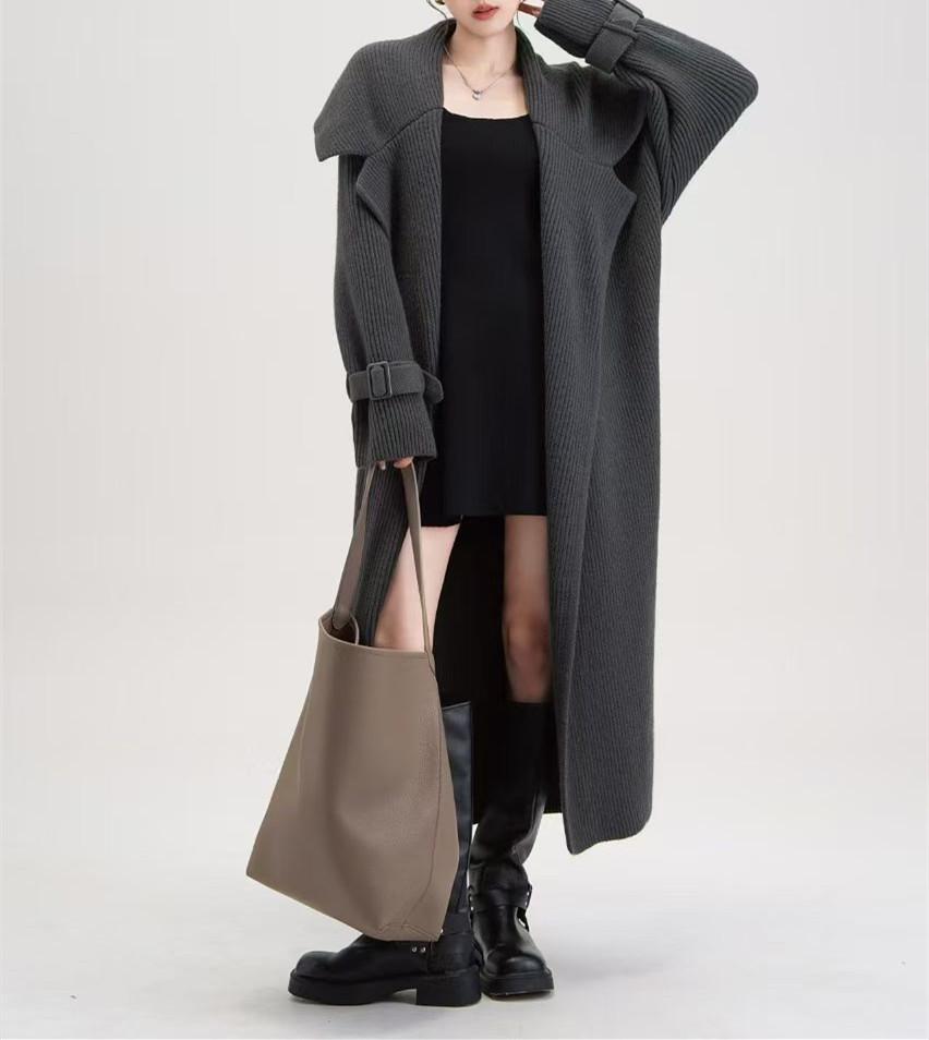 2025 Nuevo Otoño e Invierno Largo Medio Solapa Casual Moda Estilo Perezoso Suelto Elegante Chaqueta Suéter Tejido para Mujer Trendy