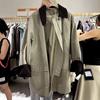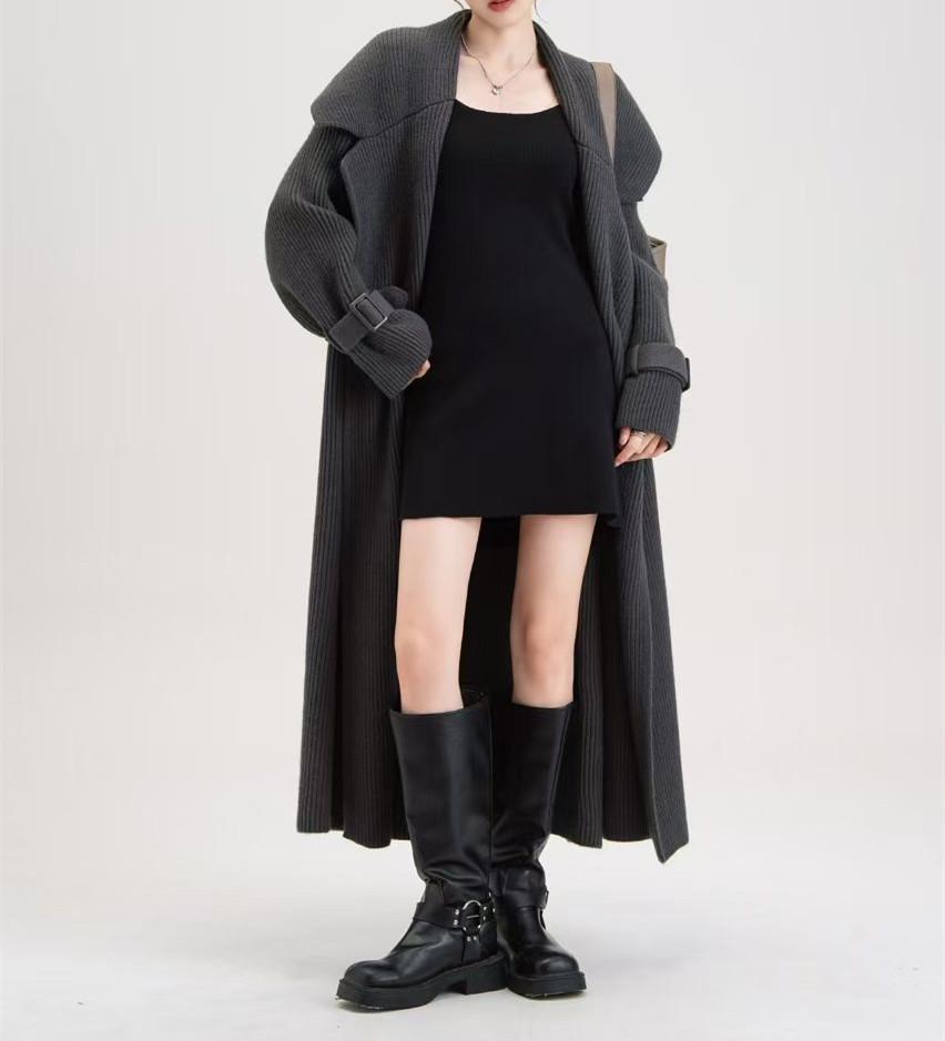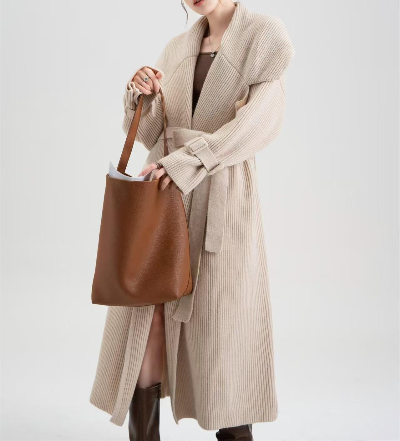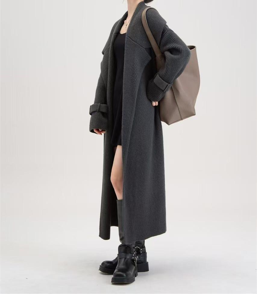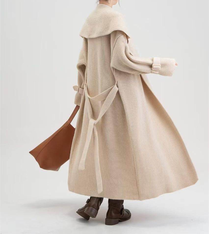 2025 Nuevo Otoño e Invierno Largo Medio Solapa Casual Moda Estilo Perezoso Suelto Elegante Chaqueta Suéter Tejido para Mujer Trendy