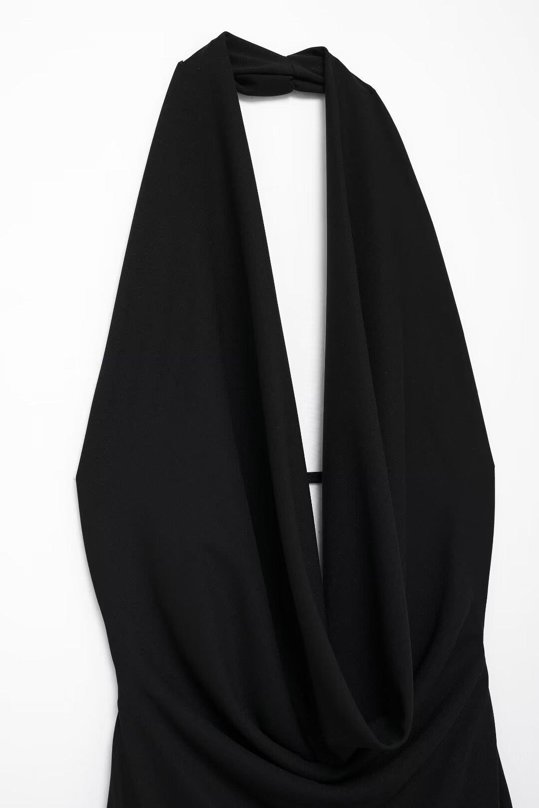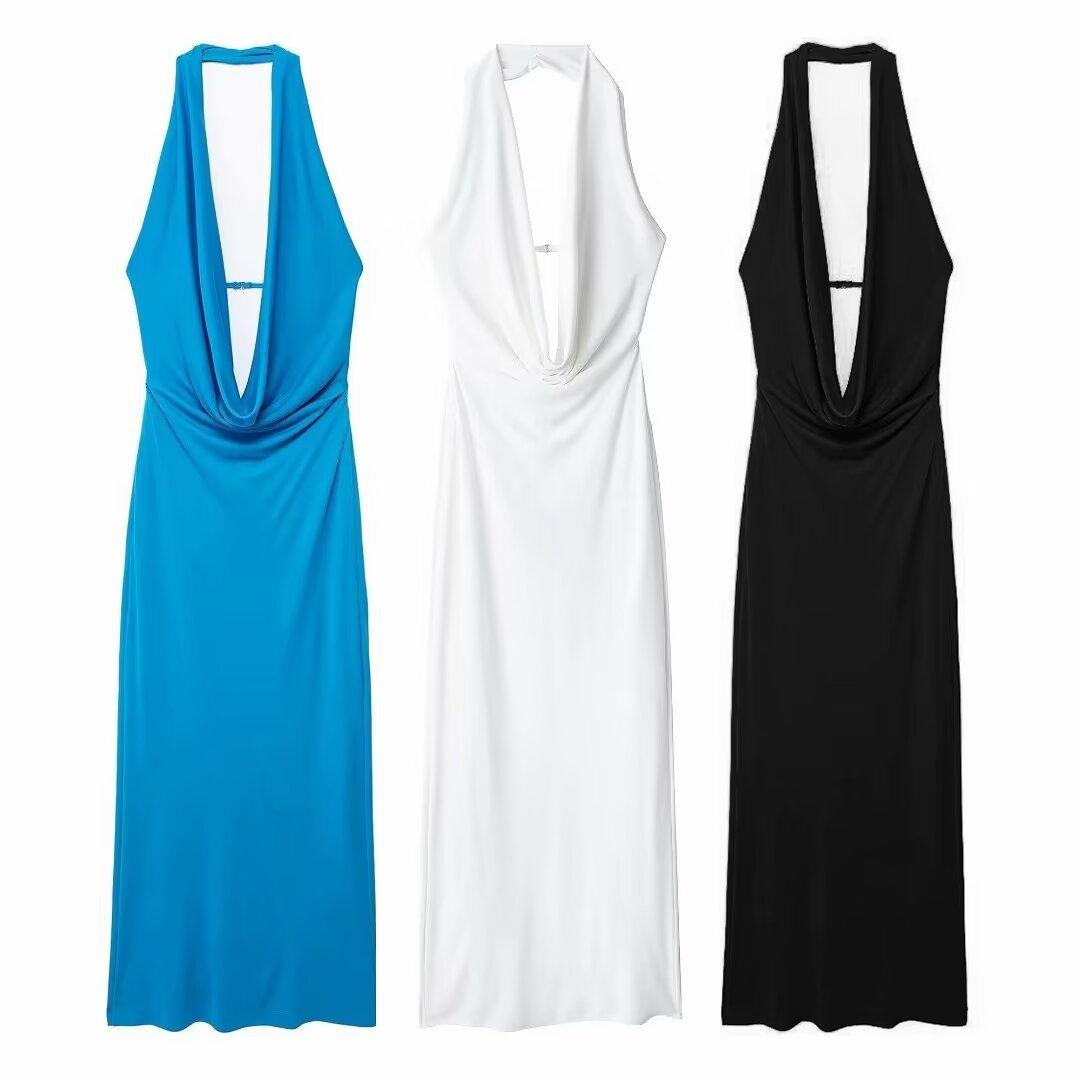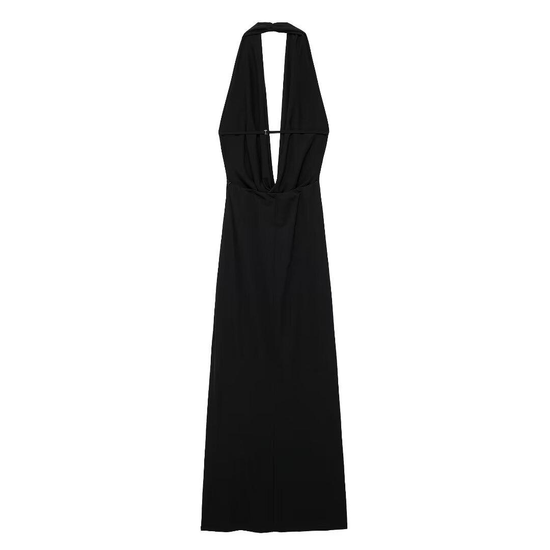 Vestido largo sin mangas con escote halter, escote en V, espalda descubierta y cintura plisada, estilo europeo y americano, novedad de verano de 2024.