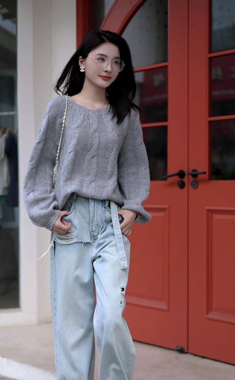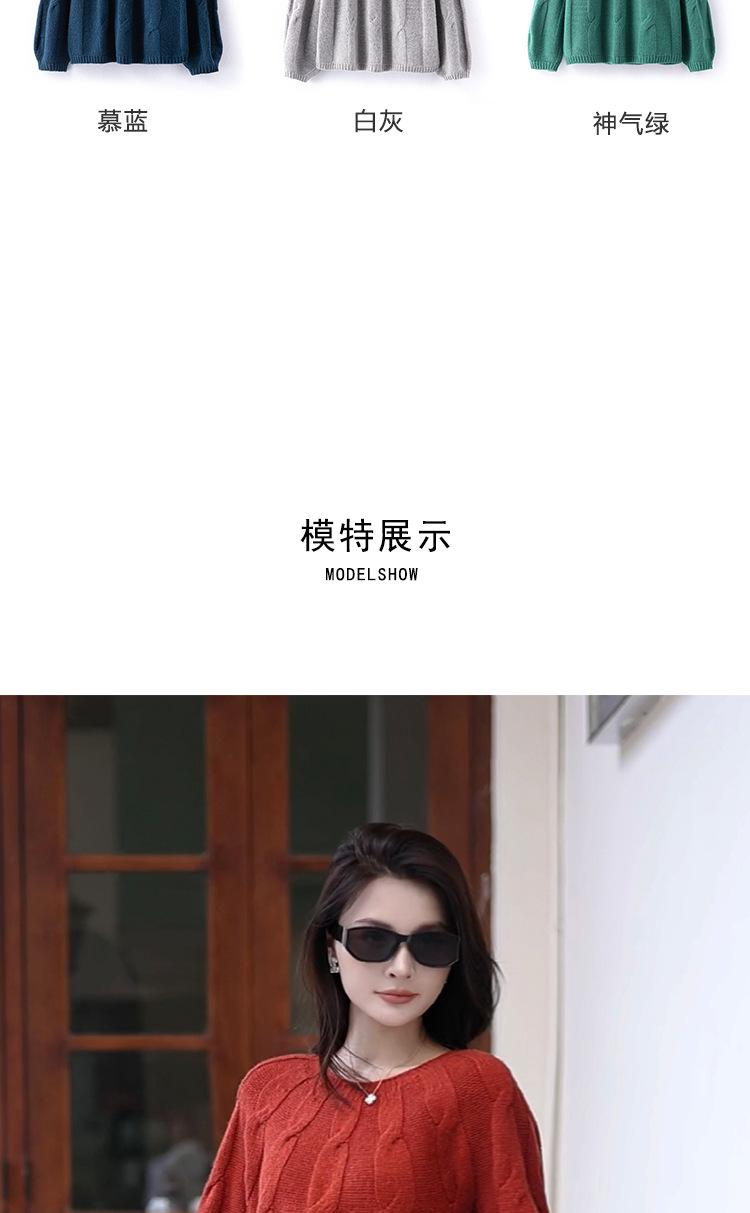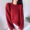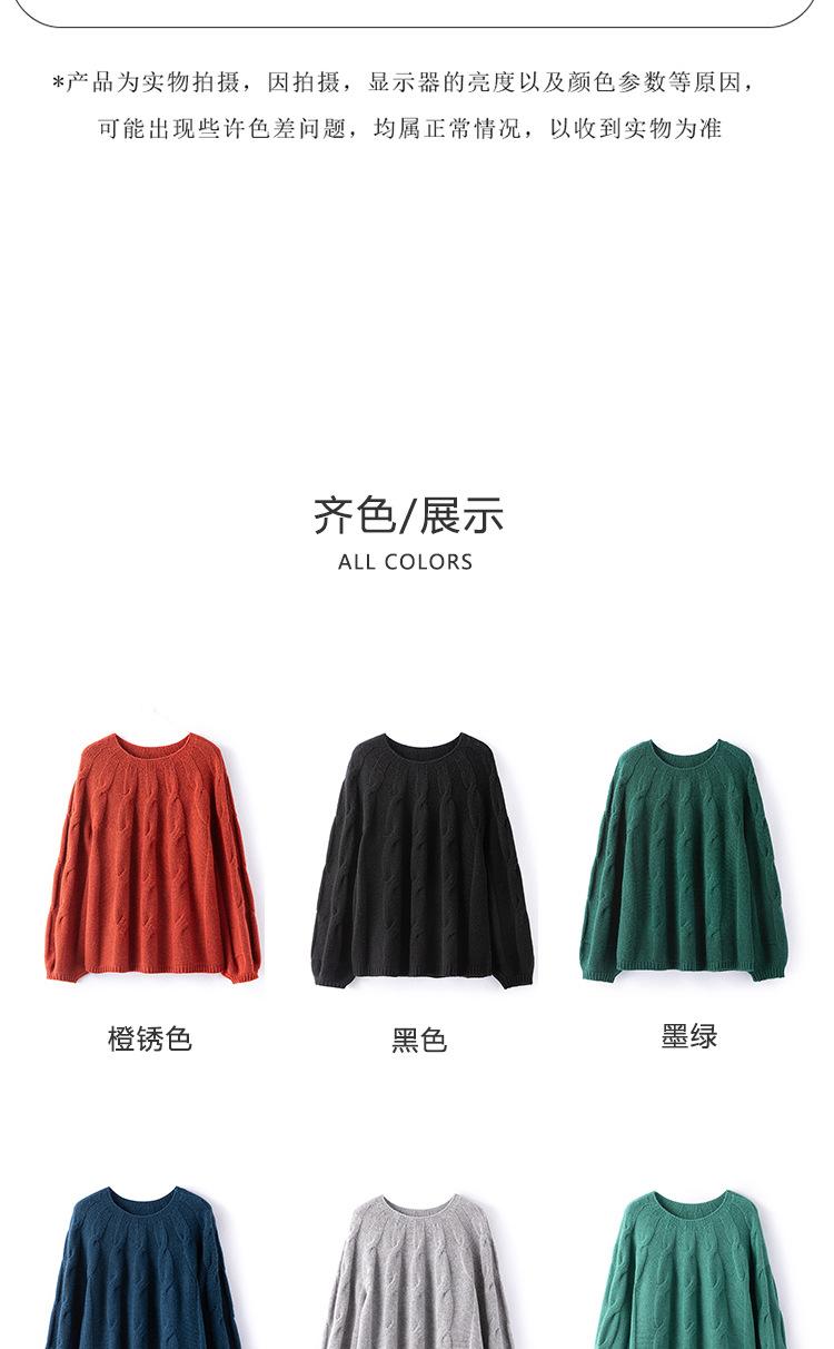 Suéter de Lana Pura de Una Pieza Sin Costuras Cuello Redondo Suéter de Punto Engrosado para Mujer Invierno Nuevo Suéter Estilo Holgado Perezoso Chaqueta de Mujer
