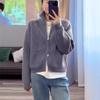 Cárdigan de punto con botones de cuerno, top de otoño e invierno 2024, nueva versión coreana suave y suelta, abrigo de lana con cuello en V para mujer