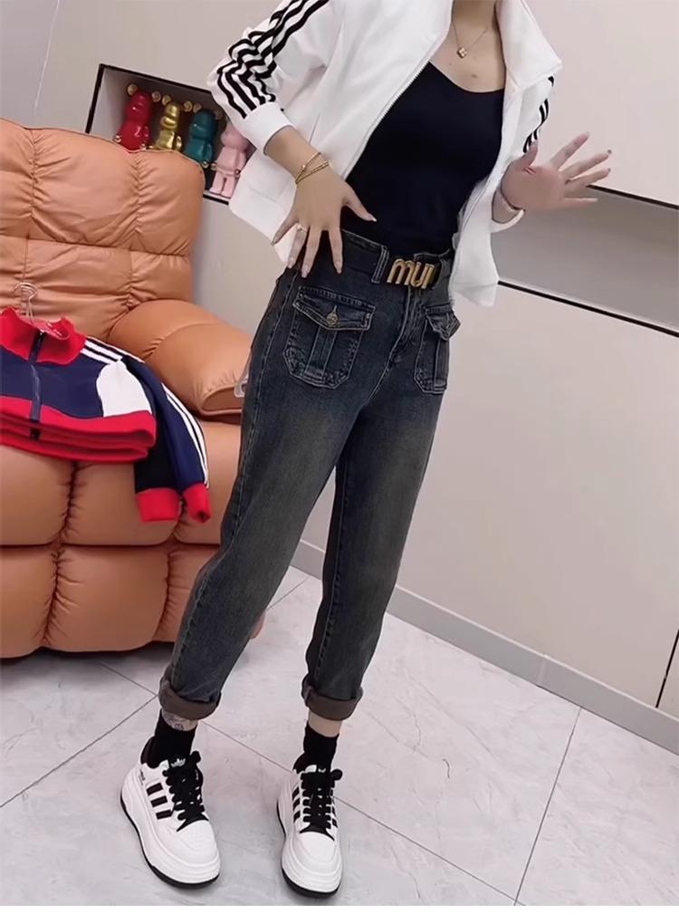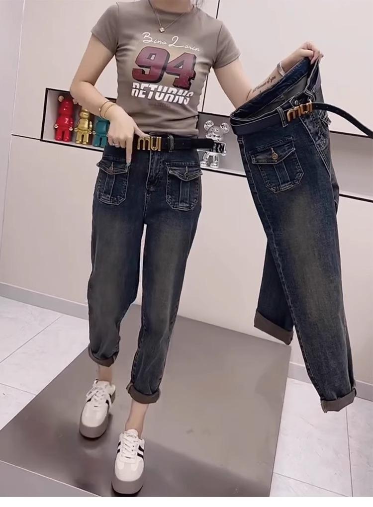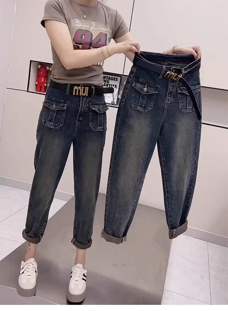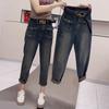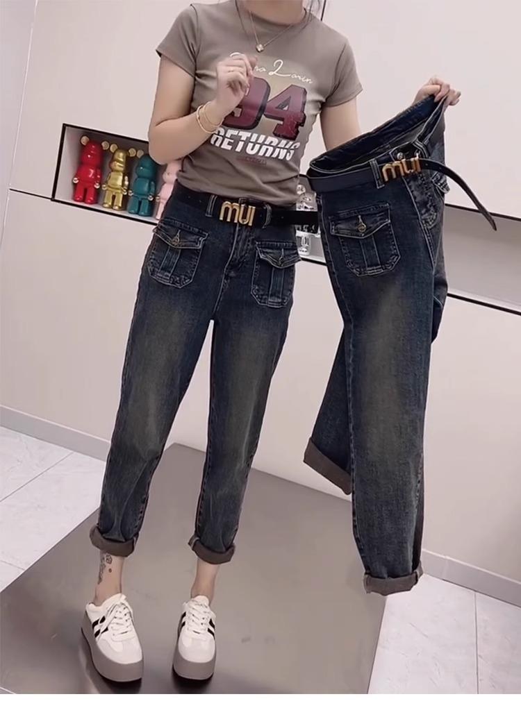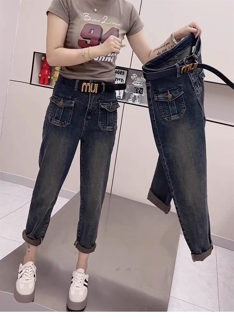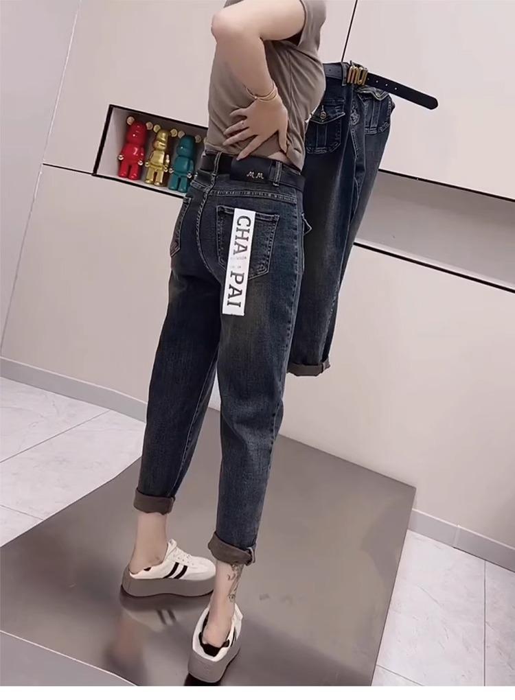 Pantalones vaqueros de talla grande para mujer, primavera y otoño, finos, nuevos, 2024, pantalones harén pequeños, pantalones de papá ajustados para chica gordita