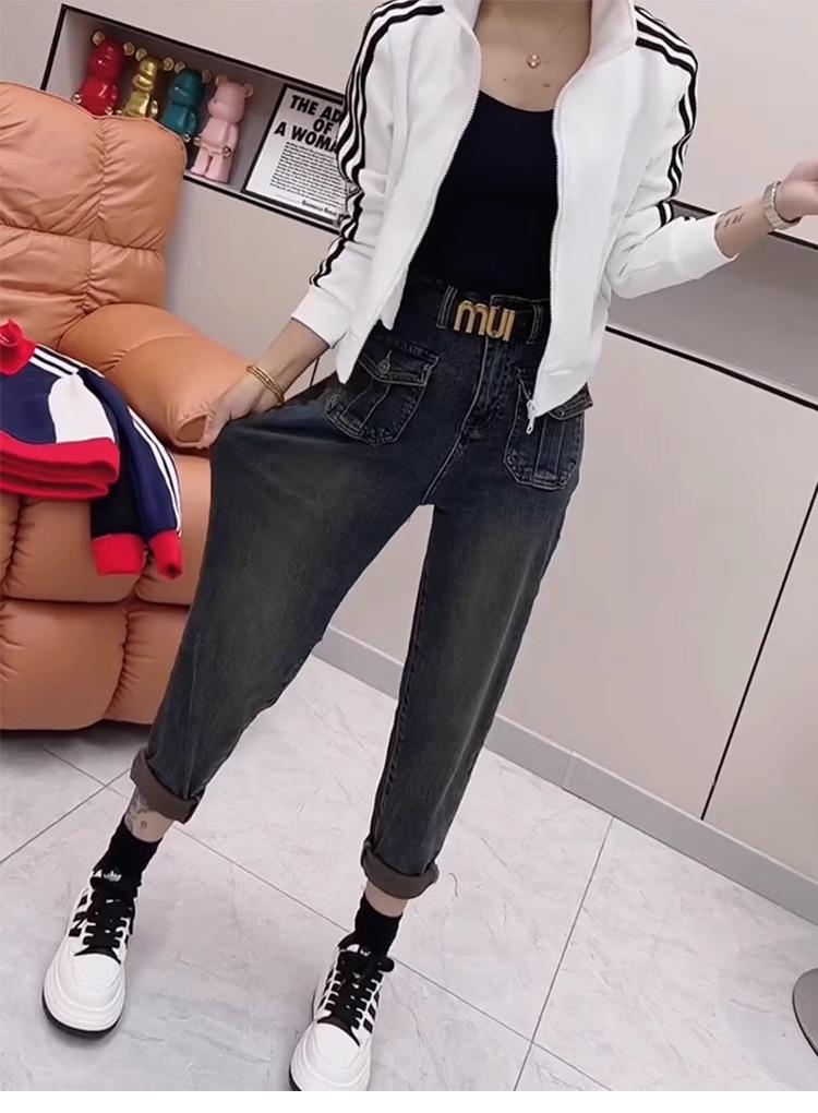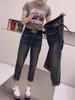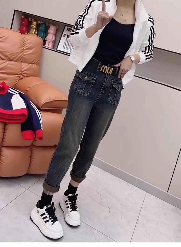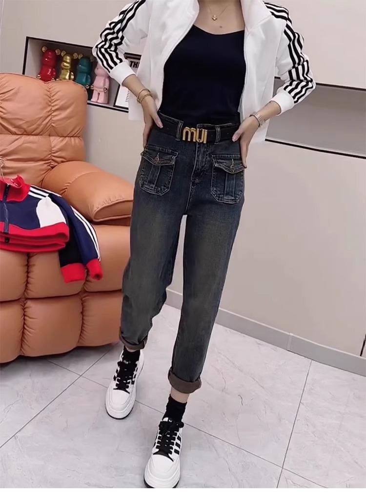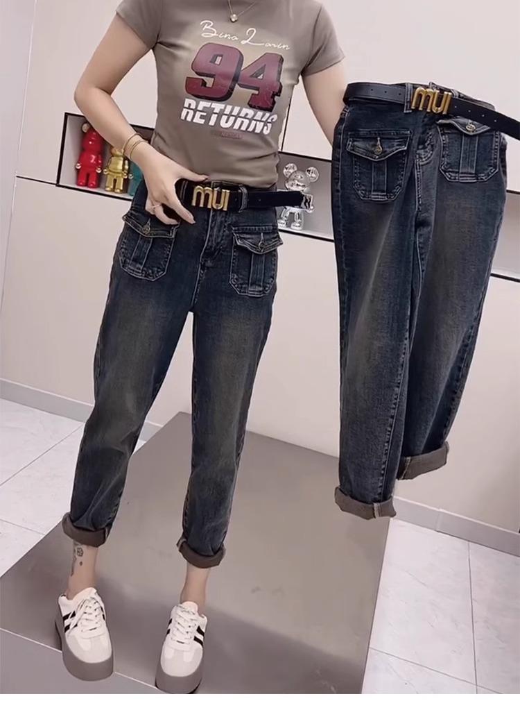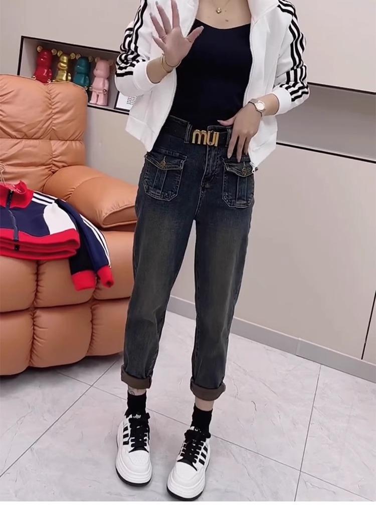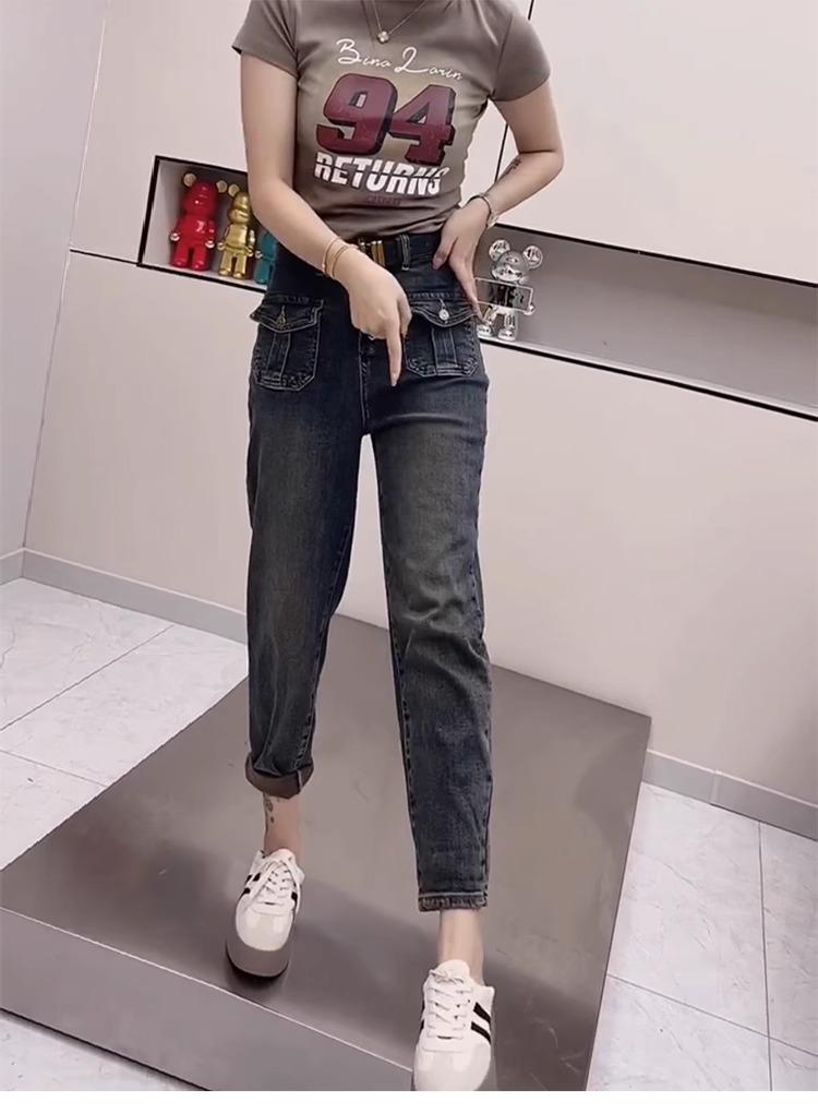 Pantalones vaqueros de talla grande para mujer, primavera y otoño, finos, nuevos, 2024, pantalones harén pequeños, pantalones de papá ajustados para chica gordita