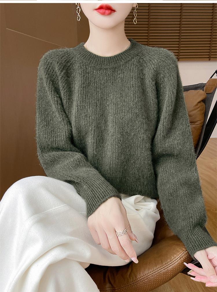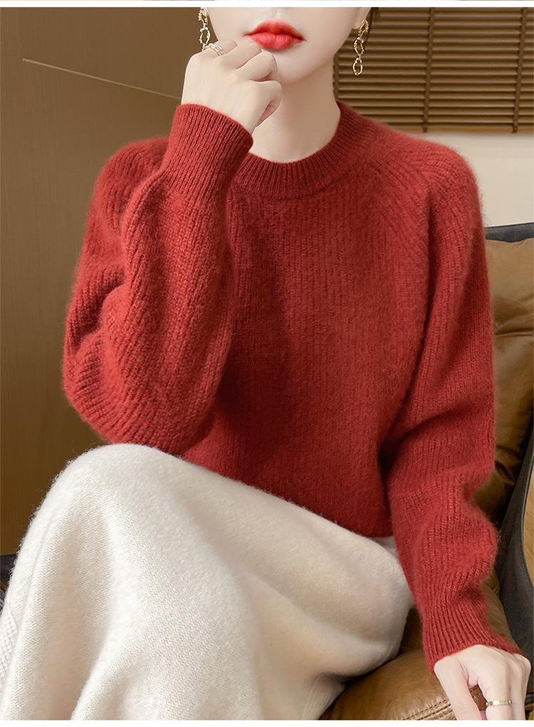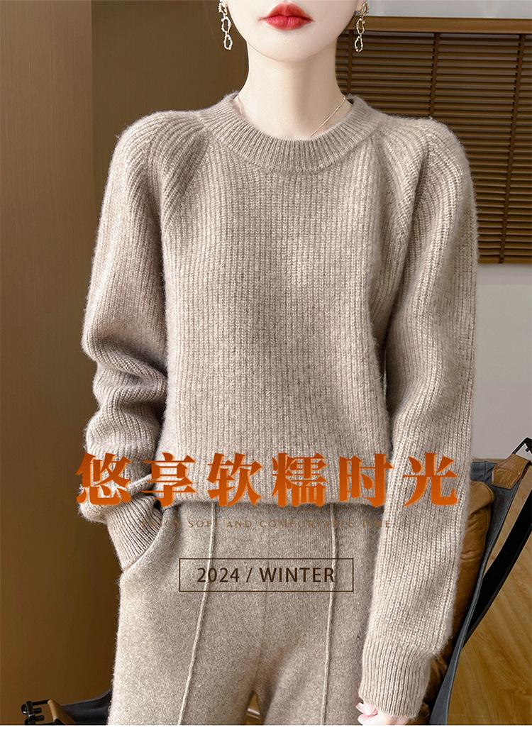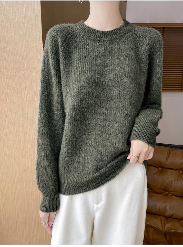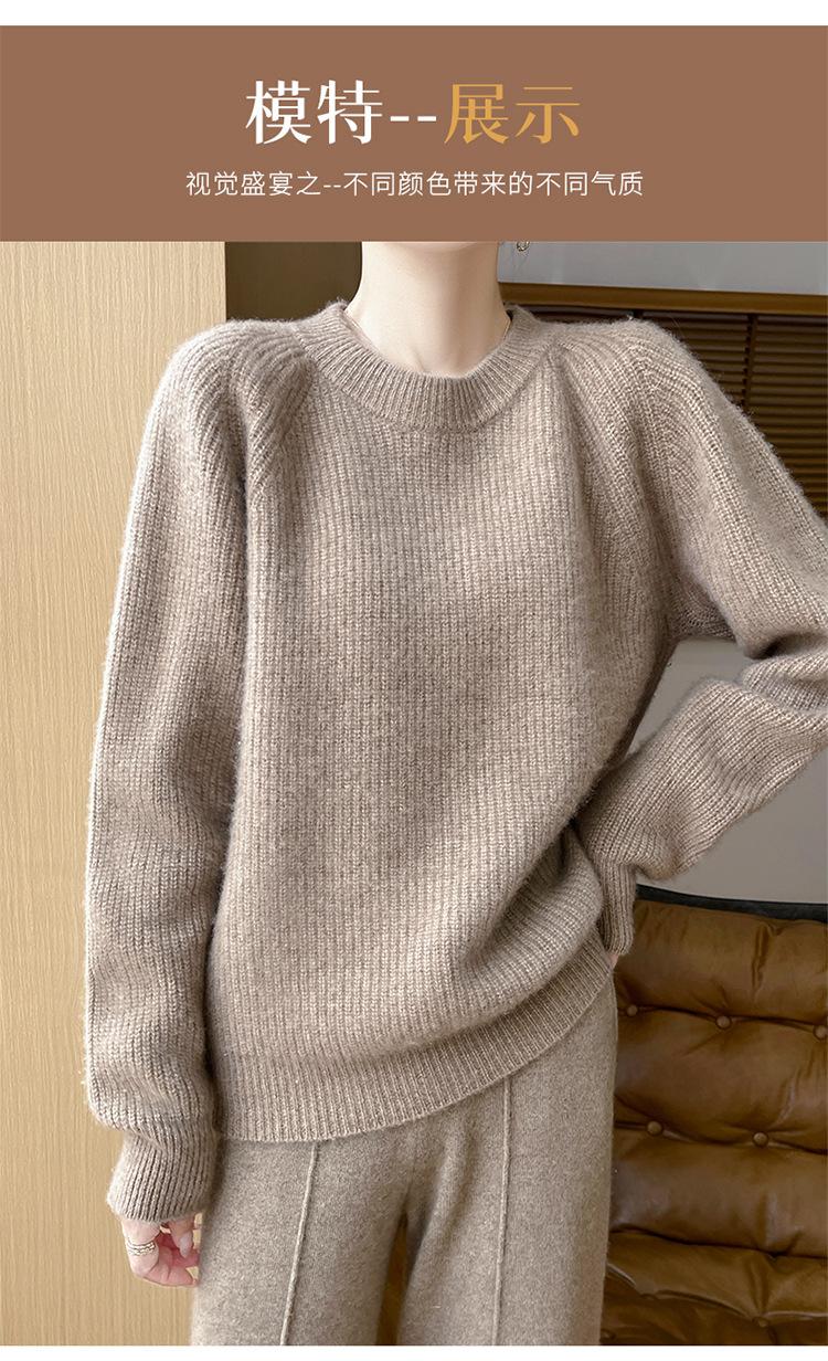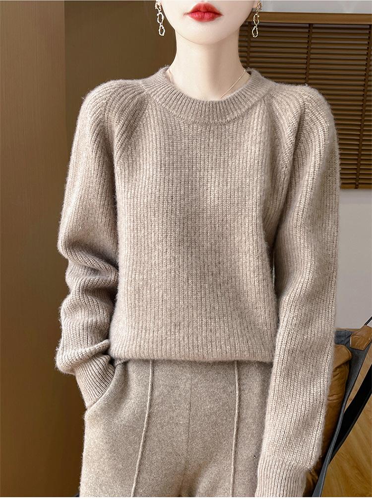 Suéter de punto para mujer, 100% lana pura, cuello redondo, manga raglán, grueso y cálido, otoño e invierno, novedad, 24 unidades