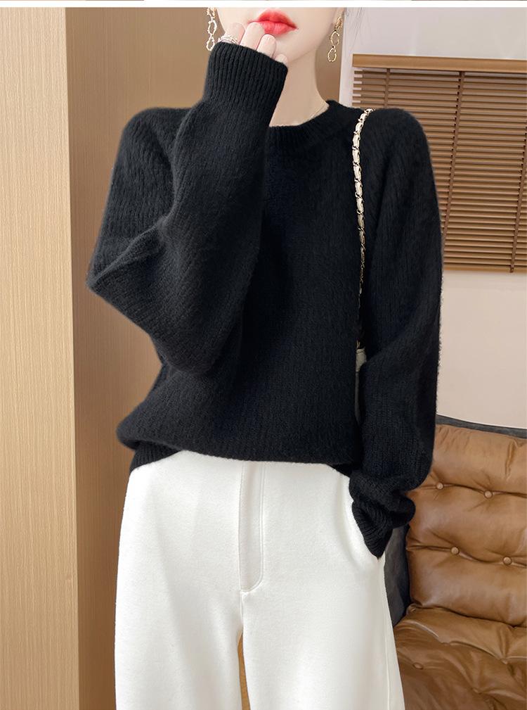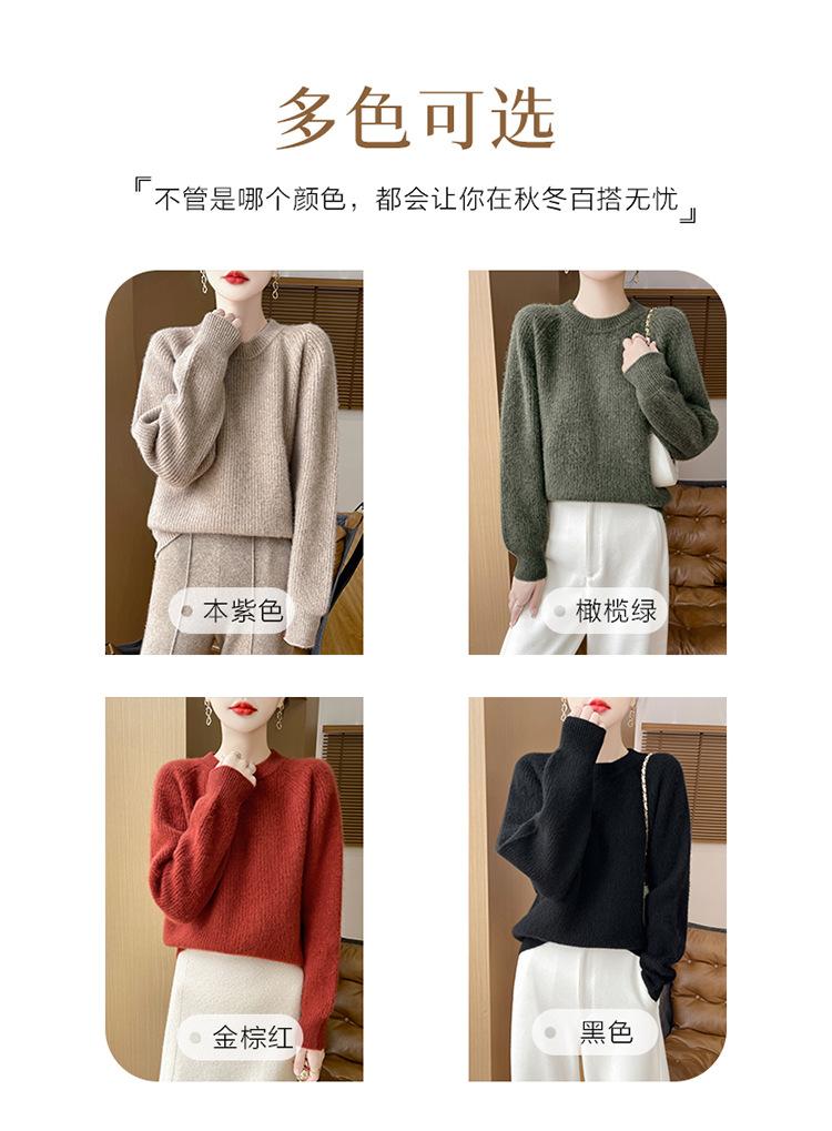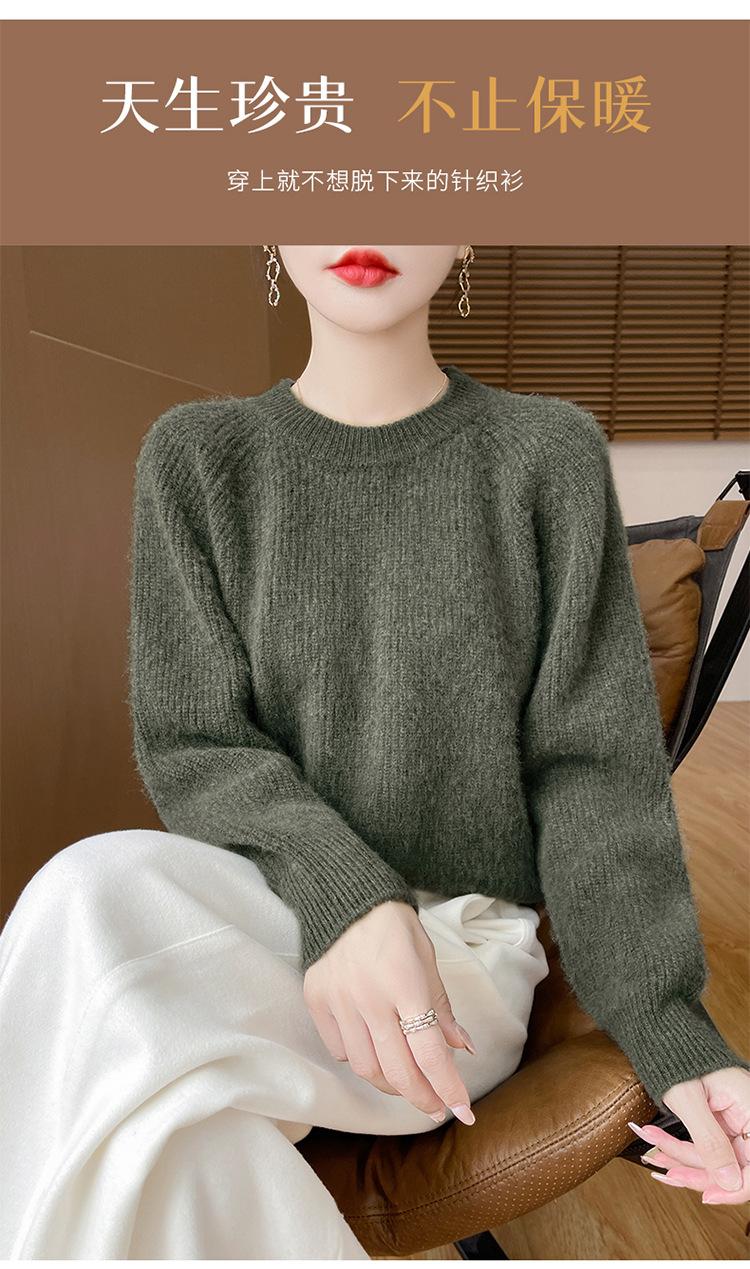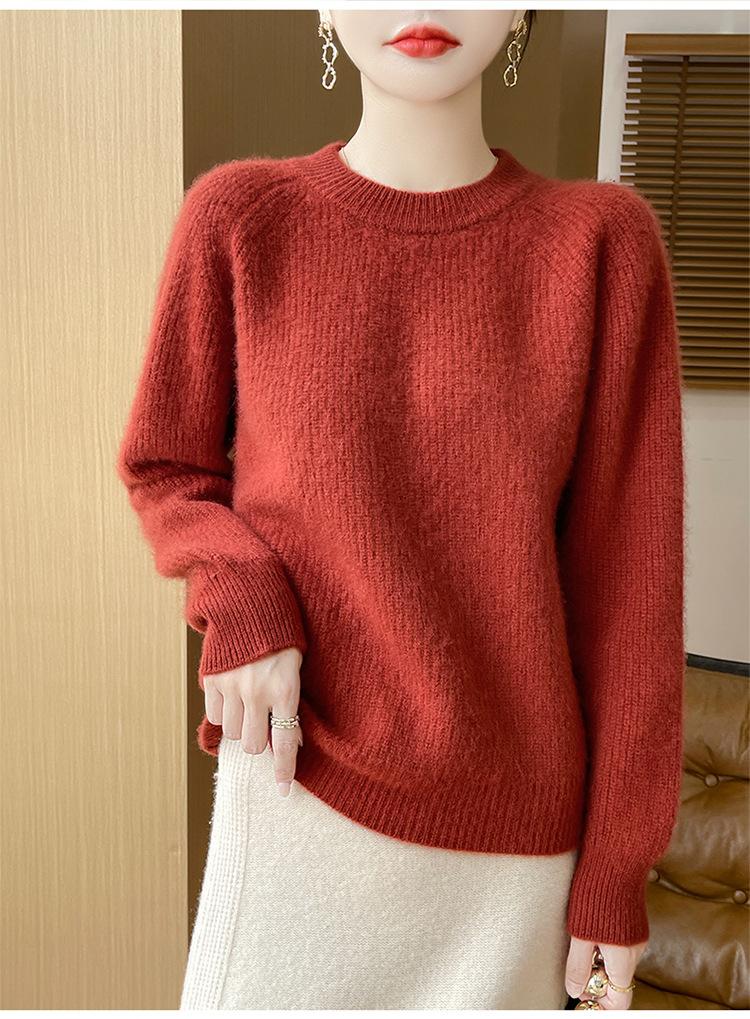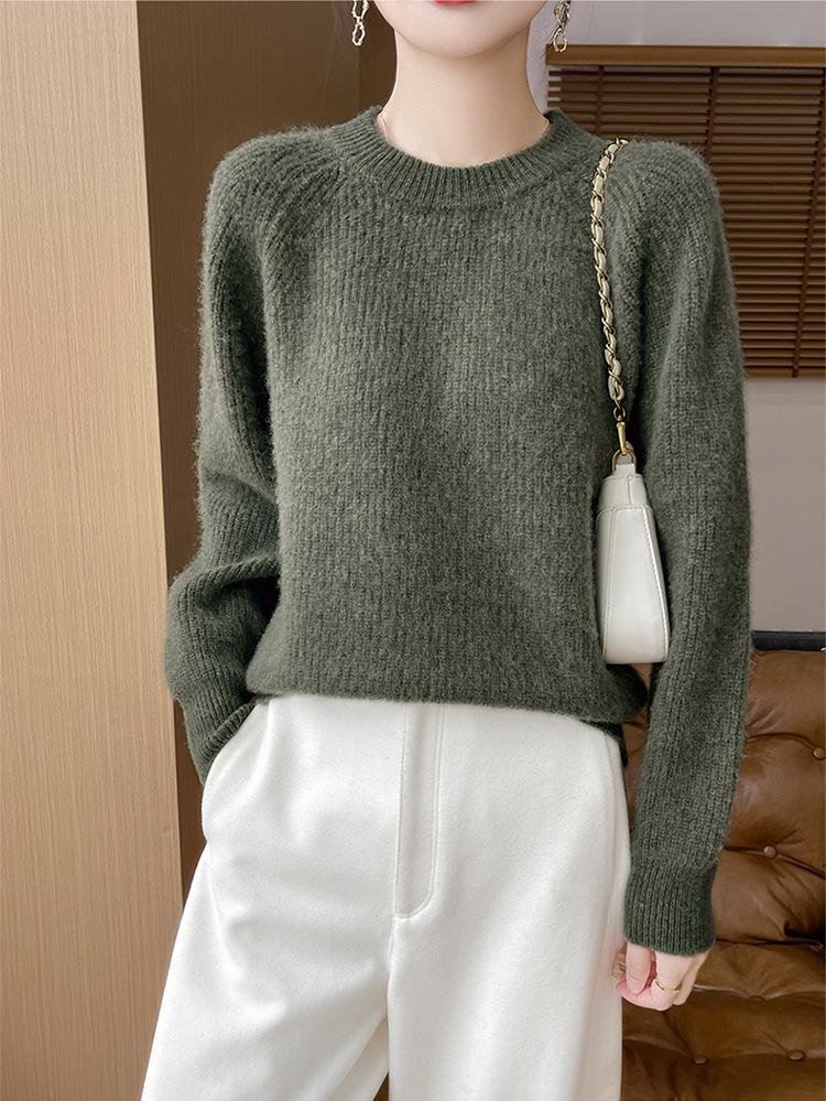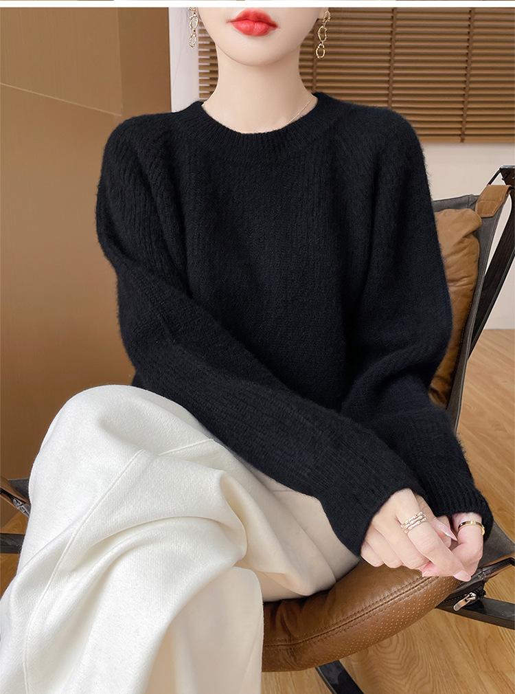 Suéter de punto para mujer, 100% lana pura, cuello redondo, manga raglán, grueso y cálido, otoño e invierno, novedad, 24 unidades
