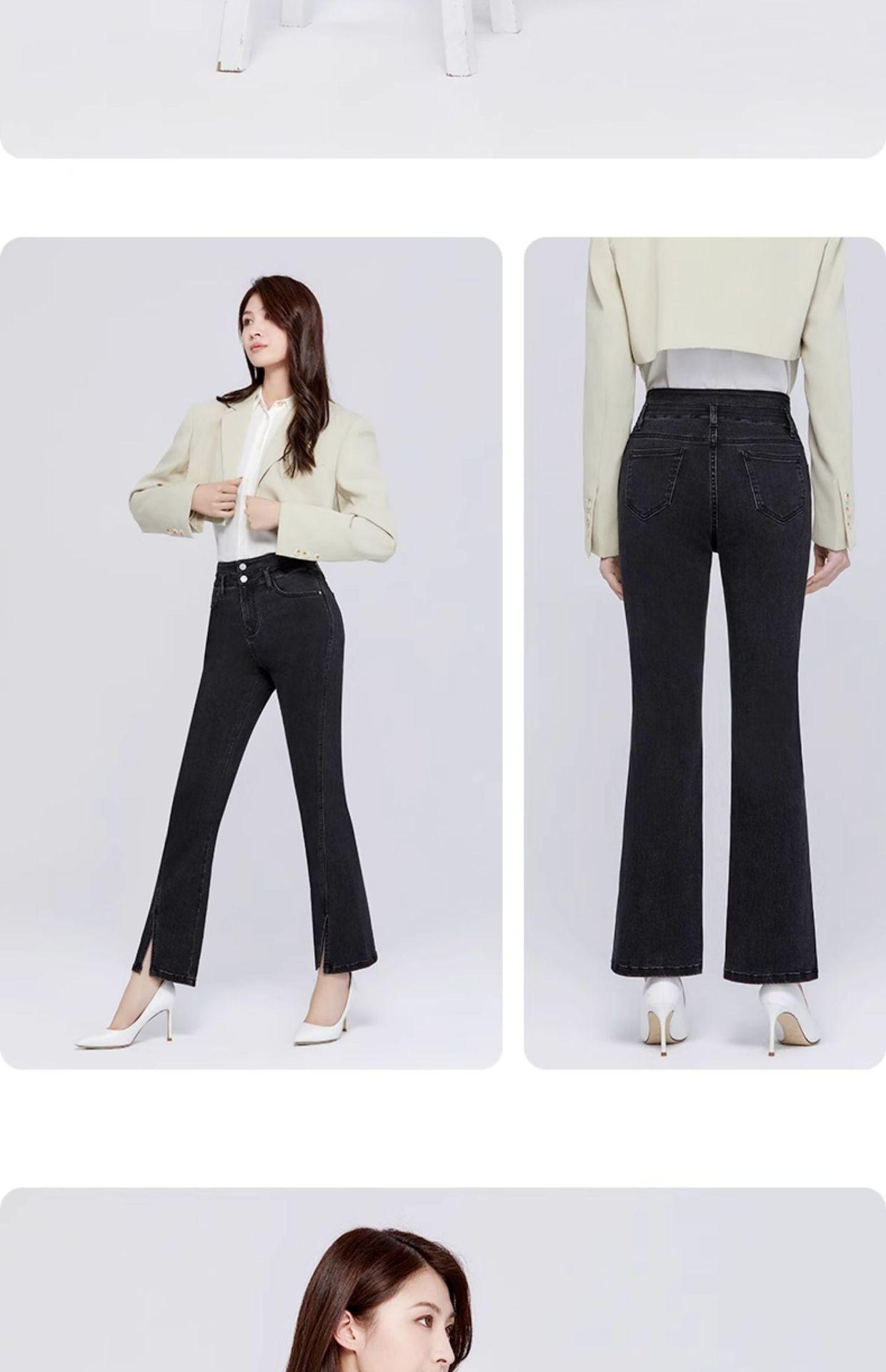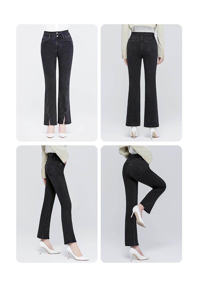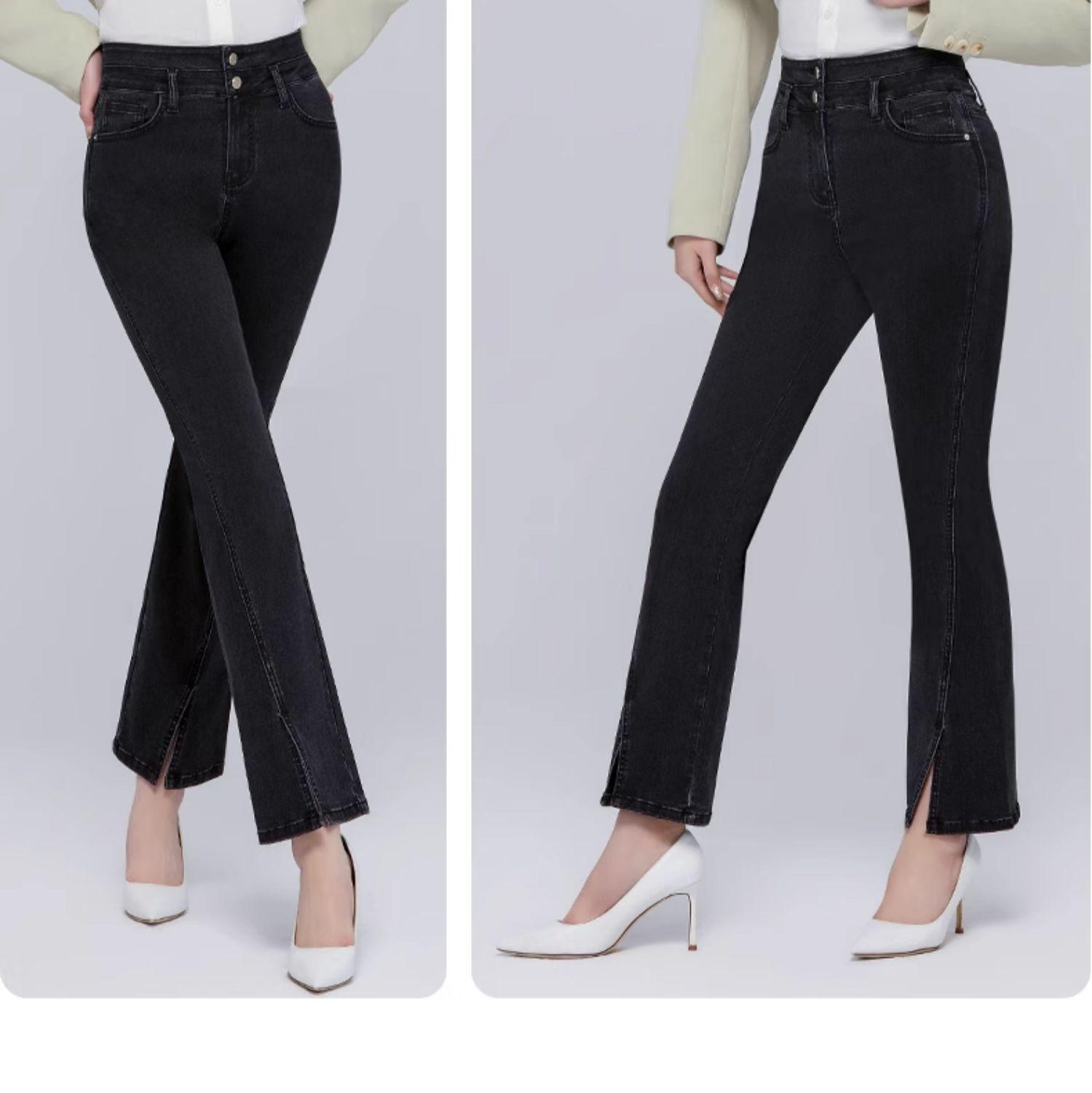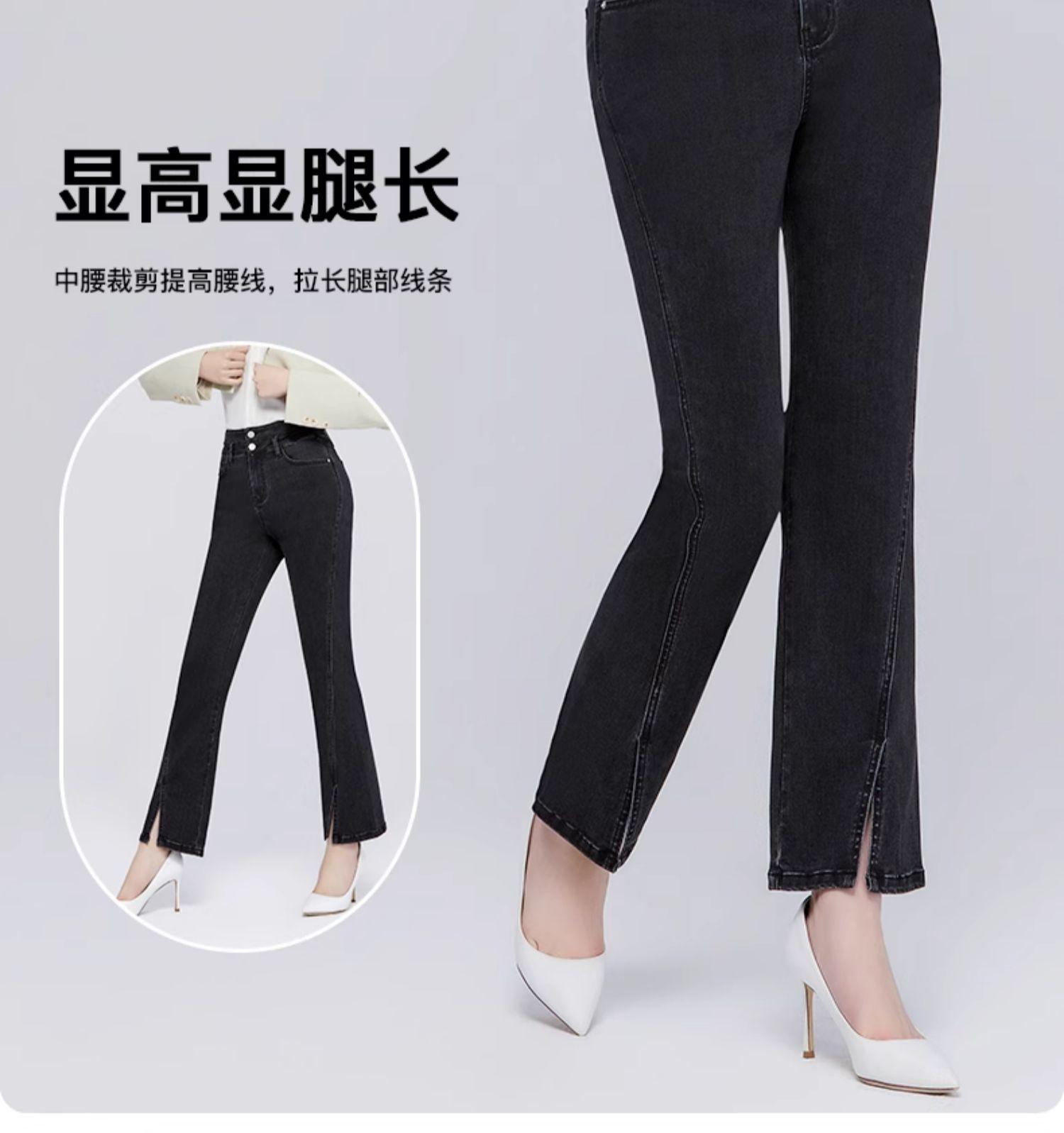 Pantalones vaqueros SP68 micro-lar para mujer, primavera 2024, nuevos, de cintura media-alta, con abertura frontal, acampanados, negros, sueltos y adelgazantes