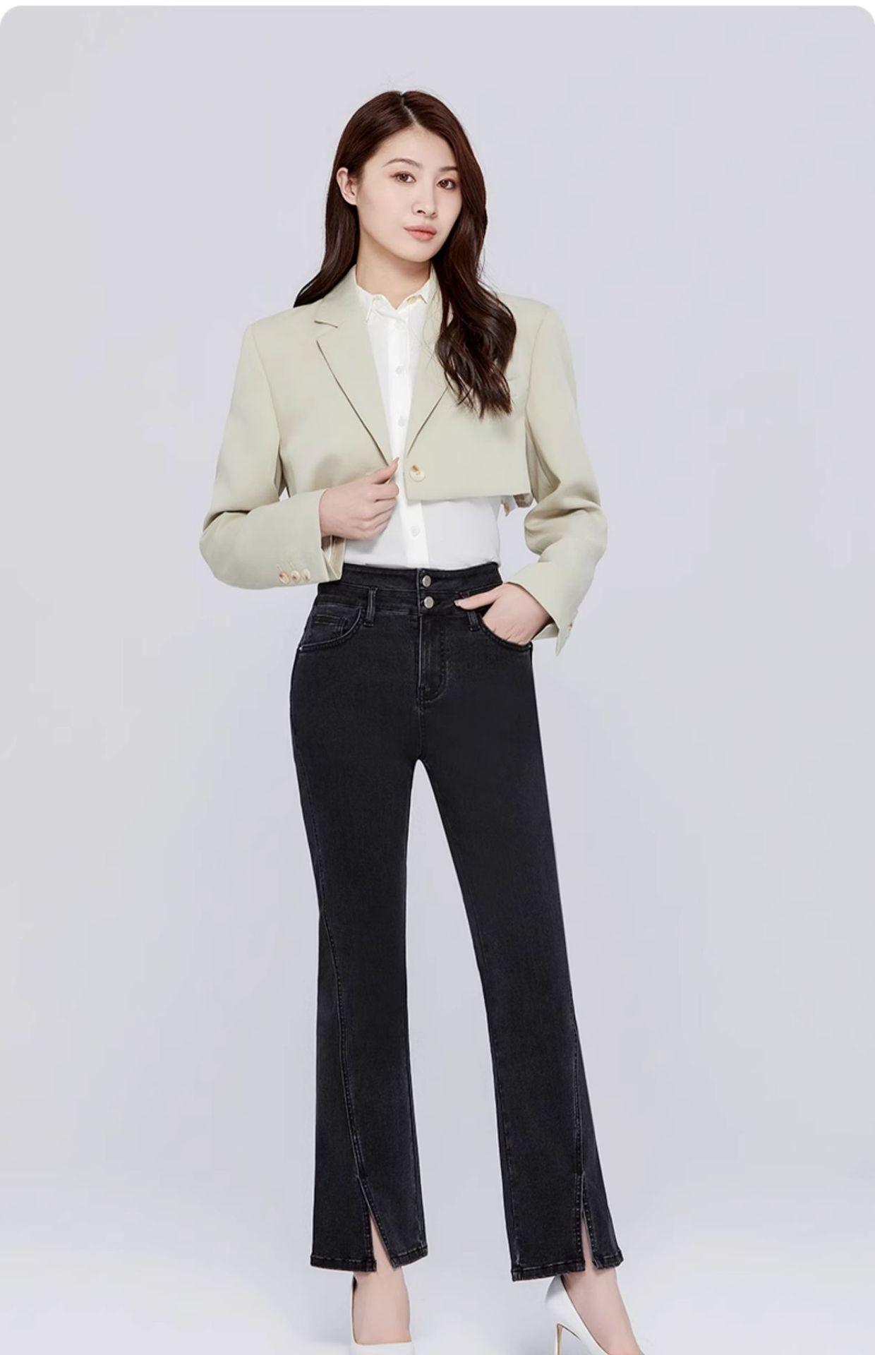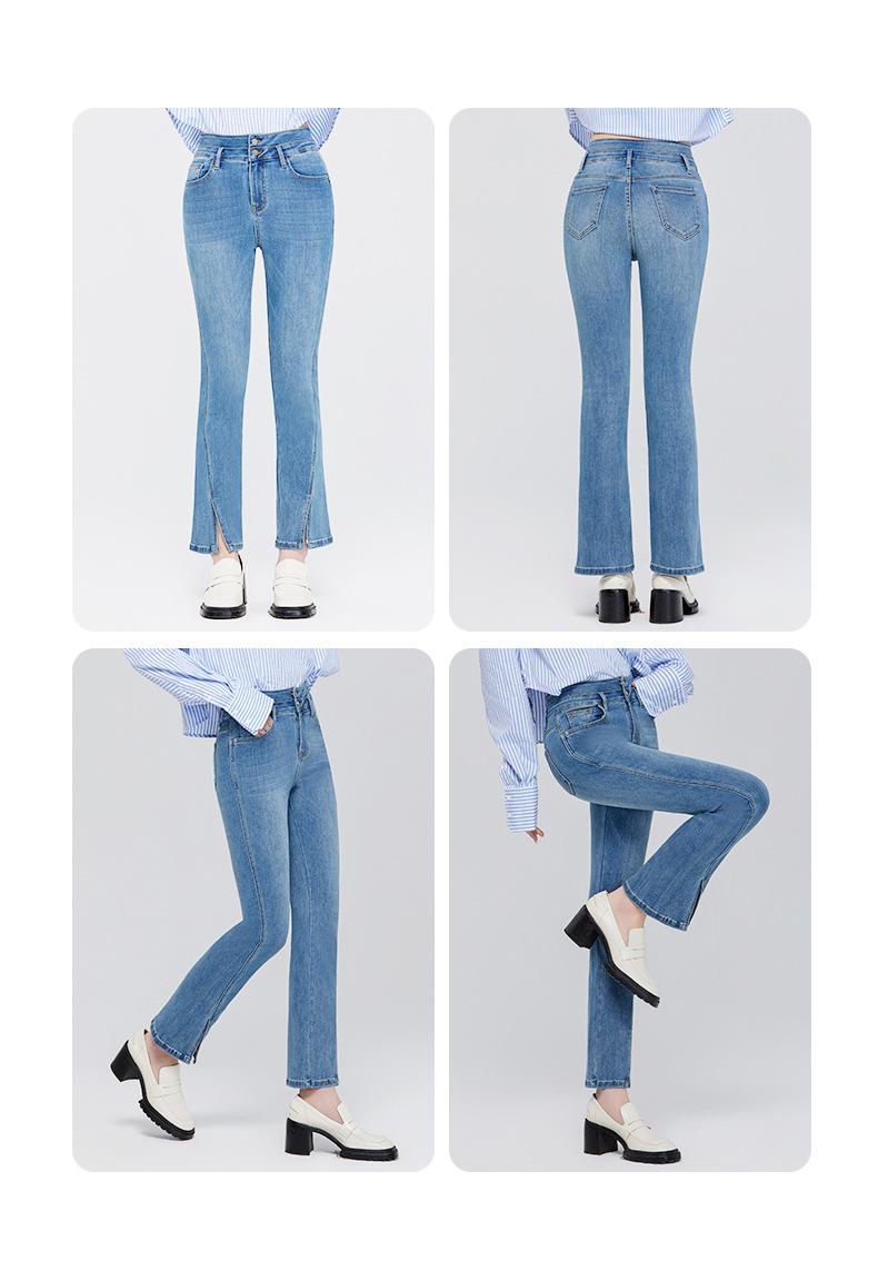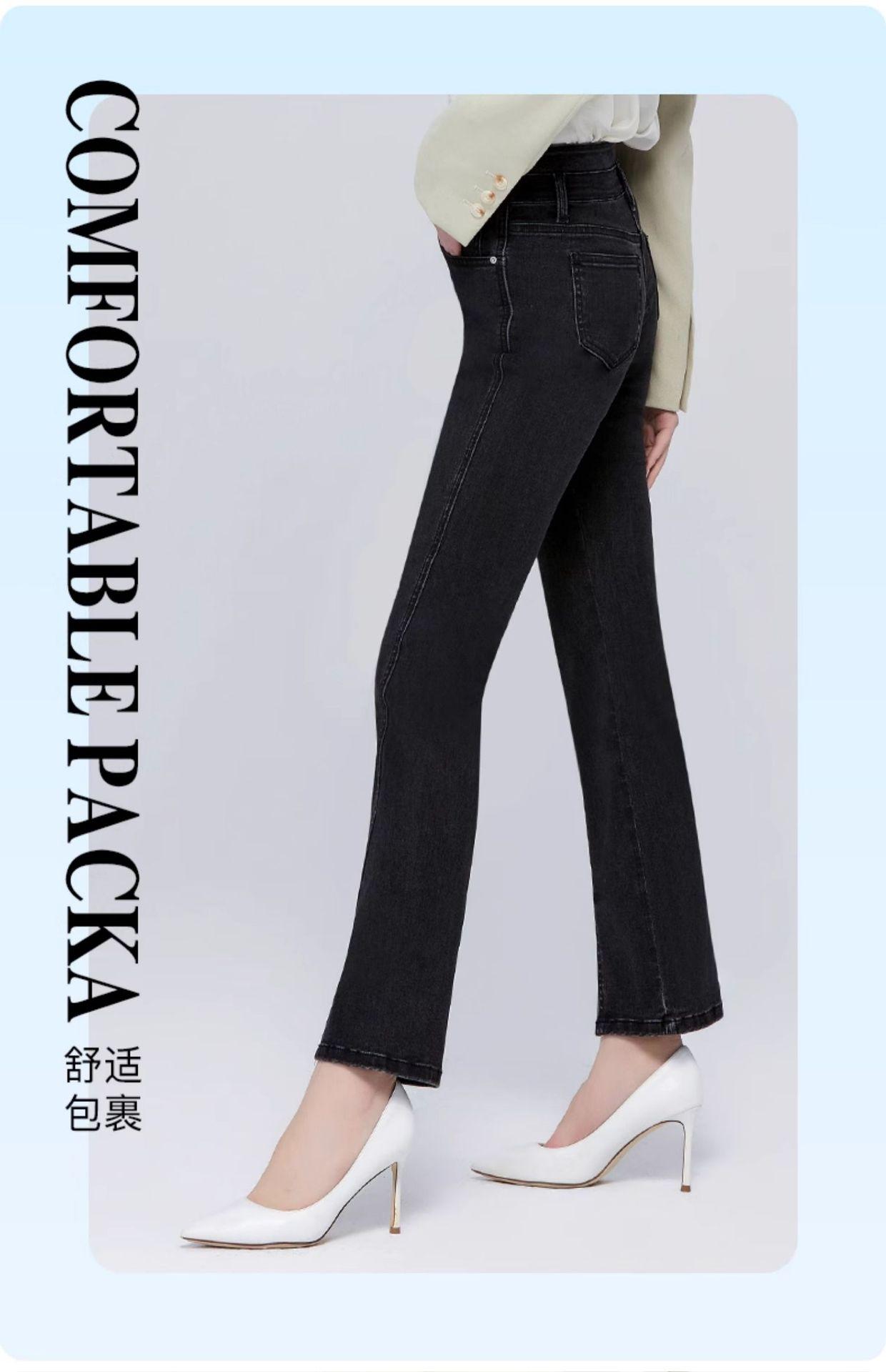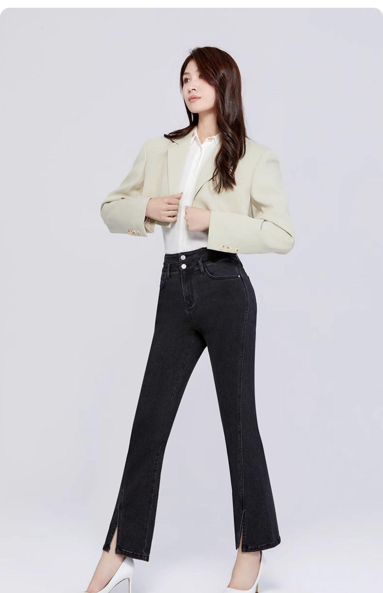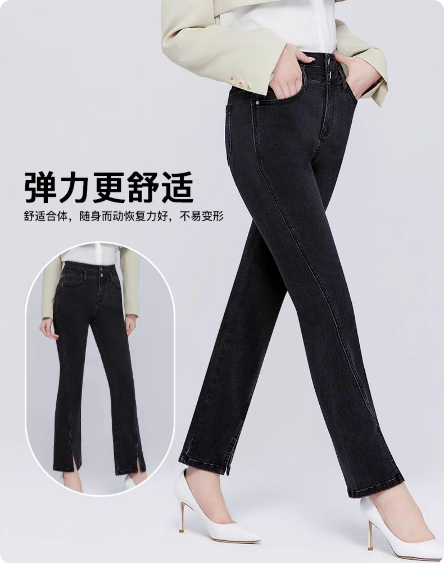 Pantalones vaqueros SP68 micro-lar para mujer, primavera 2024, nuevos, de cintura media-alta, con abertura frontal, acampanados, negros, sueltos y adelgazantes