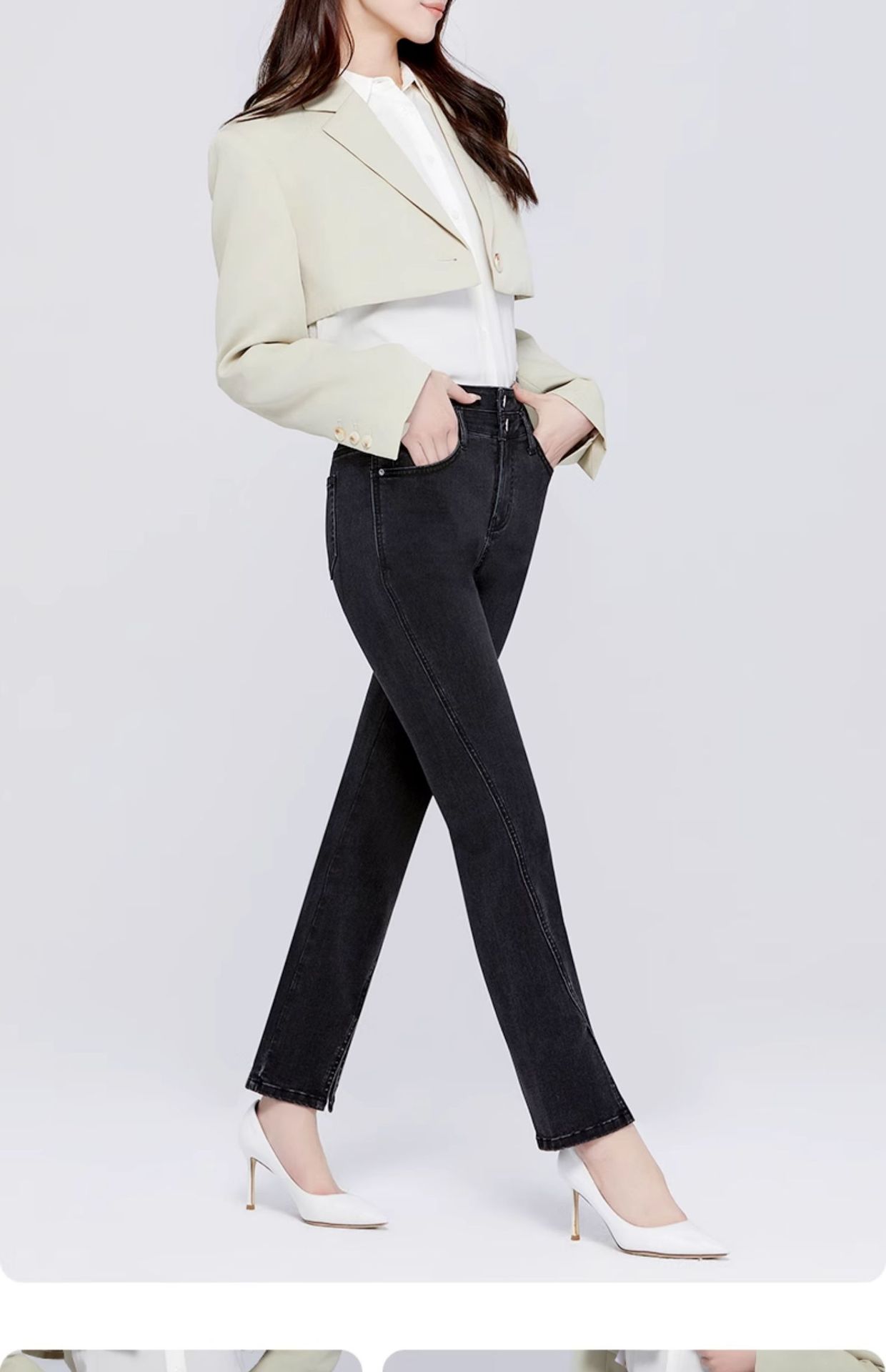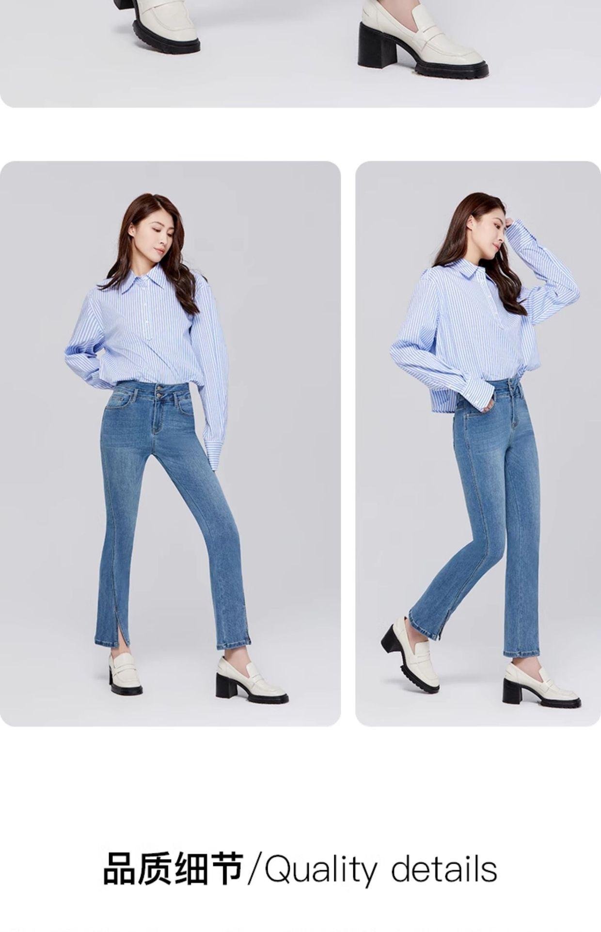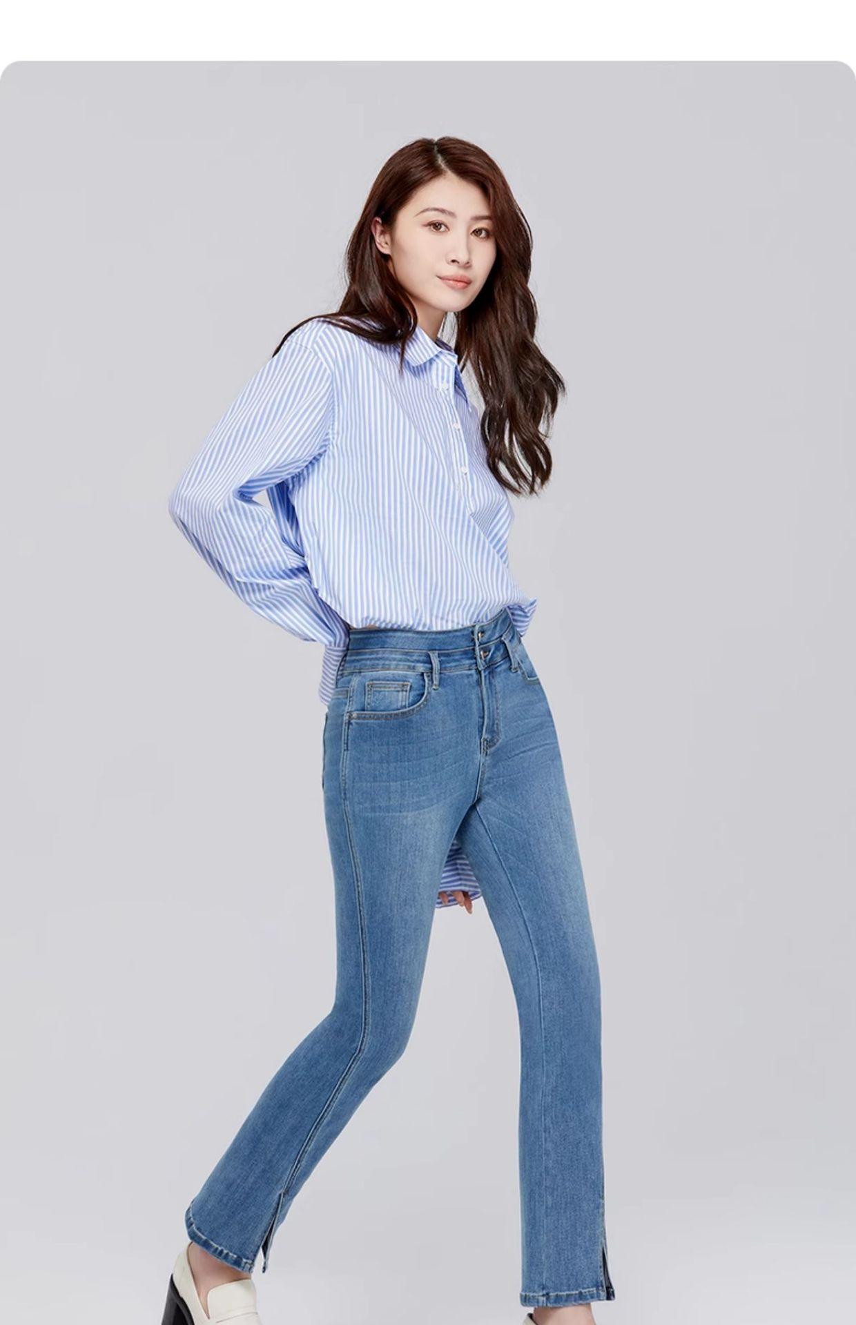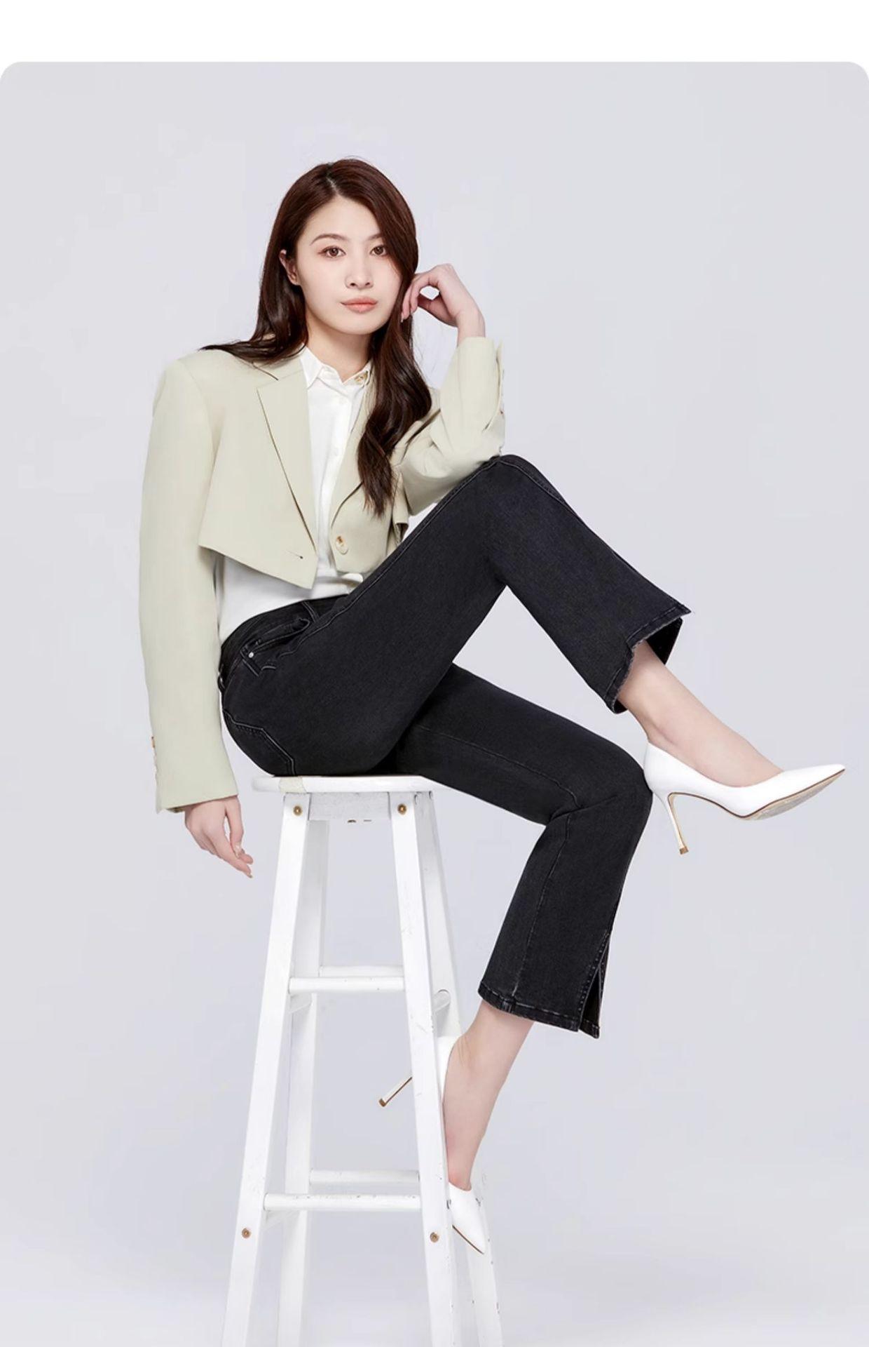 Pantalones vaqueros SP68 micro-lar para mujer, primavera 2024, nuevos, de cintura media-alta, con abertura frontal, acampanados, negros, sueltos y adelgazantes