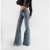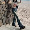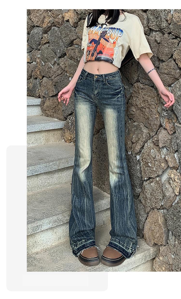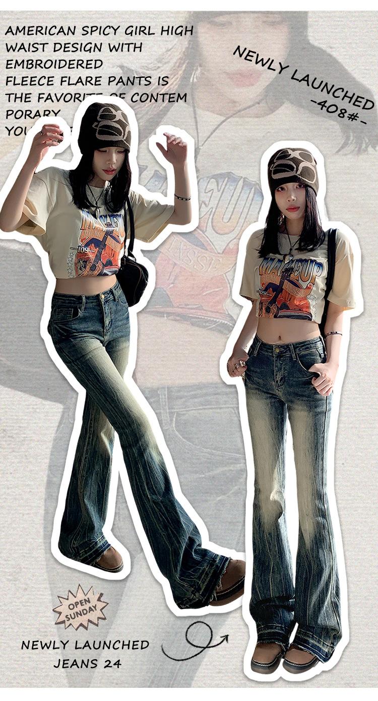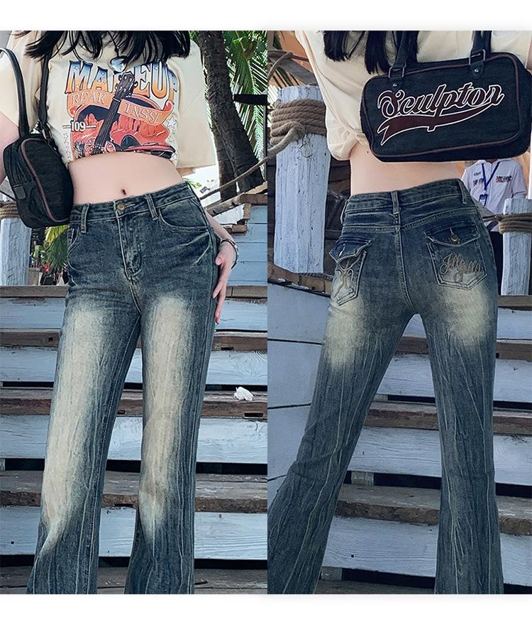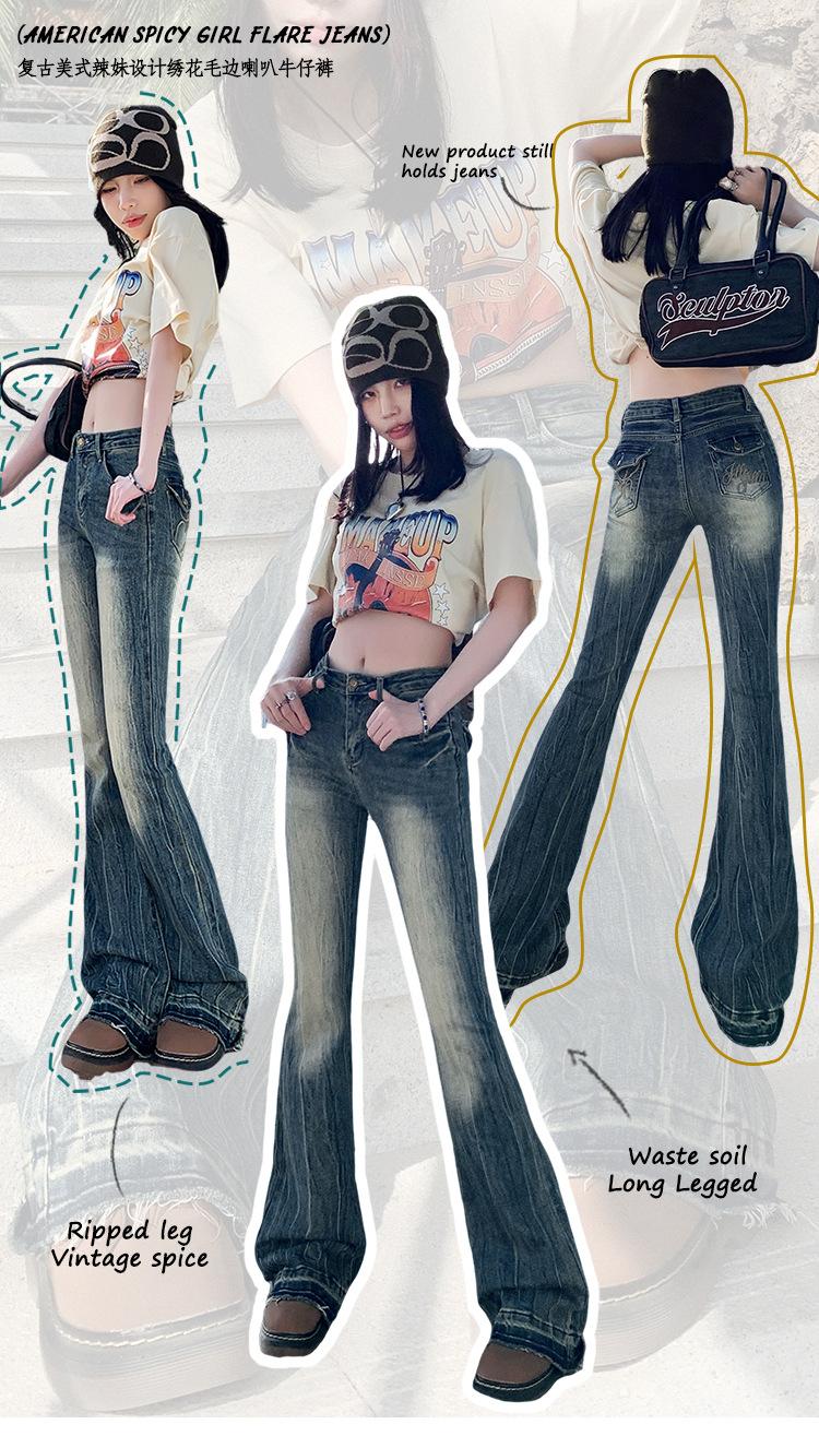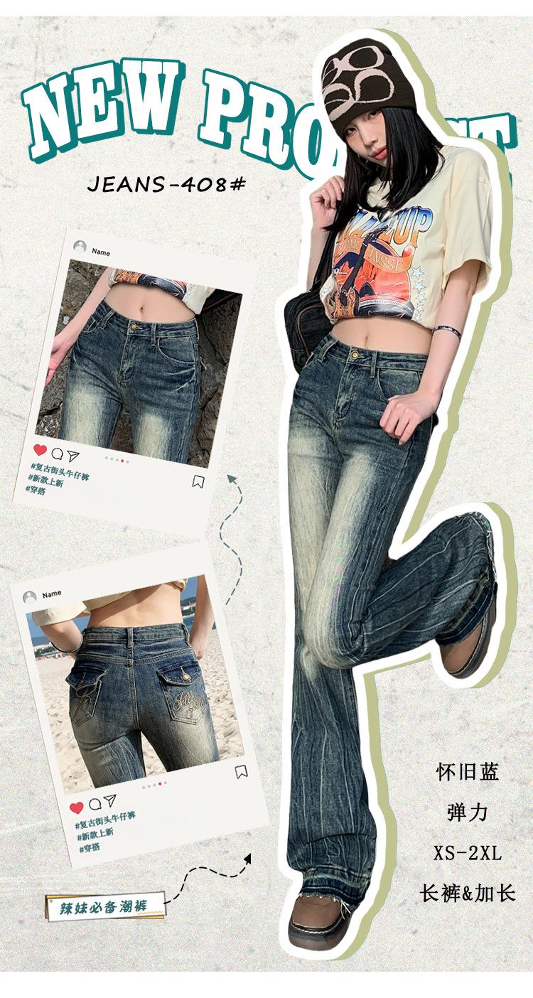 Pantalones vaqueros de tiro bajo estilo Spice Girl, micro-holgados, de primavera y otoño, nuevos pantalones retro elásticos adelgazantes con bordados y herraduras.