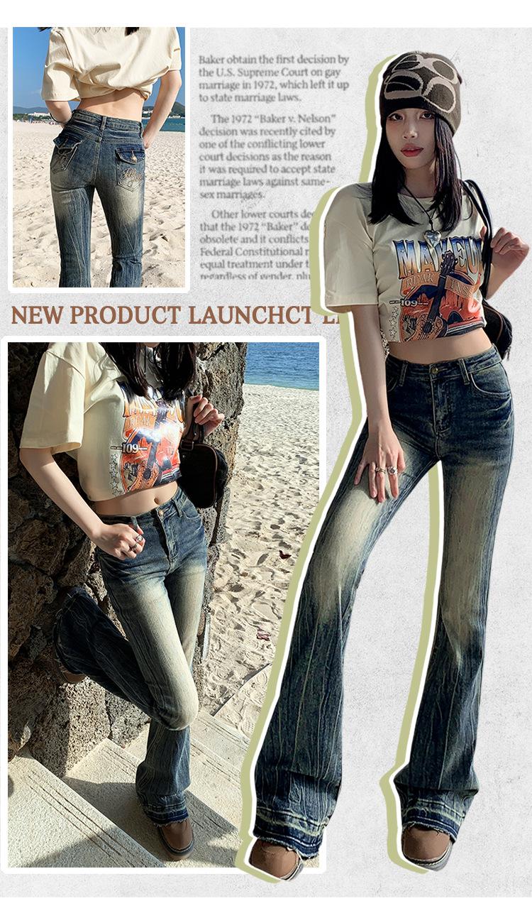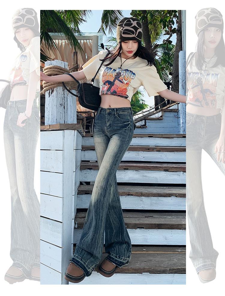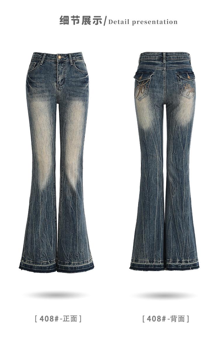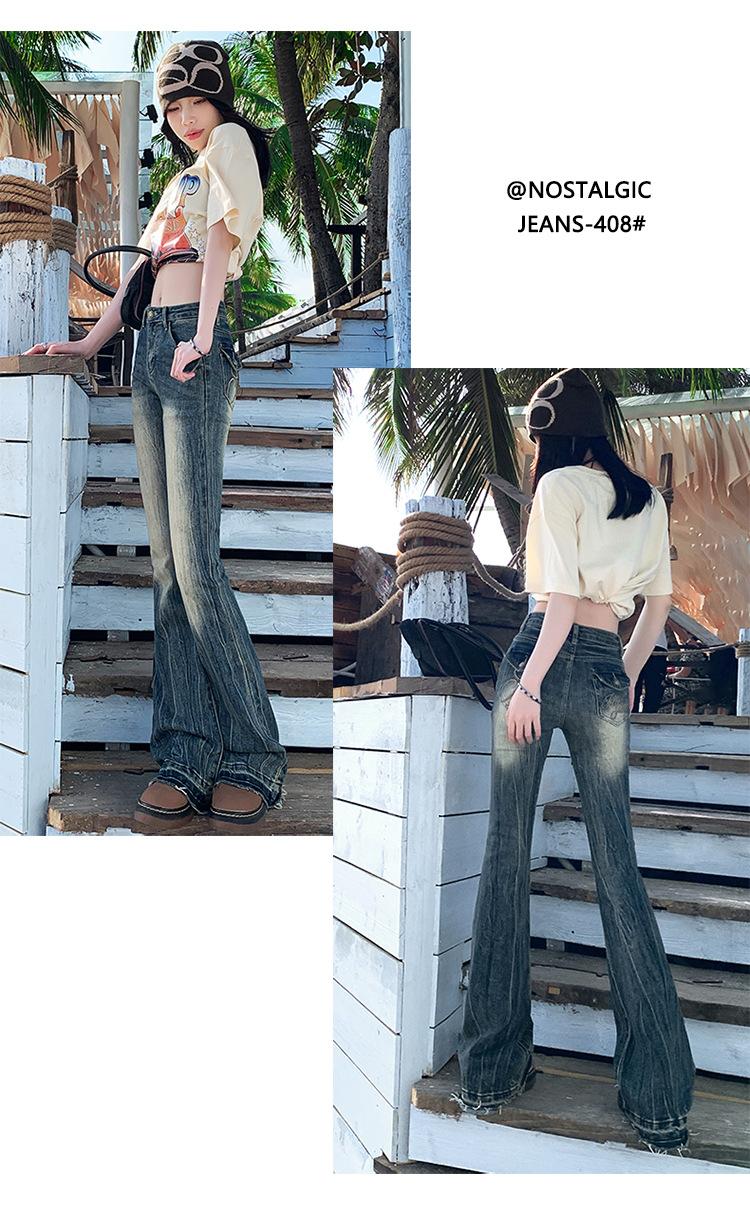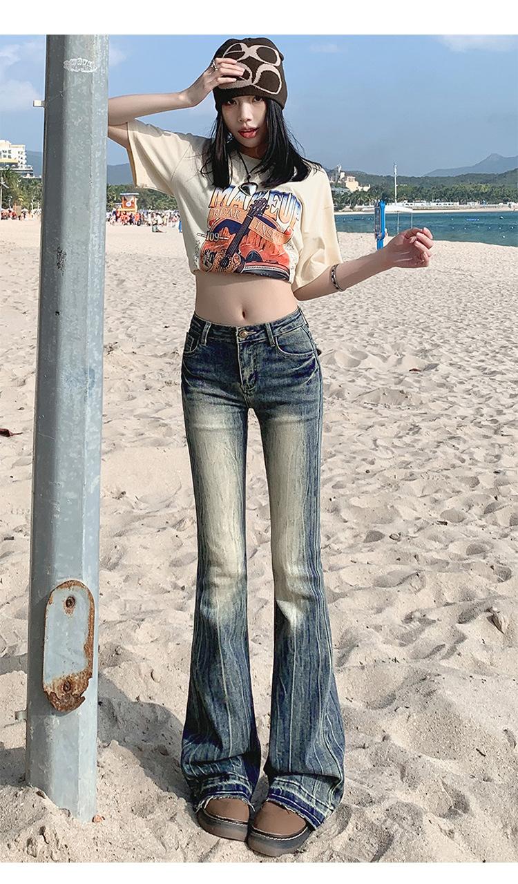 Pantalones vaqueros de tiro bajo estilo Spice Girl, micro-holgados, de primavera y otoño, nuevos pantalones retro elásticos adelgazantes con bordados y herraduras.