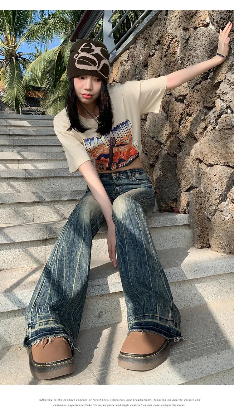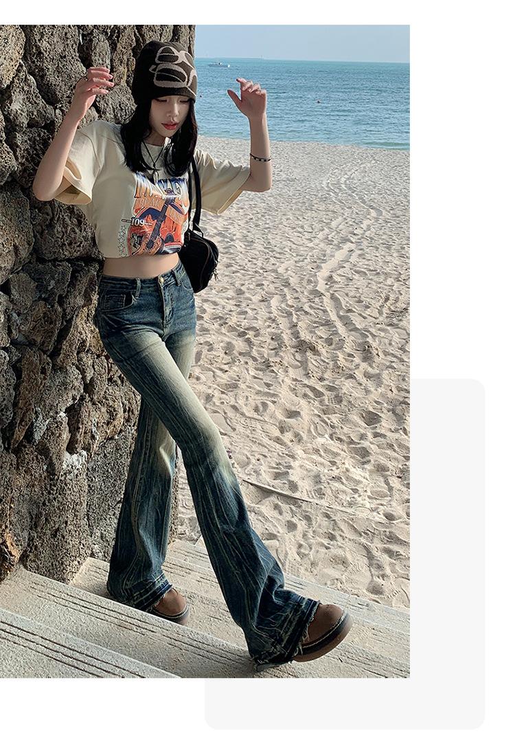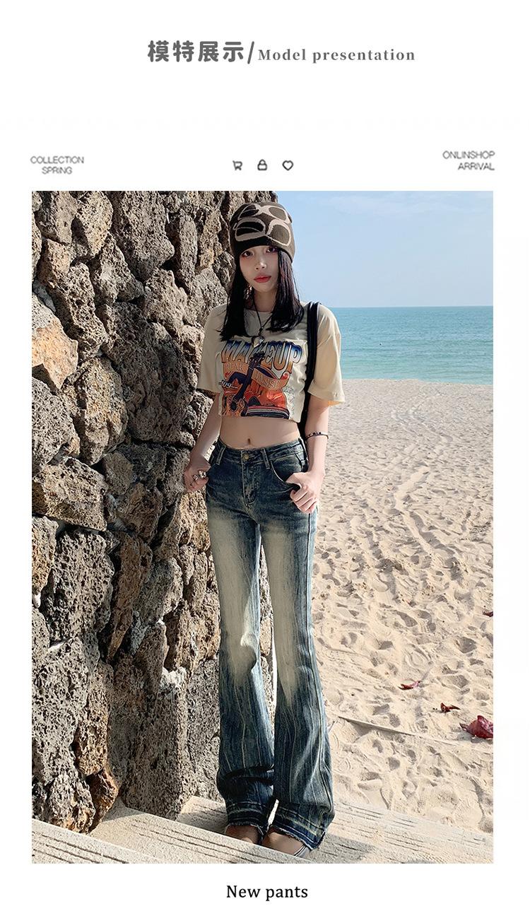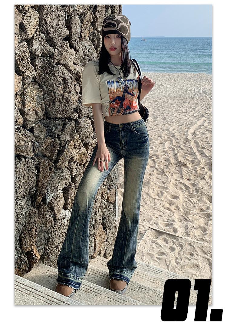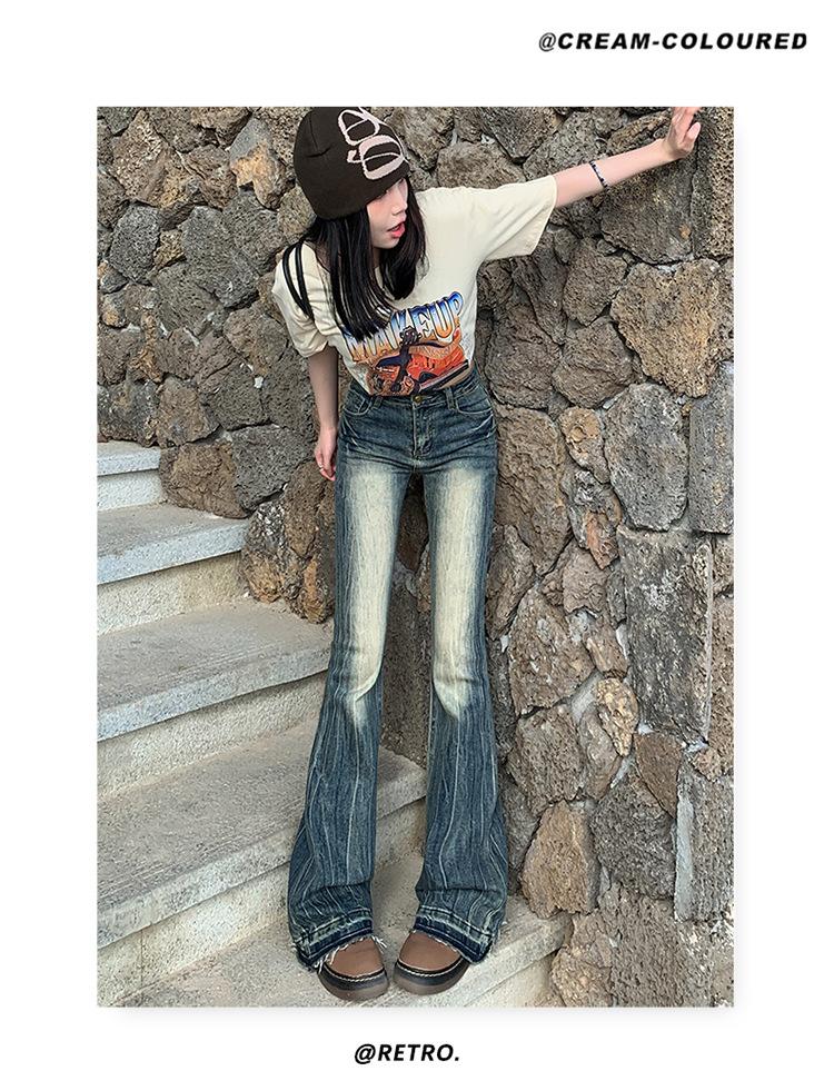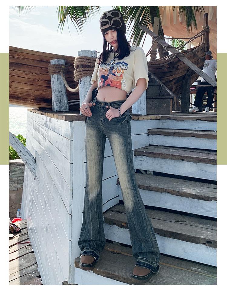 Pantalones vaqueros de tiro bajo estilo Spice Girl, micro-holgados, de primavera y otoño, nuevos pantalones retro elásticos adelgazantes con bordados y herraduras.