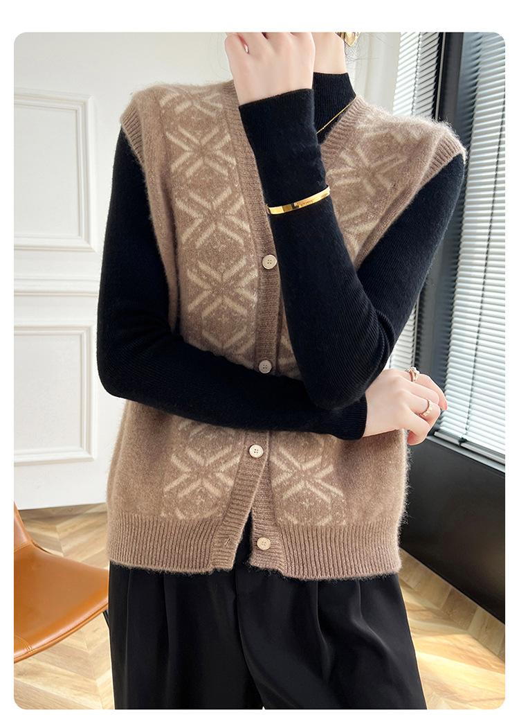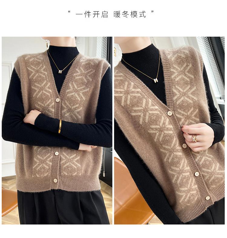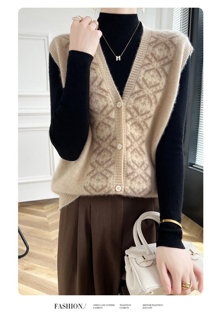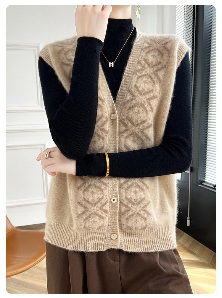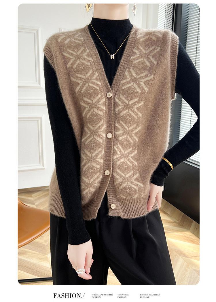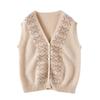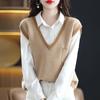 Chaleco de lana 100% pura para mujer, sin mangas, grueso, suelto, talla grande, suéter de punto, chaleco de lana apilado.