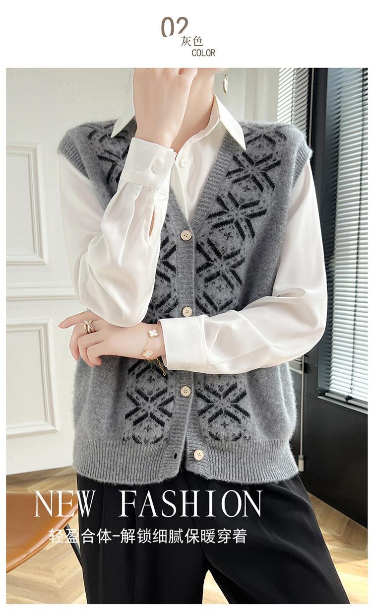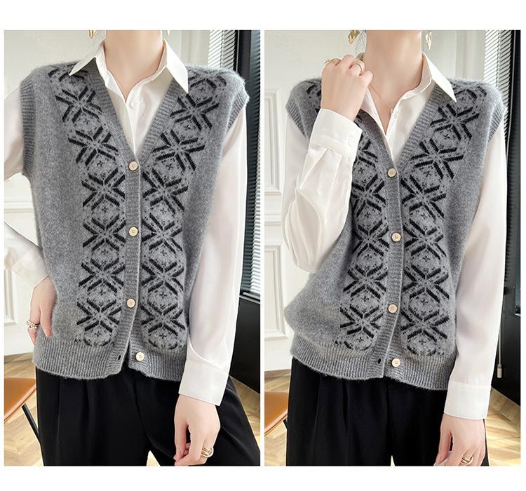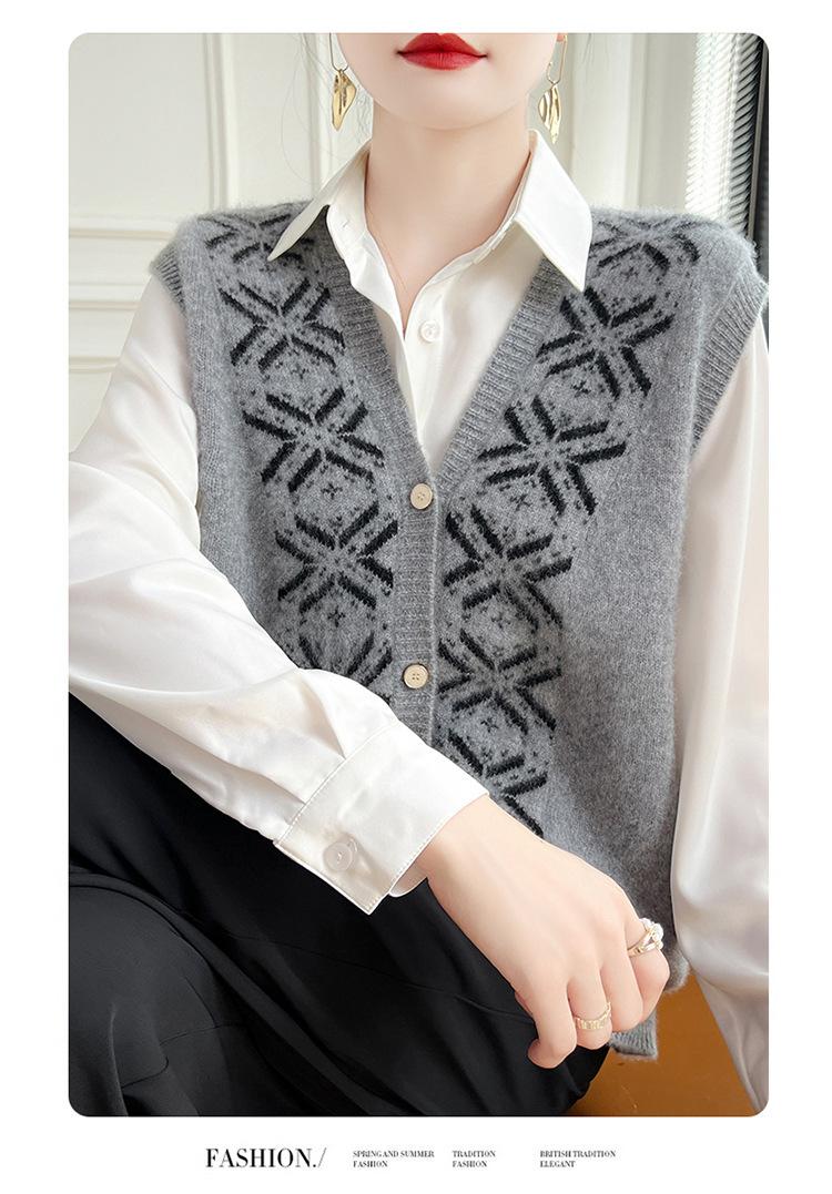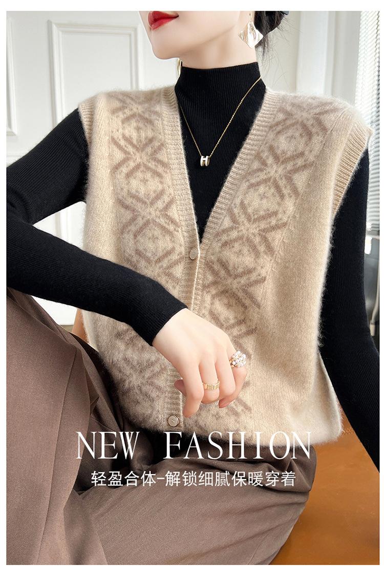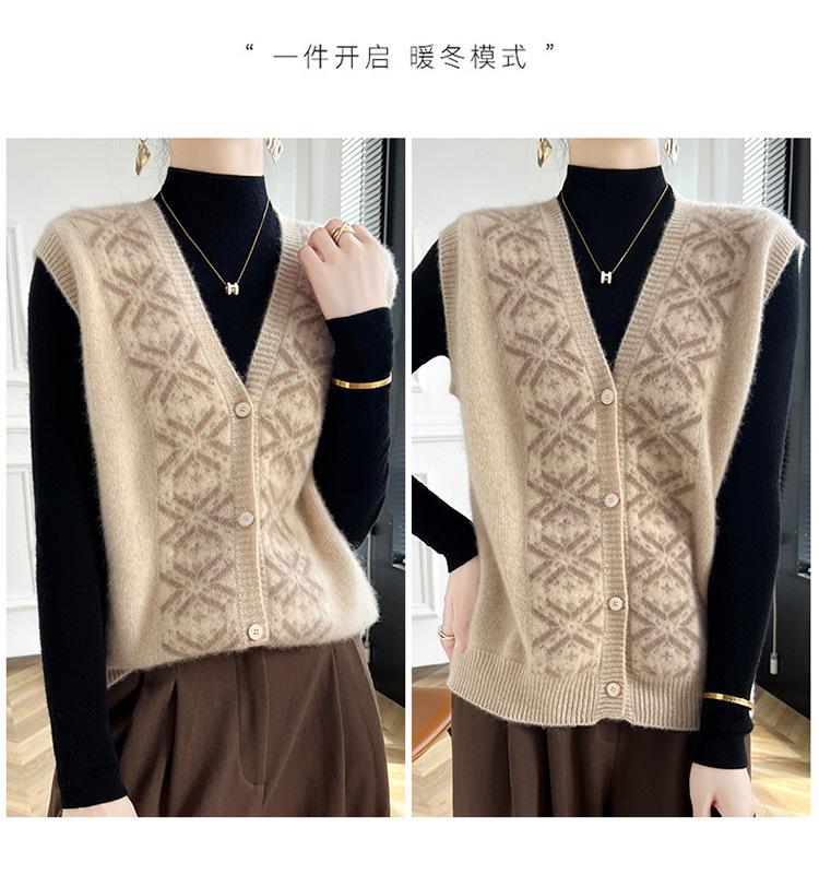 Chaleco de lana 100% pura para mujer, sin mangas, grueso, suelto, talla grande, suéter de punto, chaleco de lana apilado.