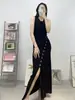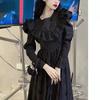 Vestido Negro Corto Estilo Hepburn Primavera Nuevo Vestido de Punto 2025 Diseño Nicho Francés Falda Cola de Pescado Ajustada a la Cadera
