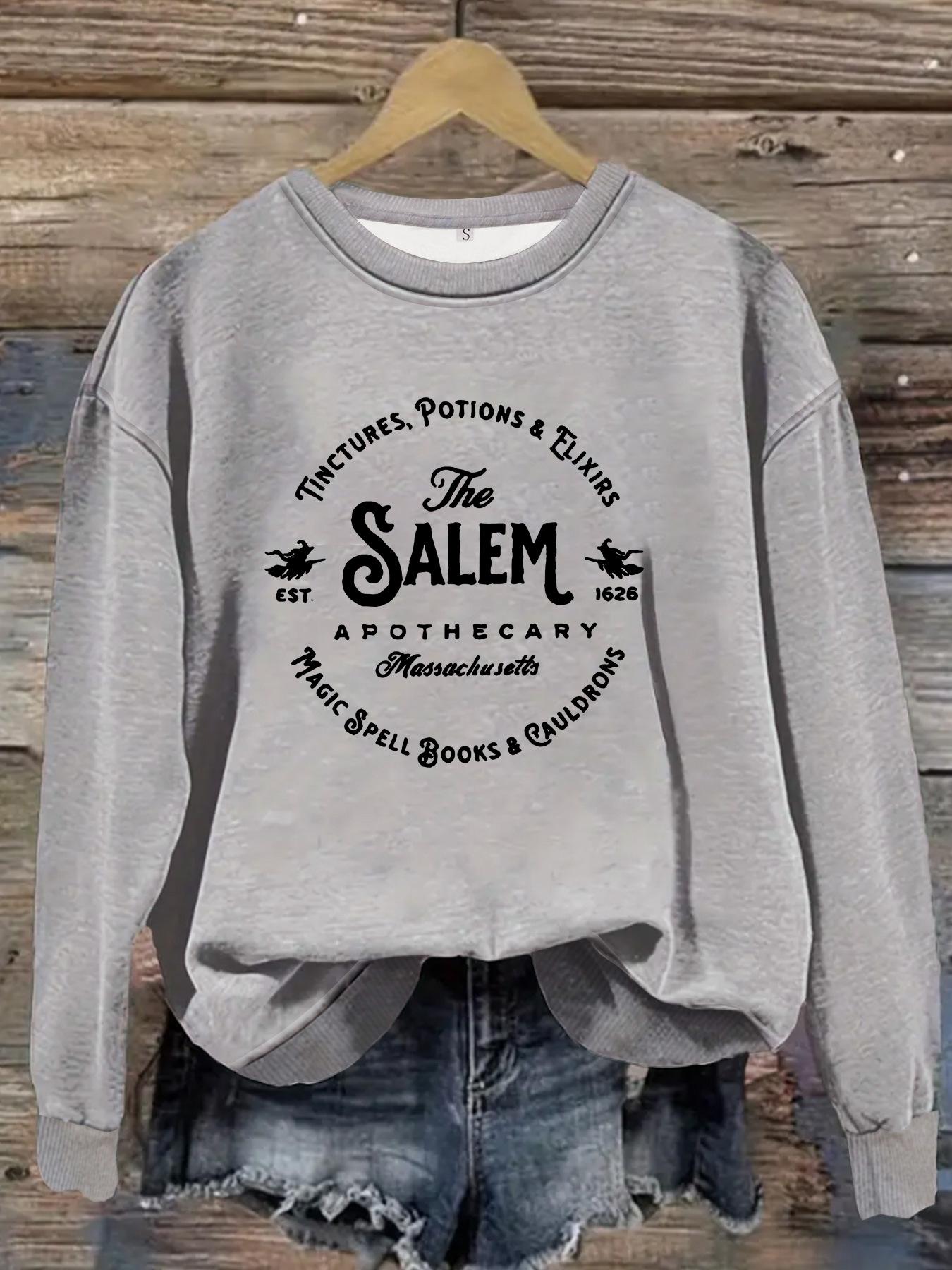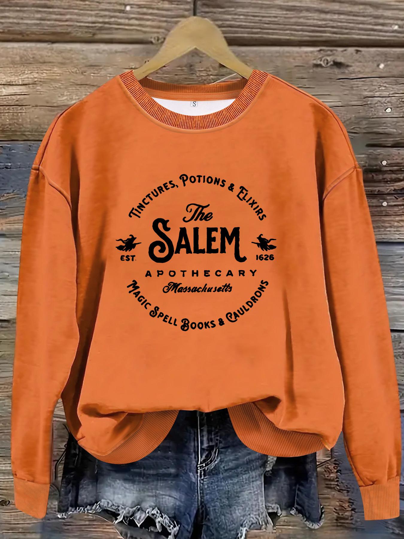 Sudadera con cuello redondo de manga larga para mujer, estilo informal, con estampado de Halloween, estilo SALEM, para otoño e invierno, transfronteriza entre Europa y América