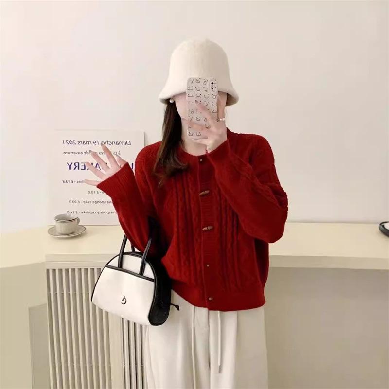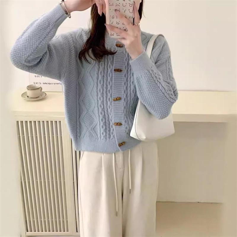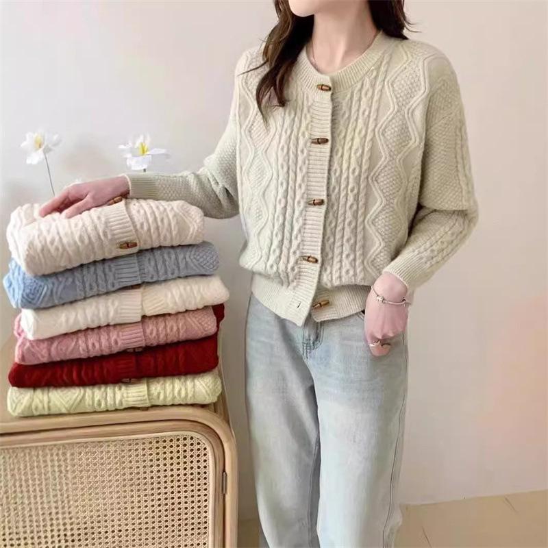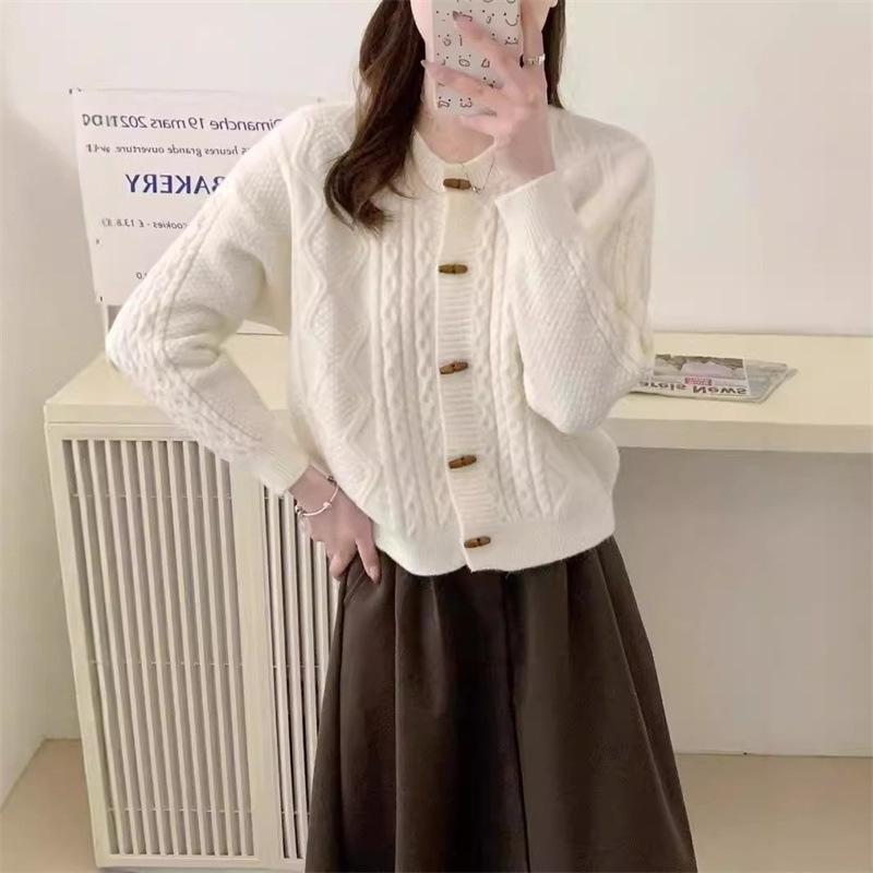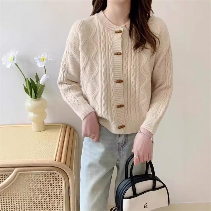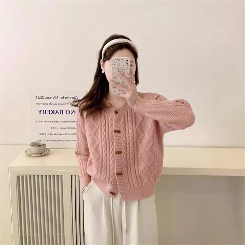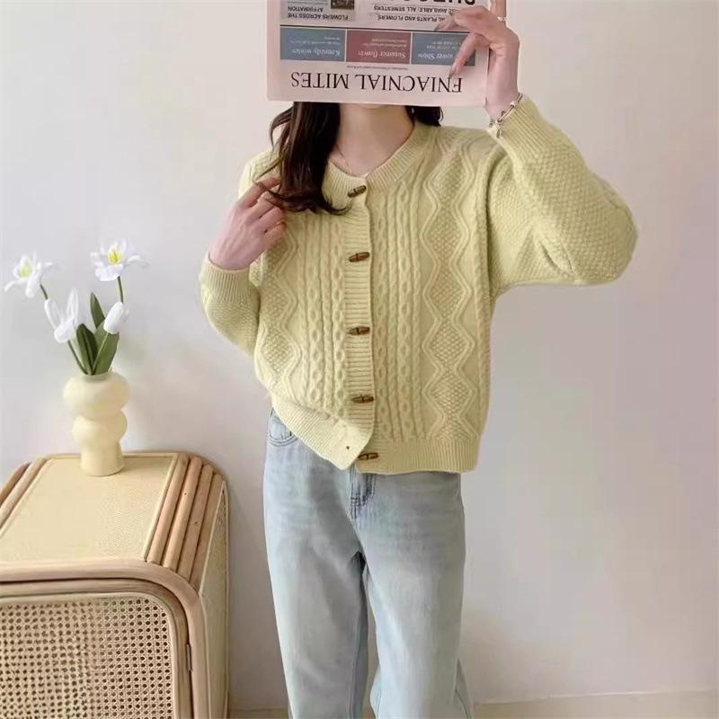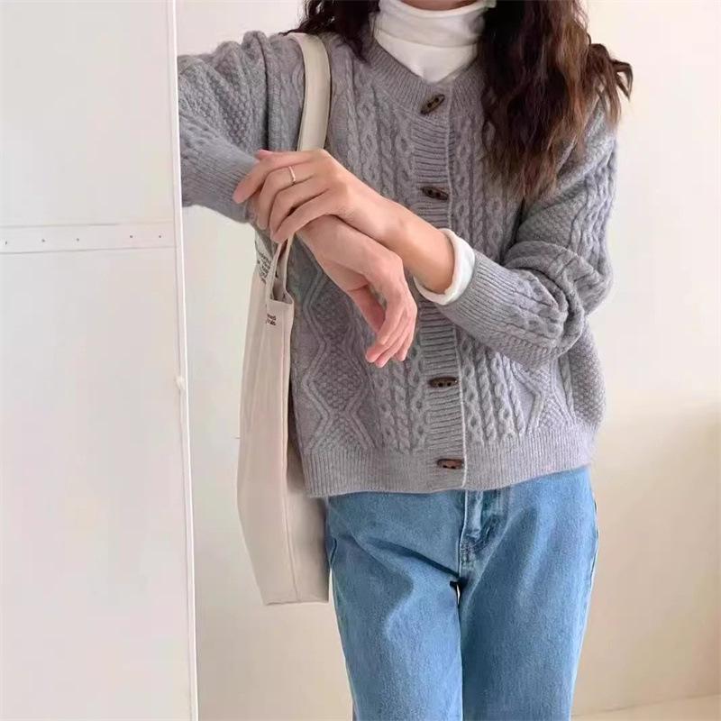 Suéter coreano vintage de punto suave y encerado para otoño e invierno, cárdigan pequeño que combina con todo, abrigo tipo suéter suelto con giro.