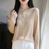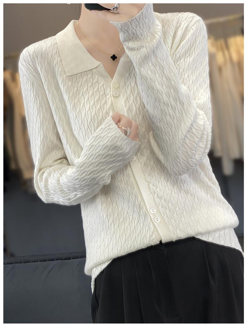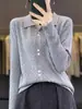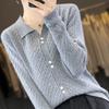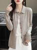 Cárdigan elegante y sencillo de punto trenzado de lana peinada para mujer, prenda superior de otoño, chaqueta holgada de color liso