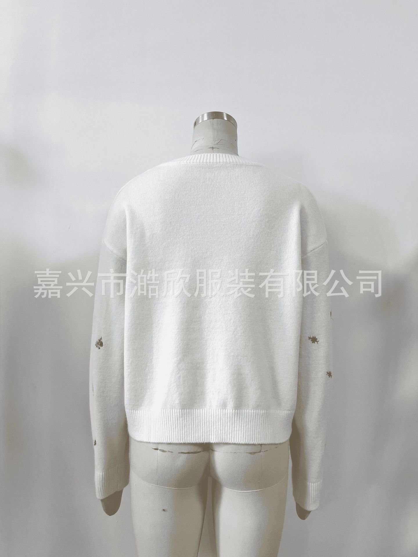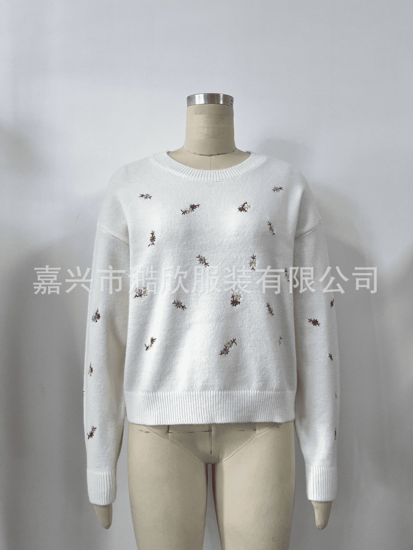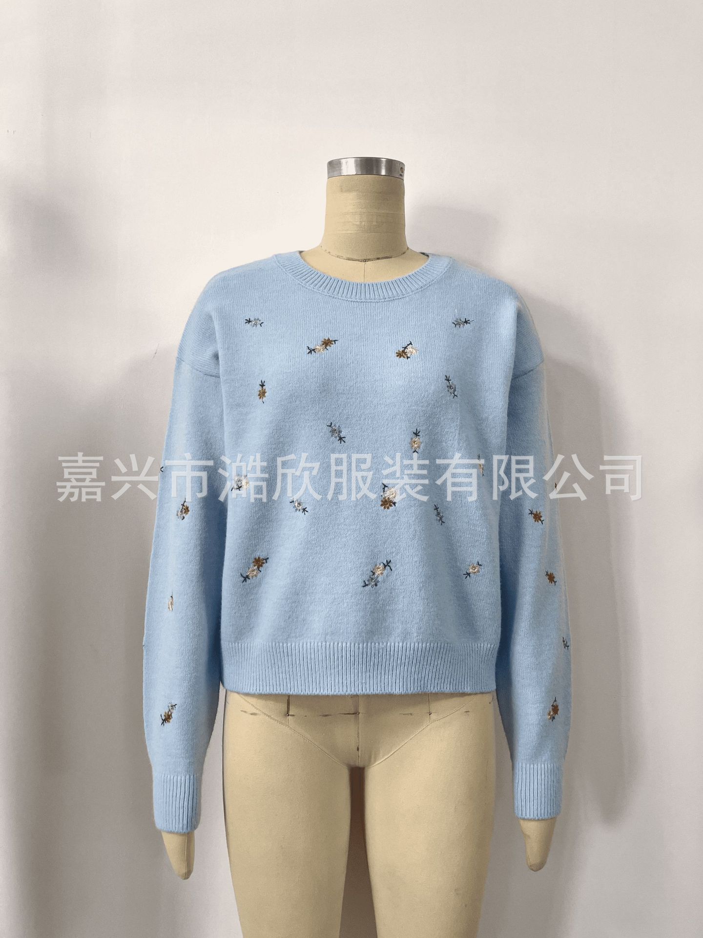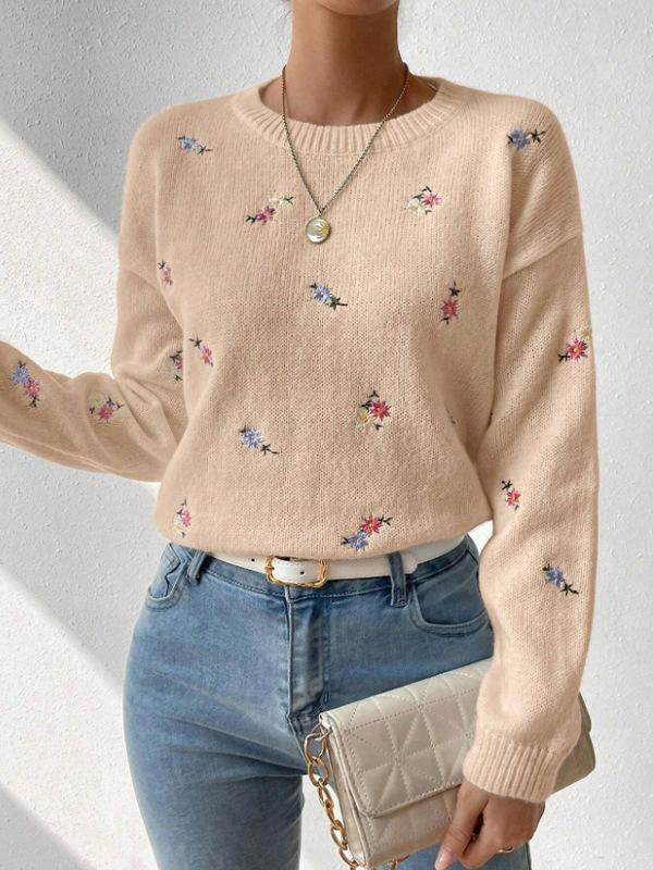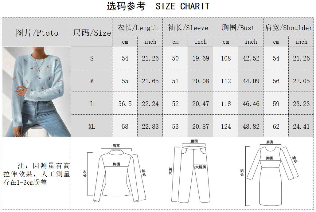 Moda Otoño e Invierno Nuevo Suéter Tejido Amazon Comercio Exterior para Mujer Jacquard Elegante Cuello Redondo Manga Larga Top Combinable