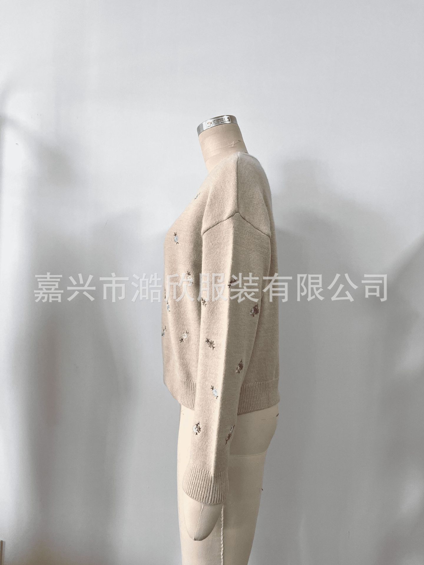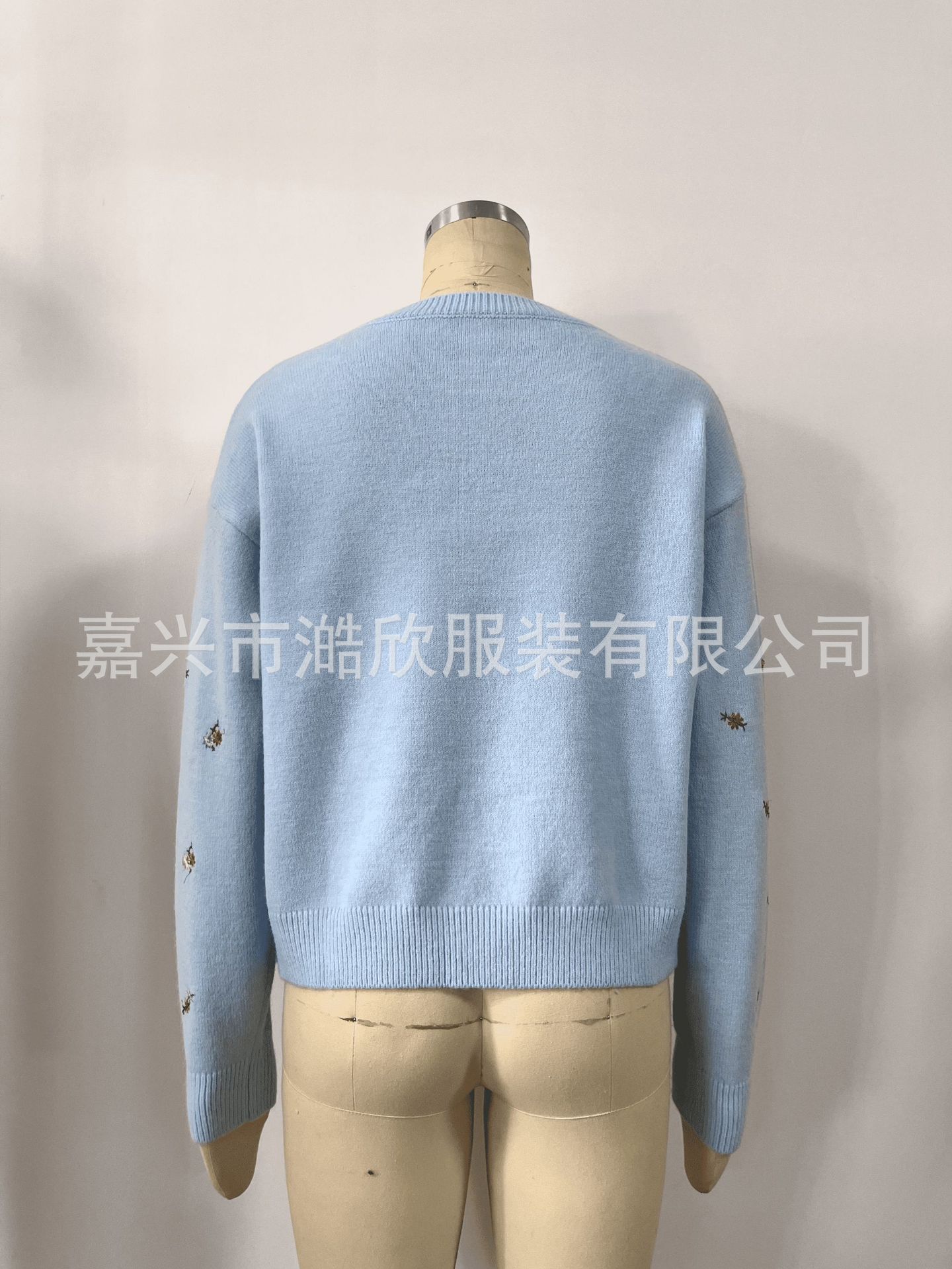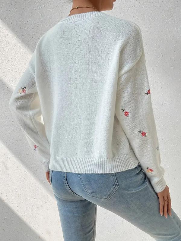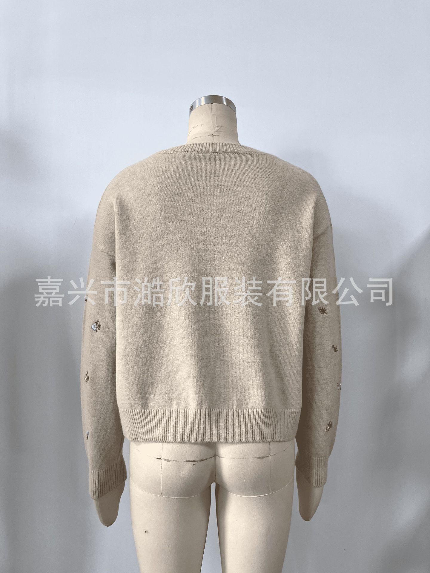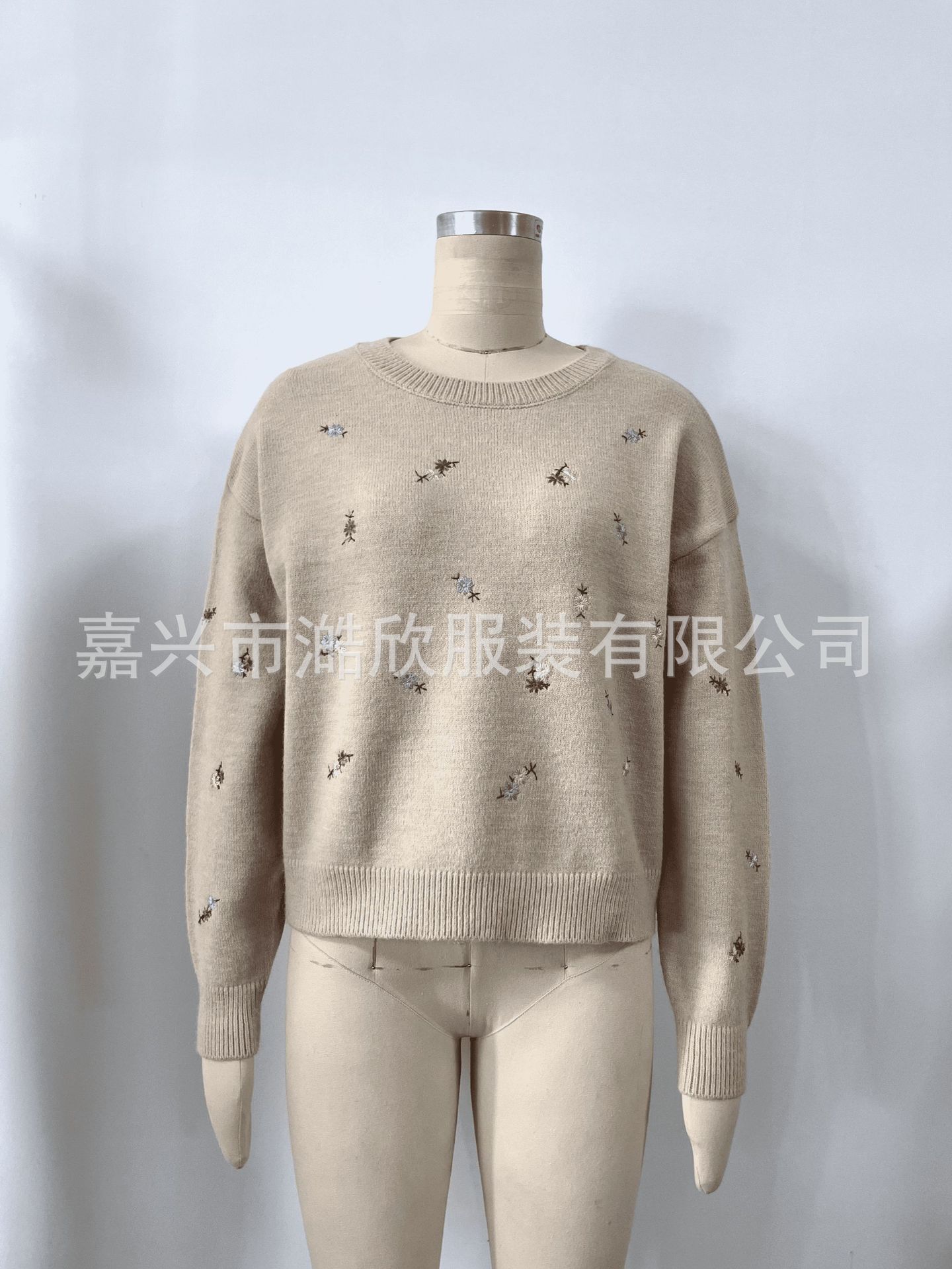 Moda Otoño e Invierno Nuevo Suéter Tejido Amazon Comercio Exterior para Mujer Jacquard Elegante Cuello Redondo Manga Larga Top Combinable
