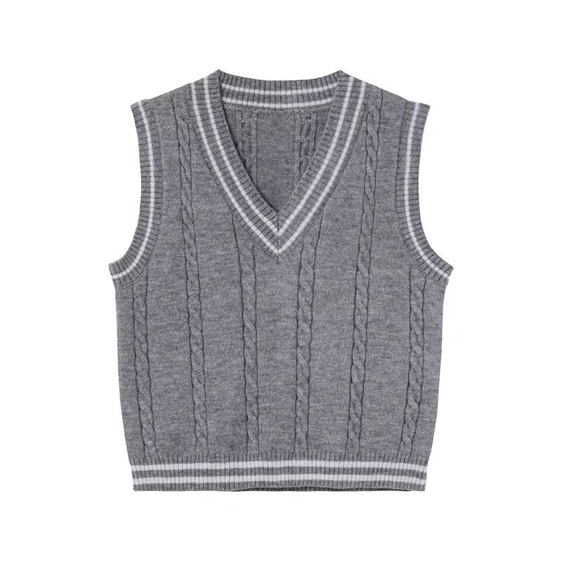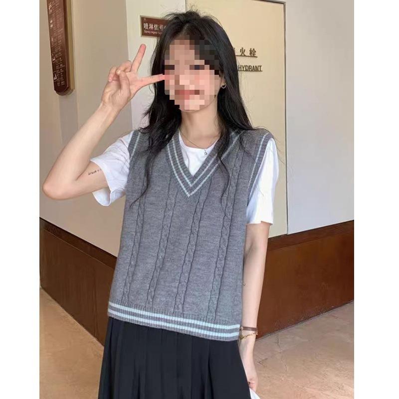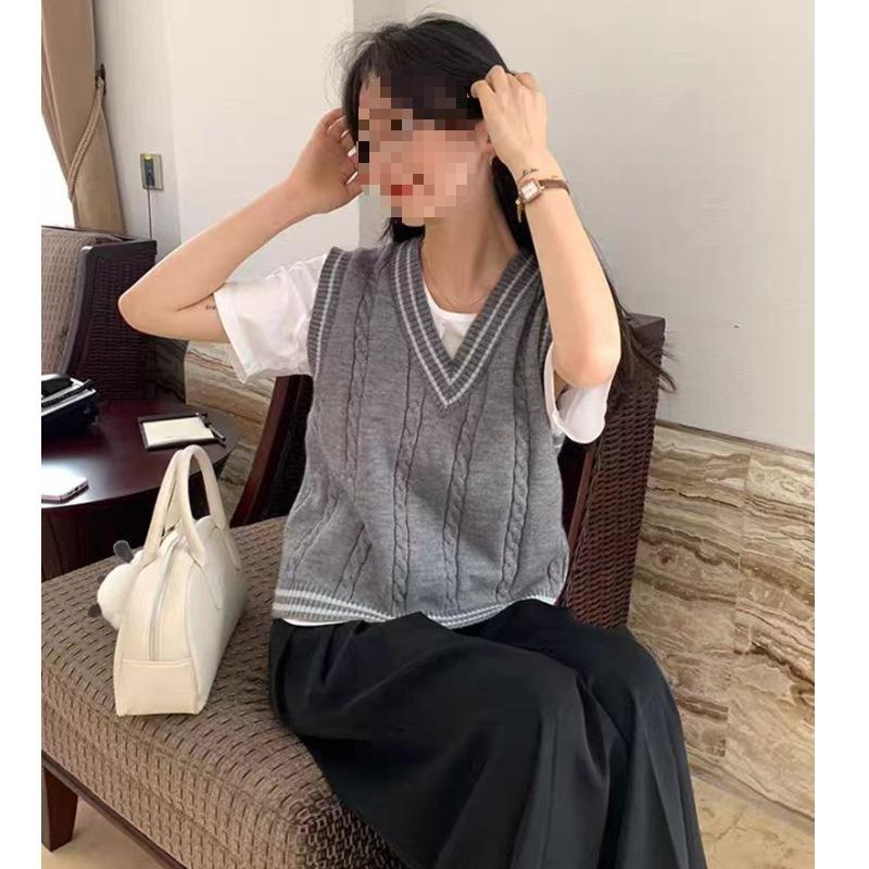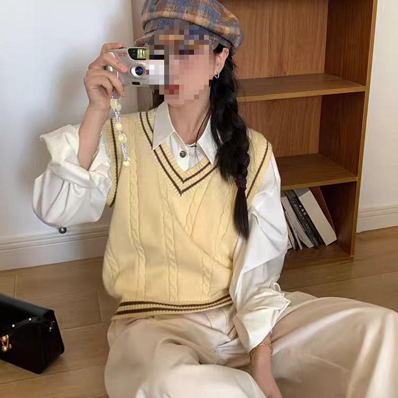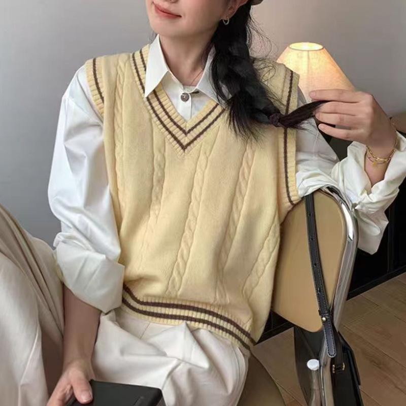 Chaleco estilo universitario para mujer, nuevo chaleco de suéter de otoño e invierno 2024, chaleco exterior de punto con hombros apilados para mujer