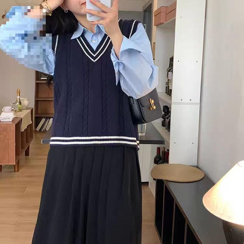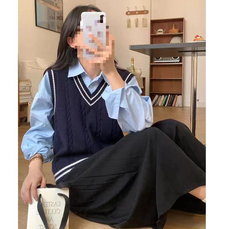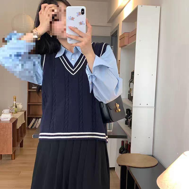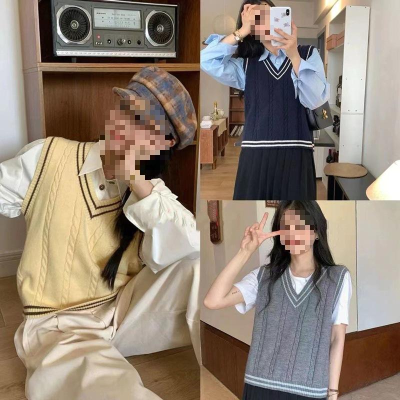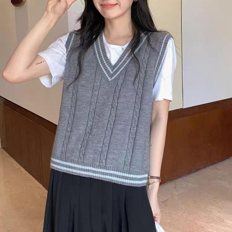 Chaleco estilo universitario para mujer, nuevo chaleco de suéter de otoño e invierno 2024, chaleco exterior de punto con hombros apilados para mujer