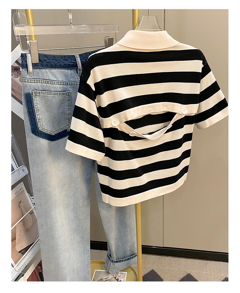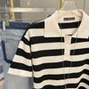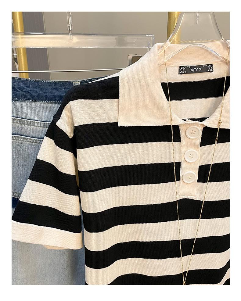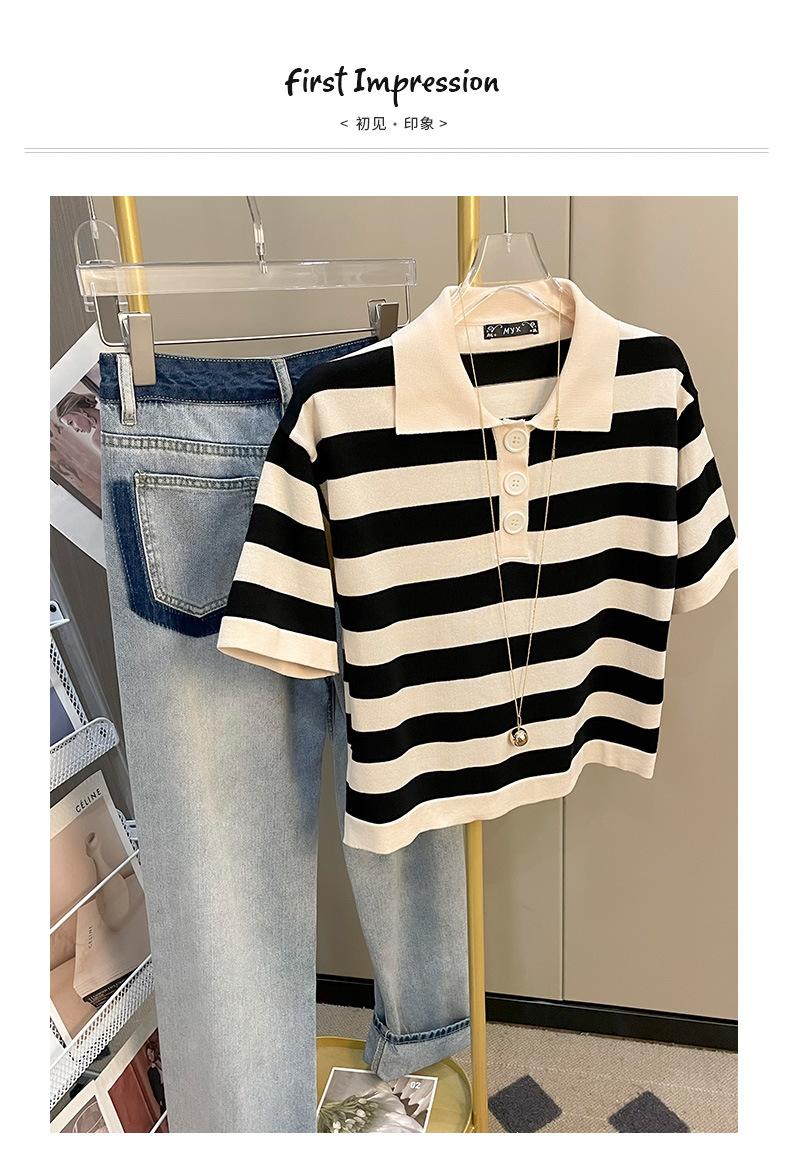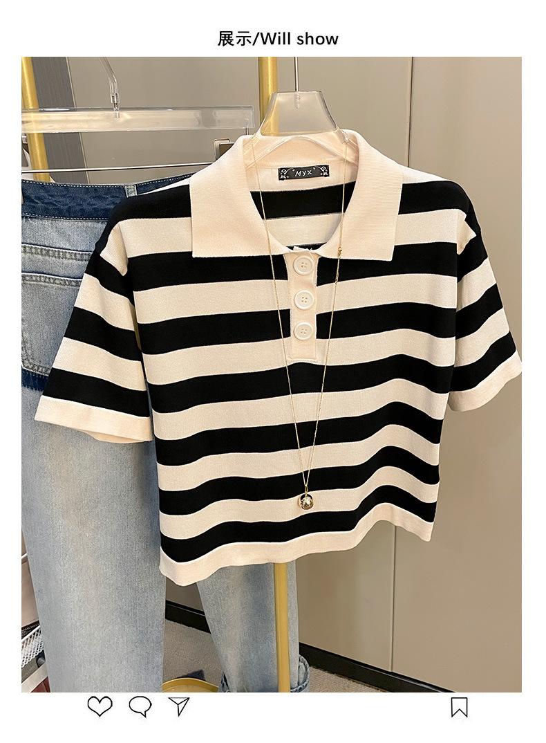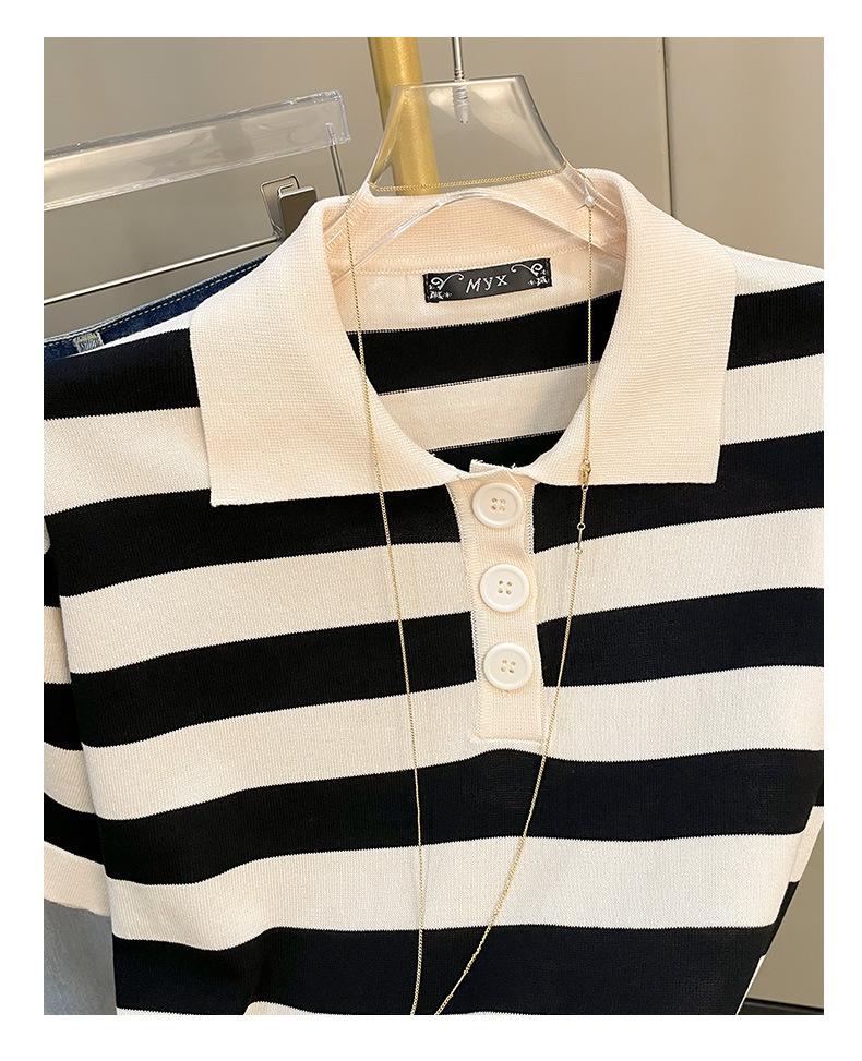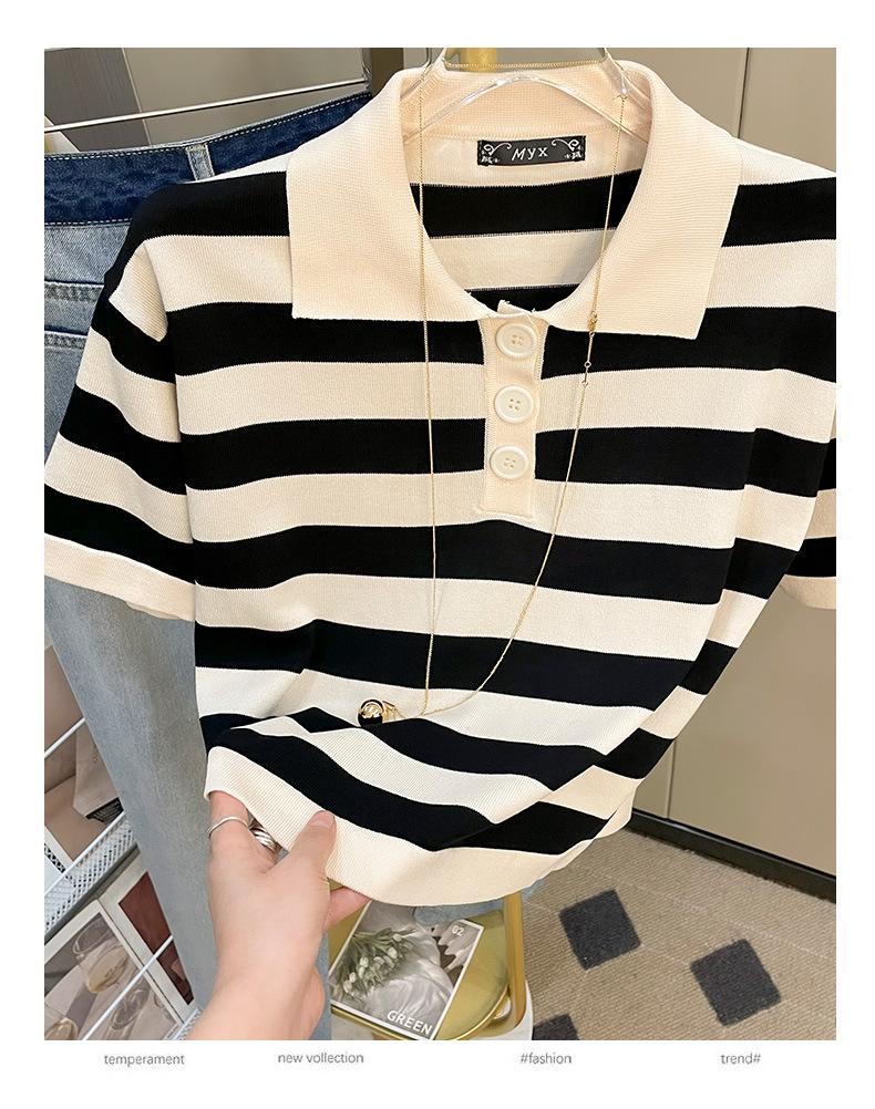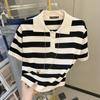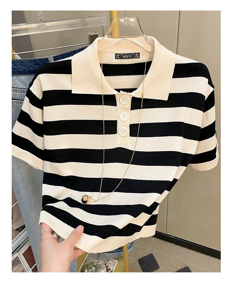 Camiseta básica de manga corta con cuello polo a rayas para mujer 2025 Verano Nuevo Diseño Nicho Look Adelgazante Top Holgado