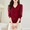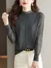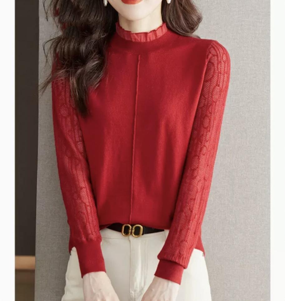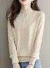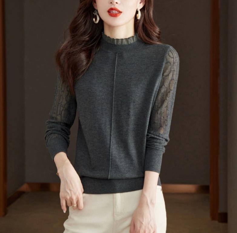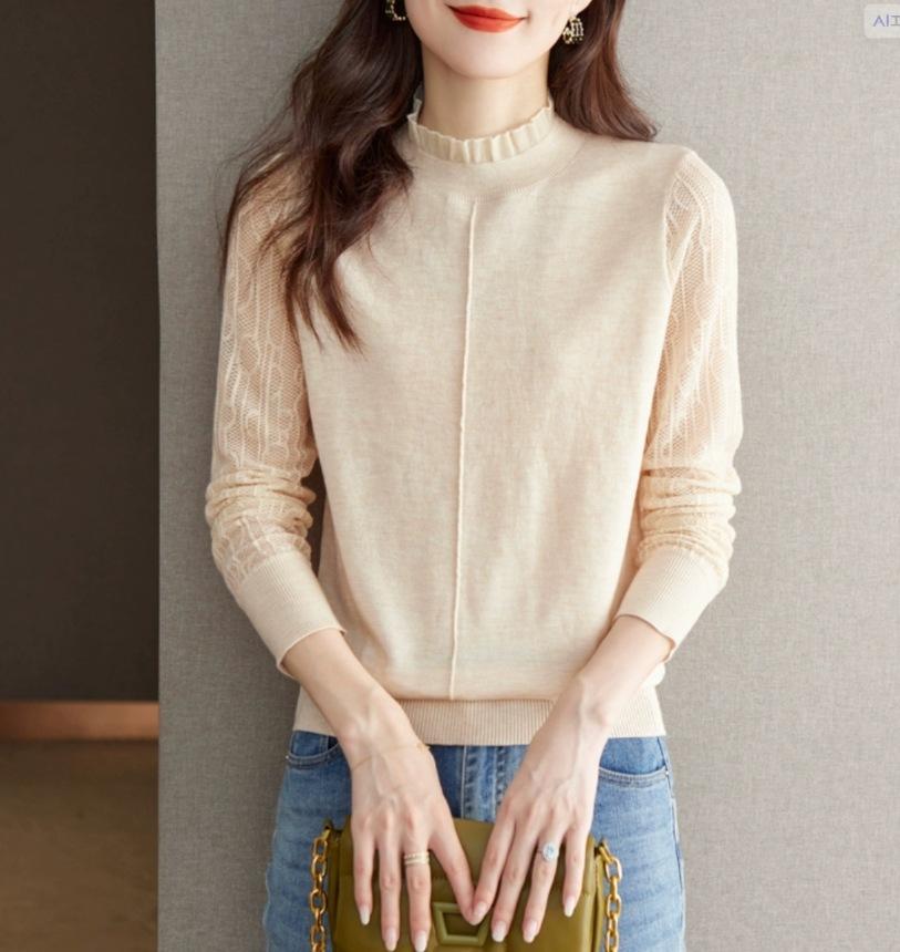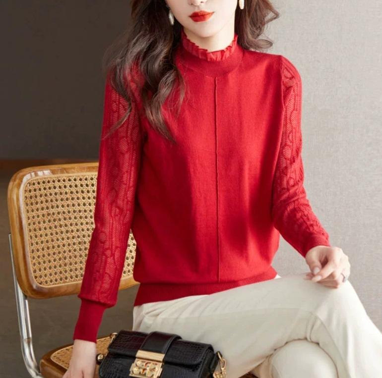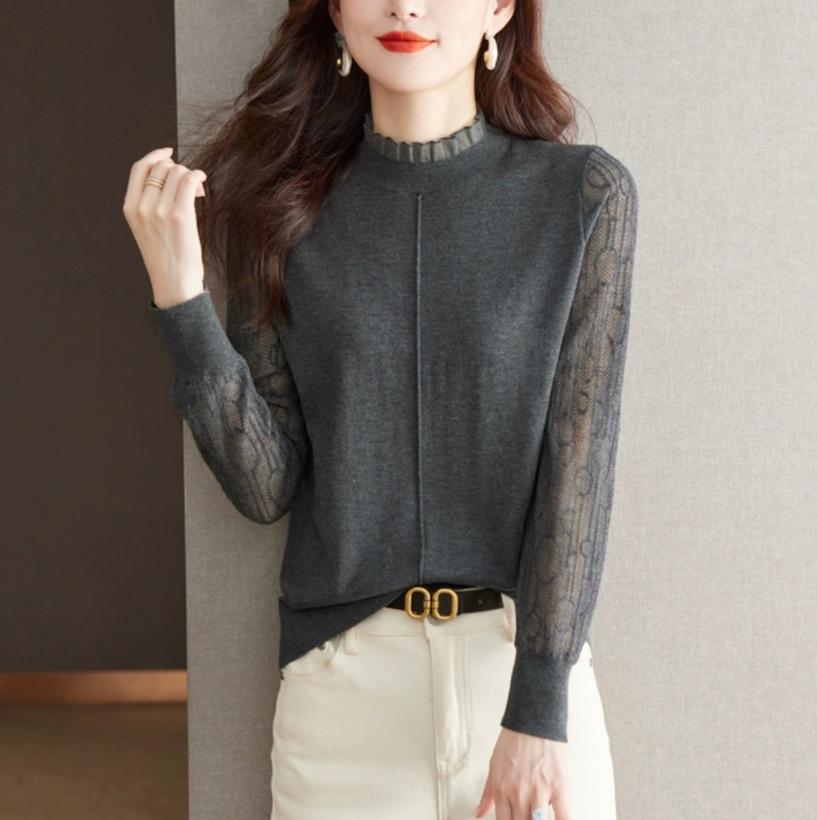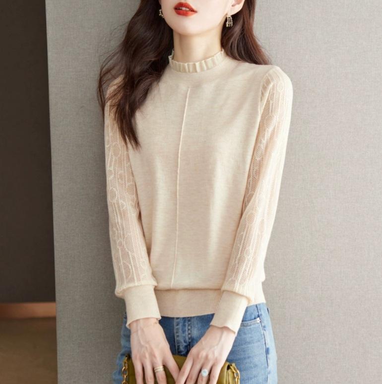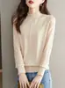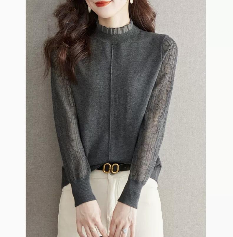 Top Camiseta Base Fina de Manga Larga para Primavera y Otoño para Mujer 2025 Nuevo Principios de Otoño Elegante y Único Suéter de Punto con Cuello con Volantes