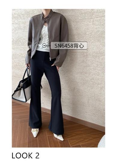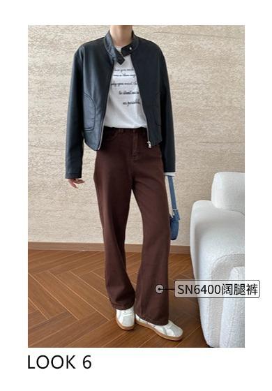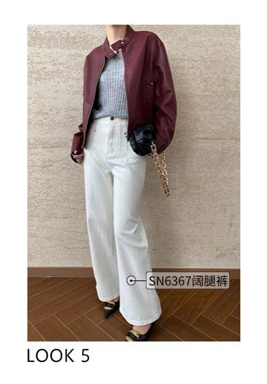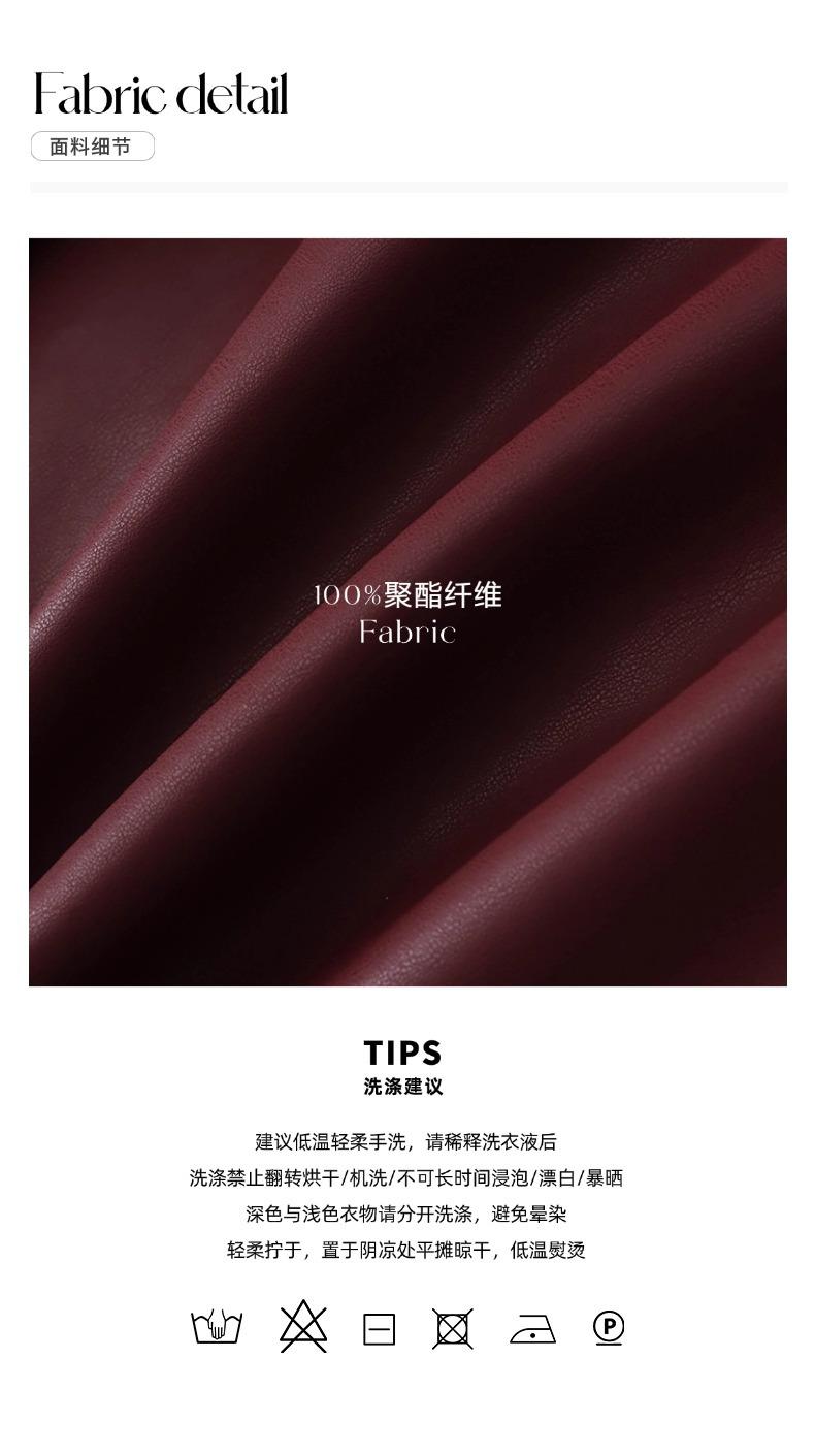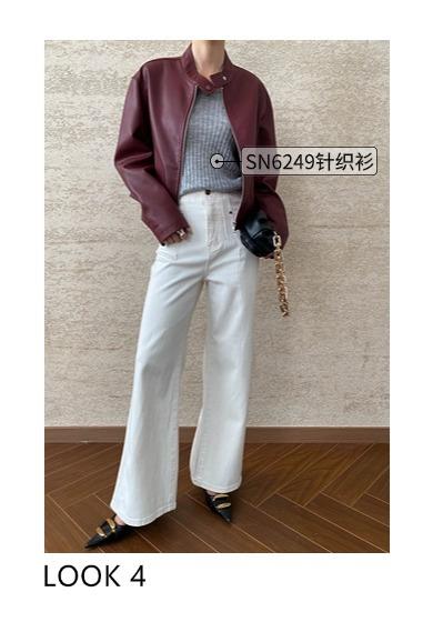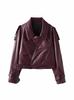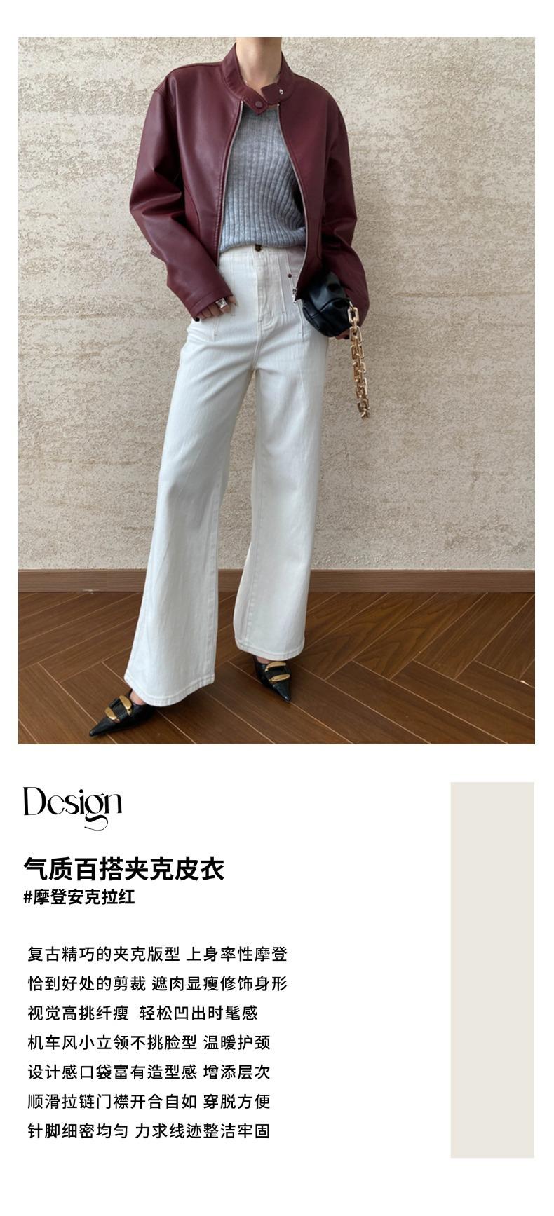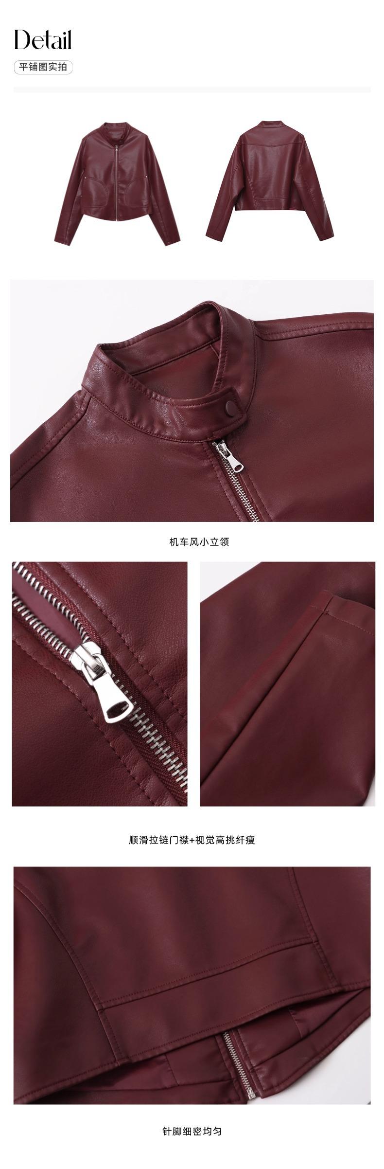 Sinan Moderno y Rojo Carat Chaqueta Elegante Versátil Estilo Motociclista Cuello Mao Chaqueta de Cuero Estilo Corto Sn6412