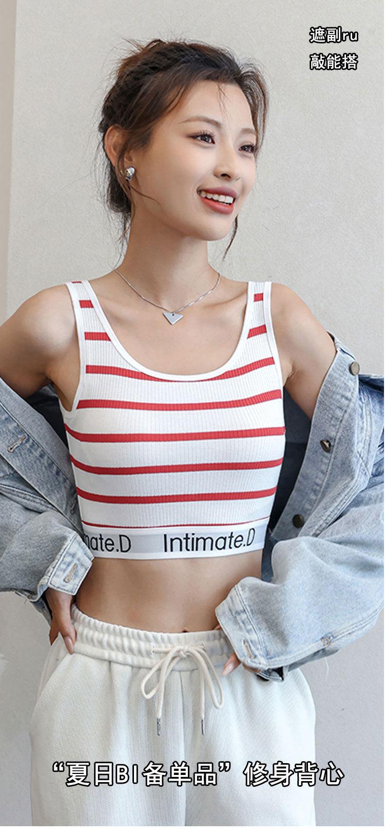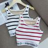 Chaleco corto de una pieza con cuello en U y almohadilla para el pecho en contraste de color para mujer, prenda exterior deportiva con tirantes y corte ajustado.