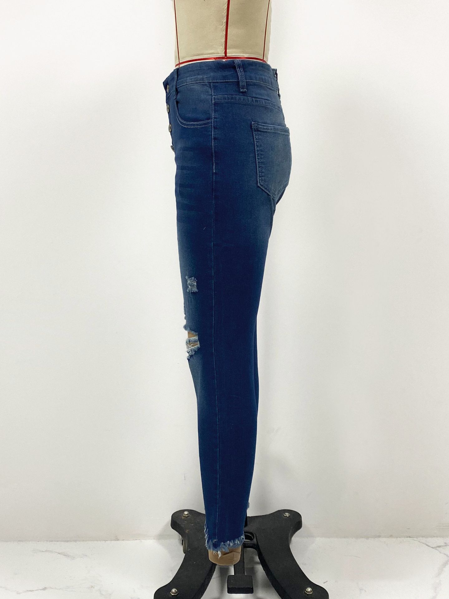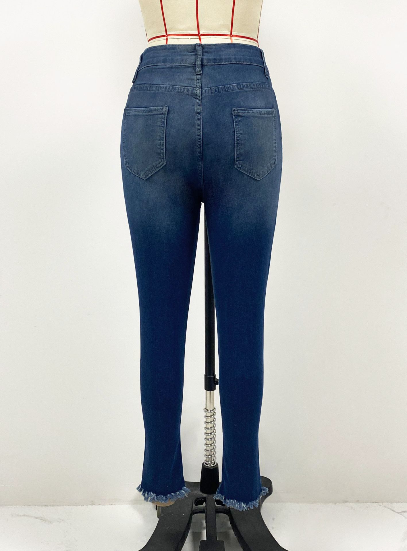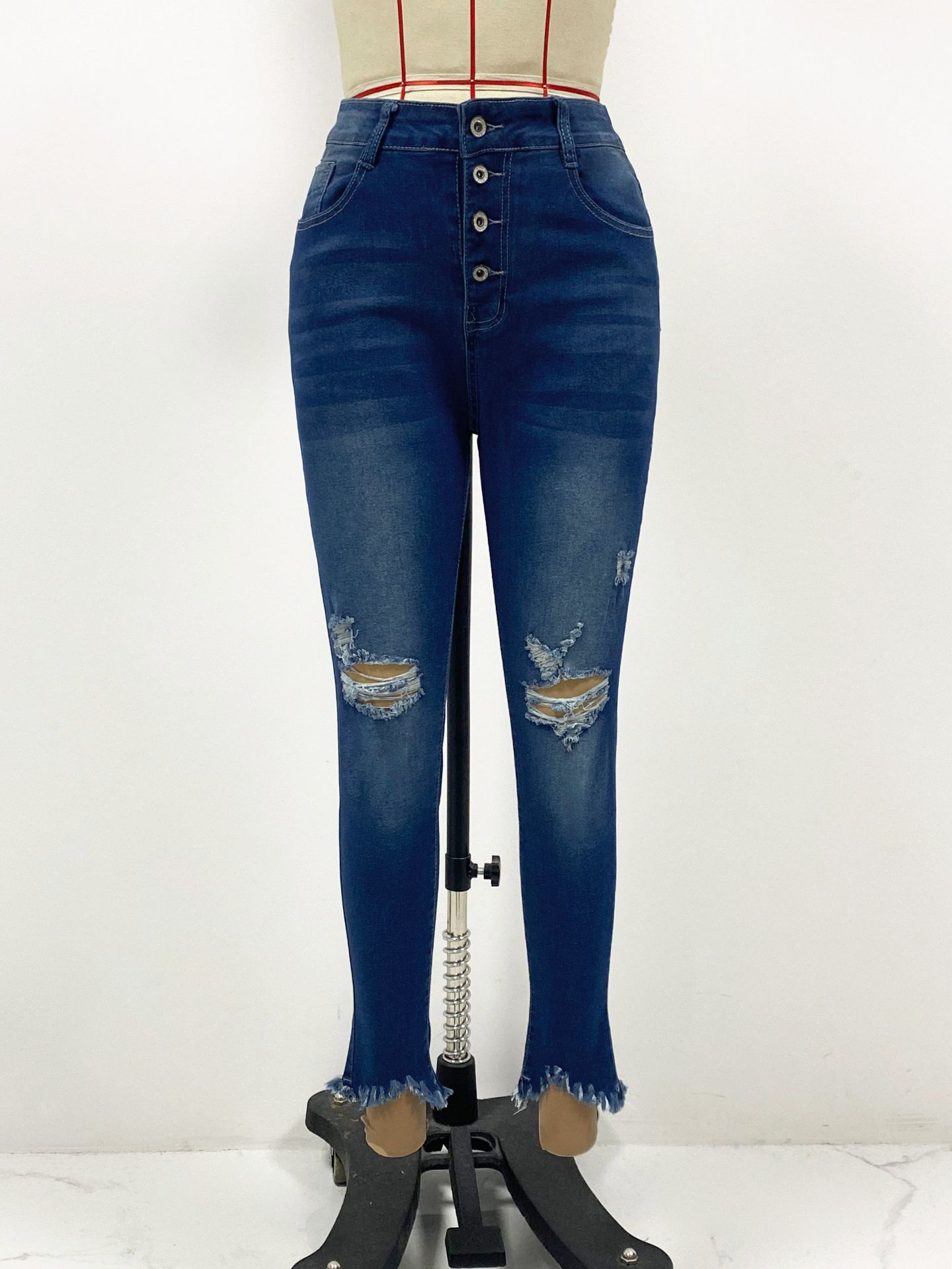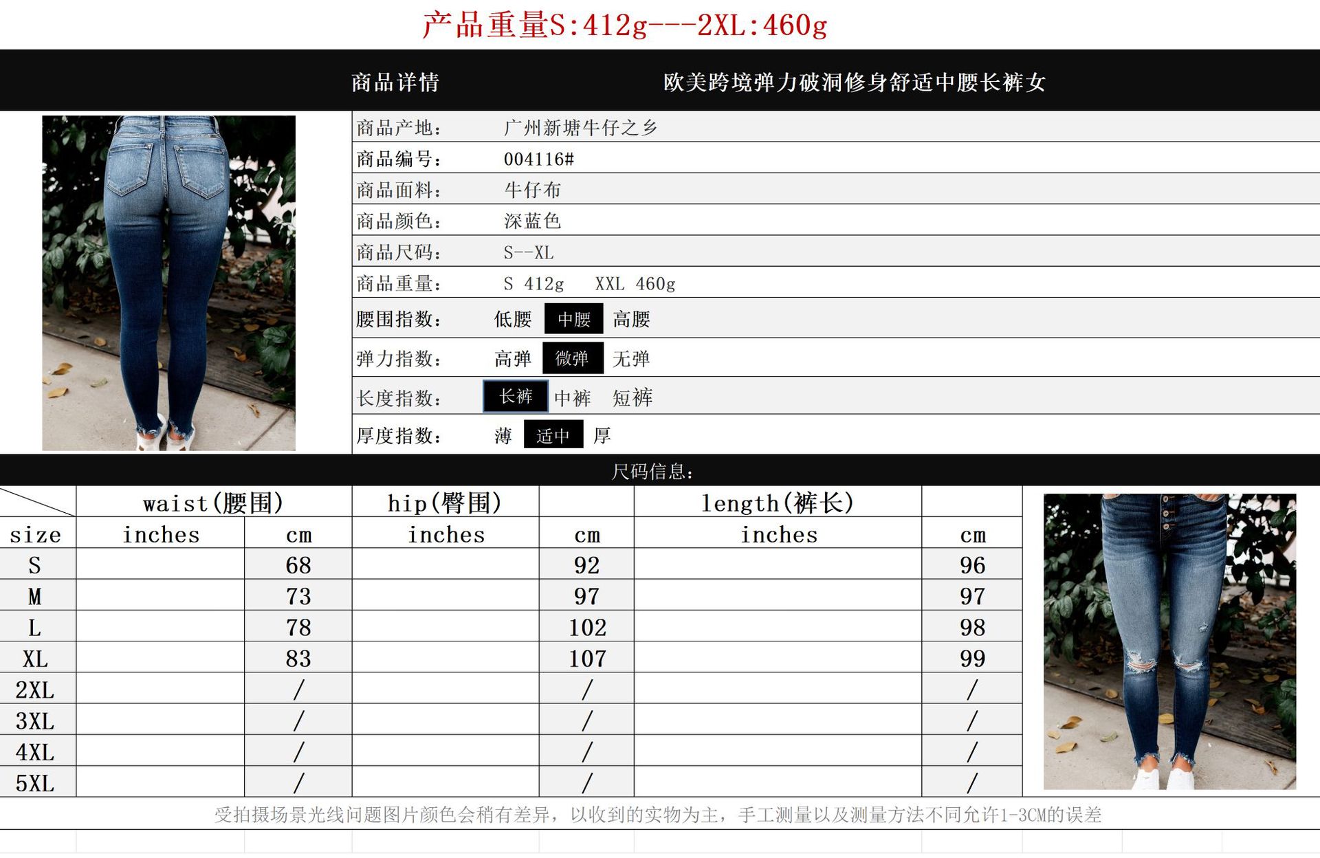 Venta Directa de Fábrica 2025 Verano Nuevo Jeans Europeo y Americano Transfronterizo Stretch Rotos Ajustados Cómodos Cintura Media Pantalones Largos para Mujer