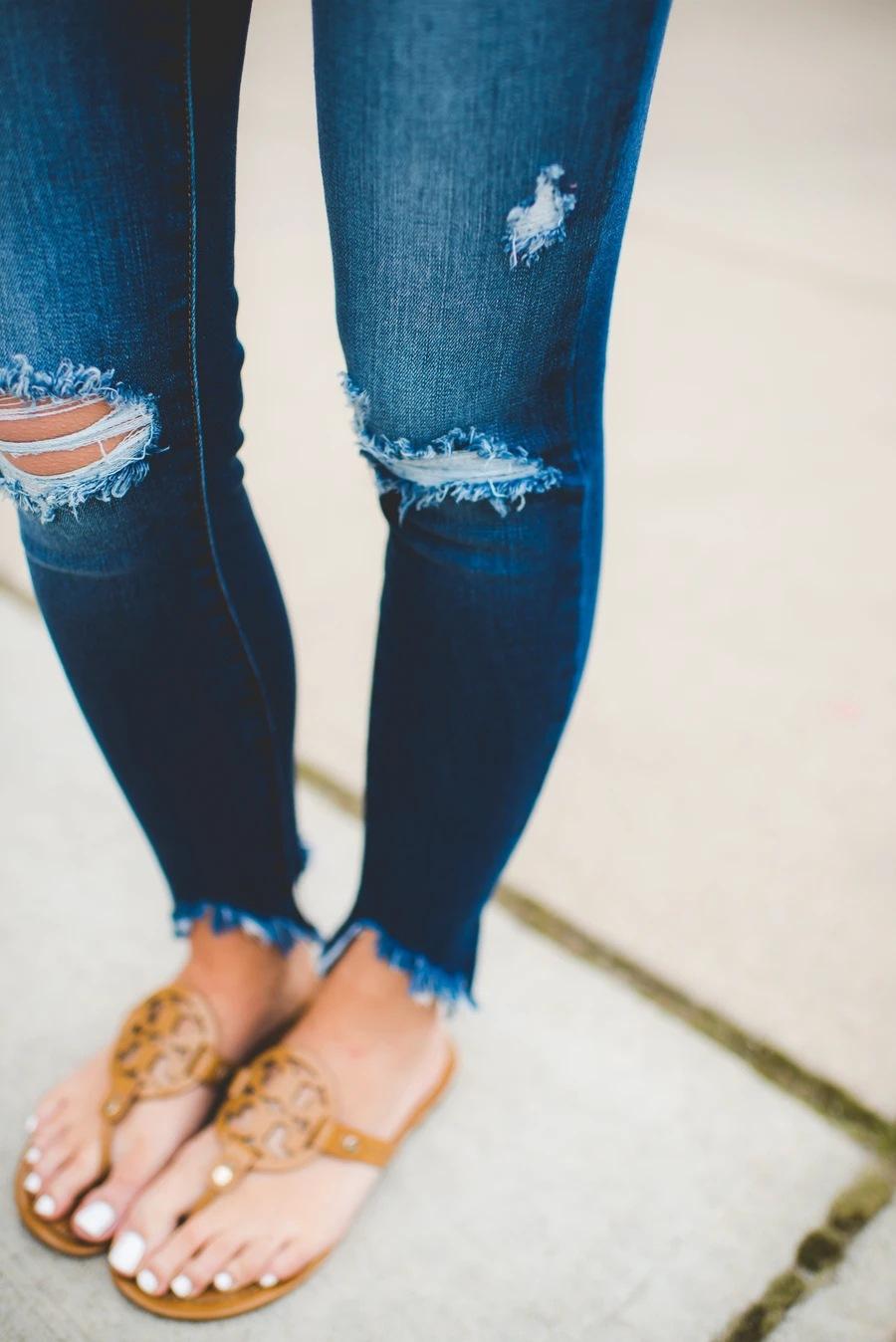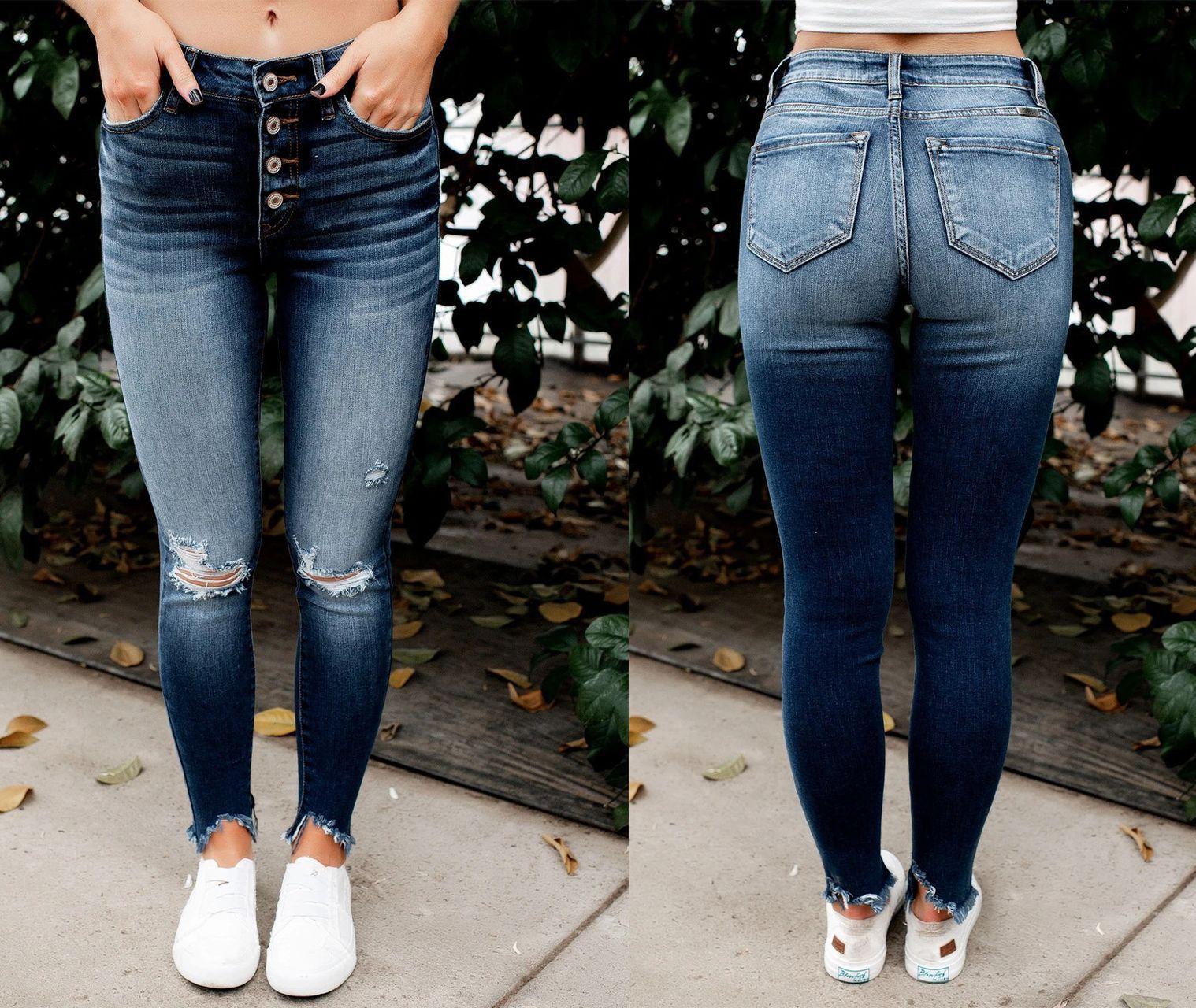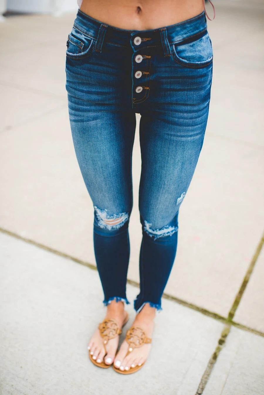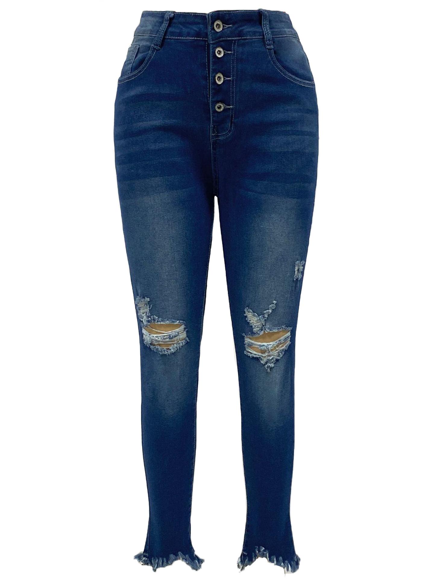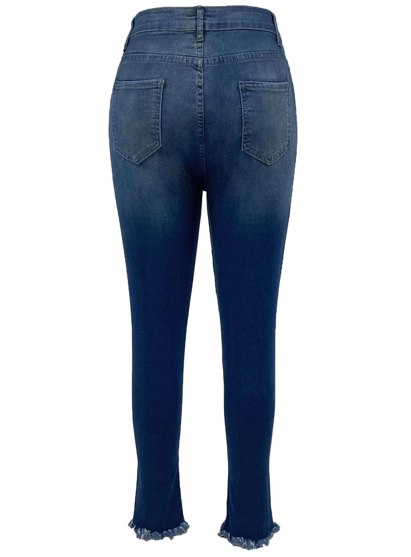 Venta Directa de Fábrica 2025 Verano Nuevo Jeans Europeo y Americano Transfronterizo Stretch Rotos Ajustados Cómodos Cintura Media Pantalones Largos para Mujer