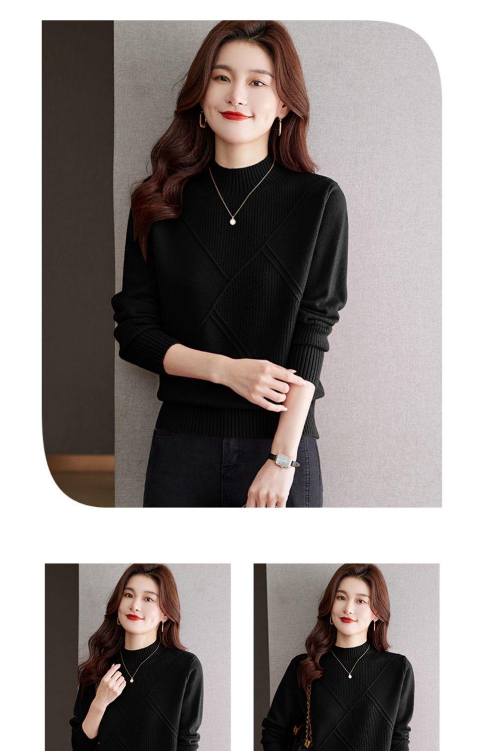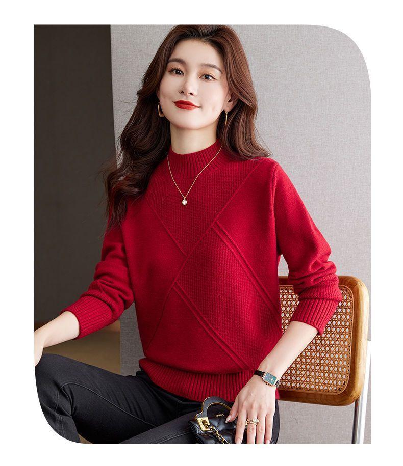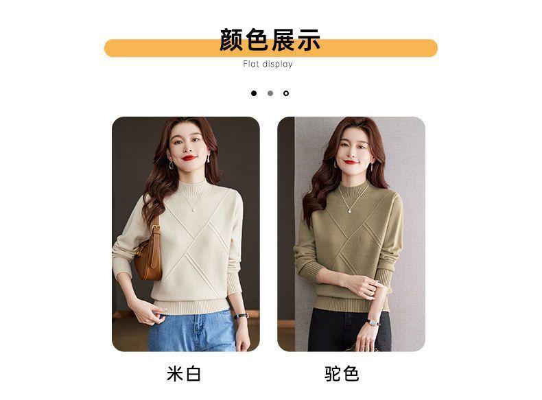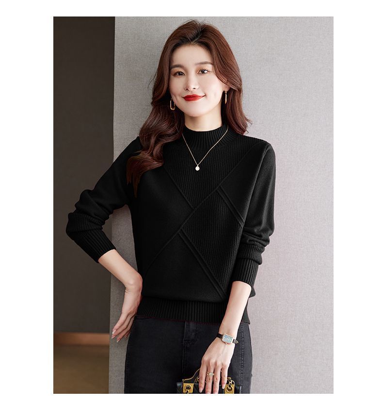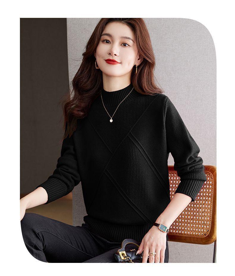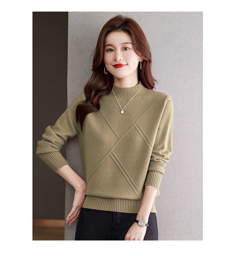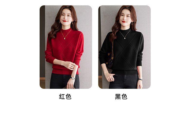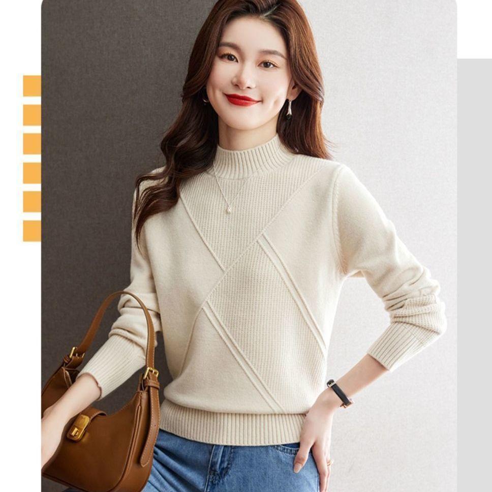 Suéter de medio cuello alto para mujer de manga larga otoño e invierno 2024 nuevo francés suelto moda interior tejido base camisa top