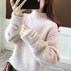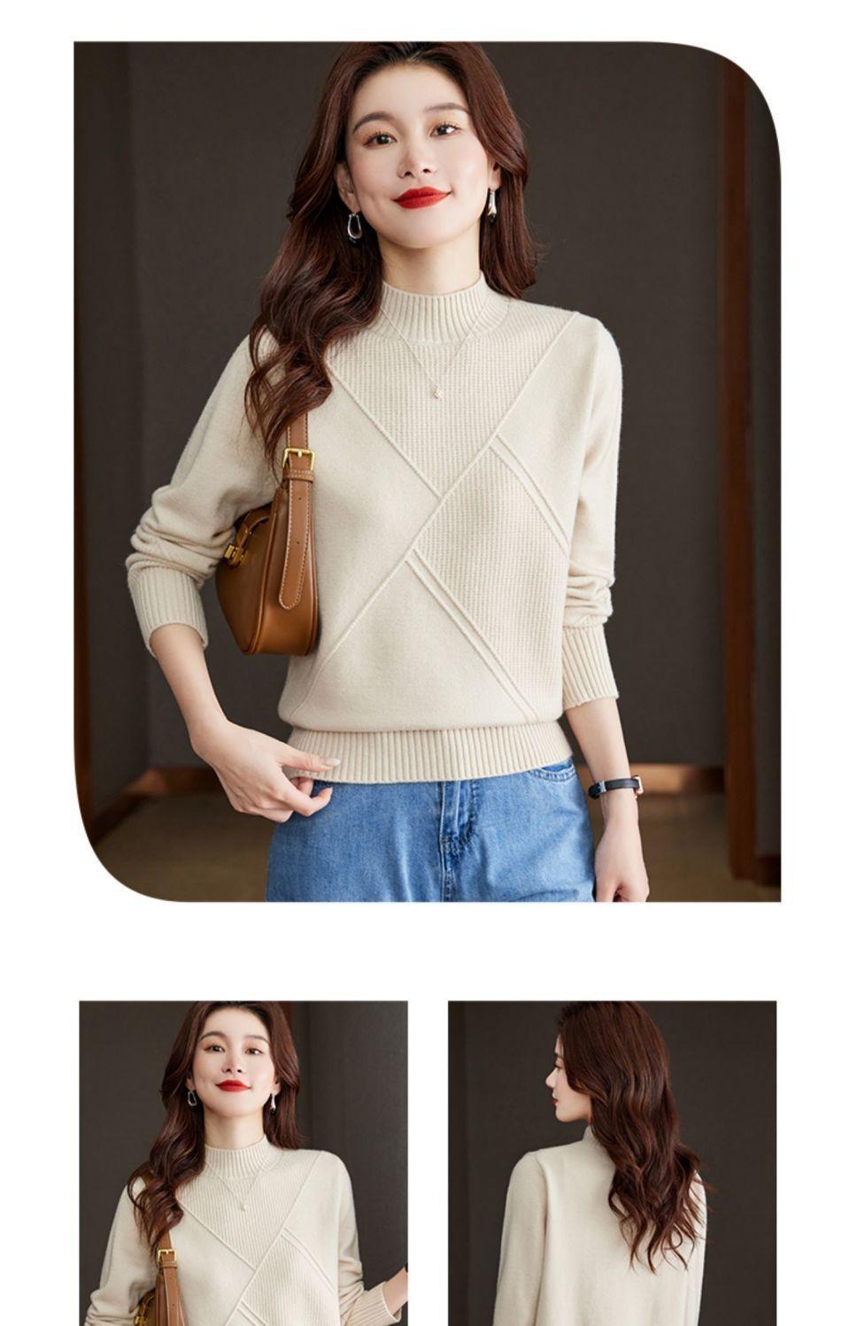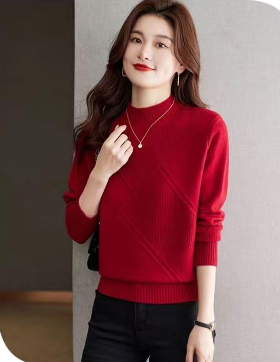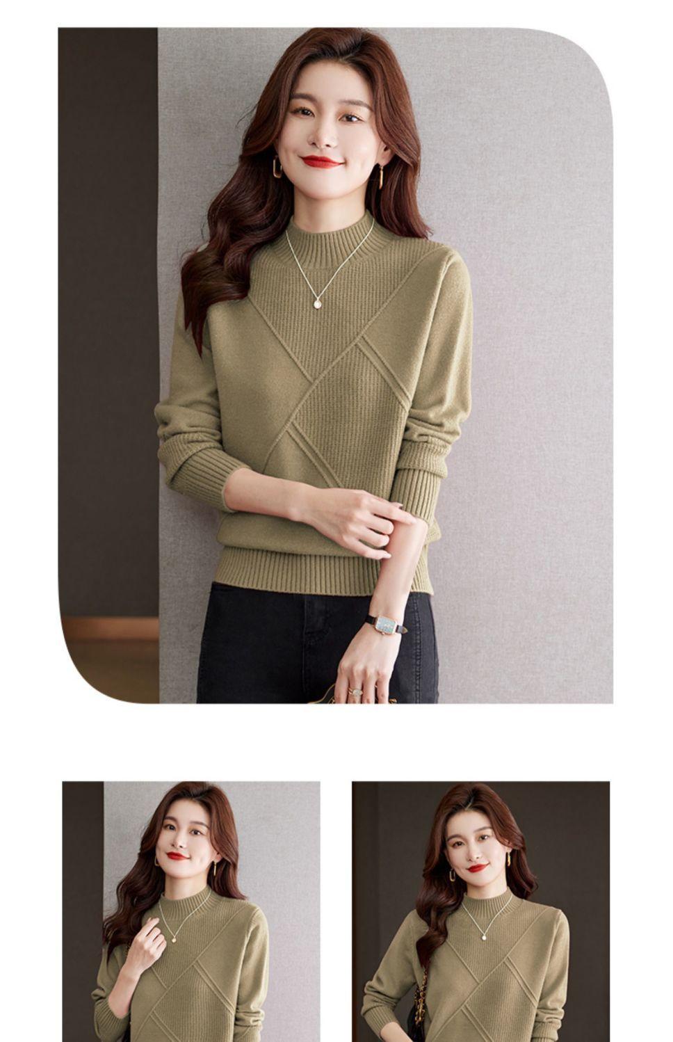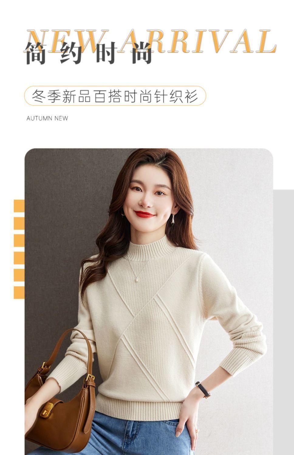 Suéter de medio cuello alto para mujer de manga larga otoño e invierno 2024 nuevo francés suelto moda interior tejido base camisa top