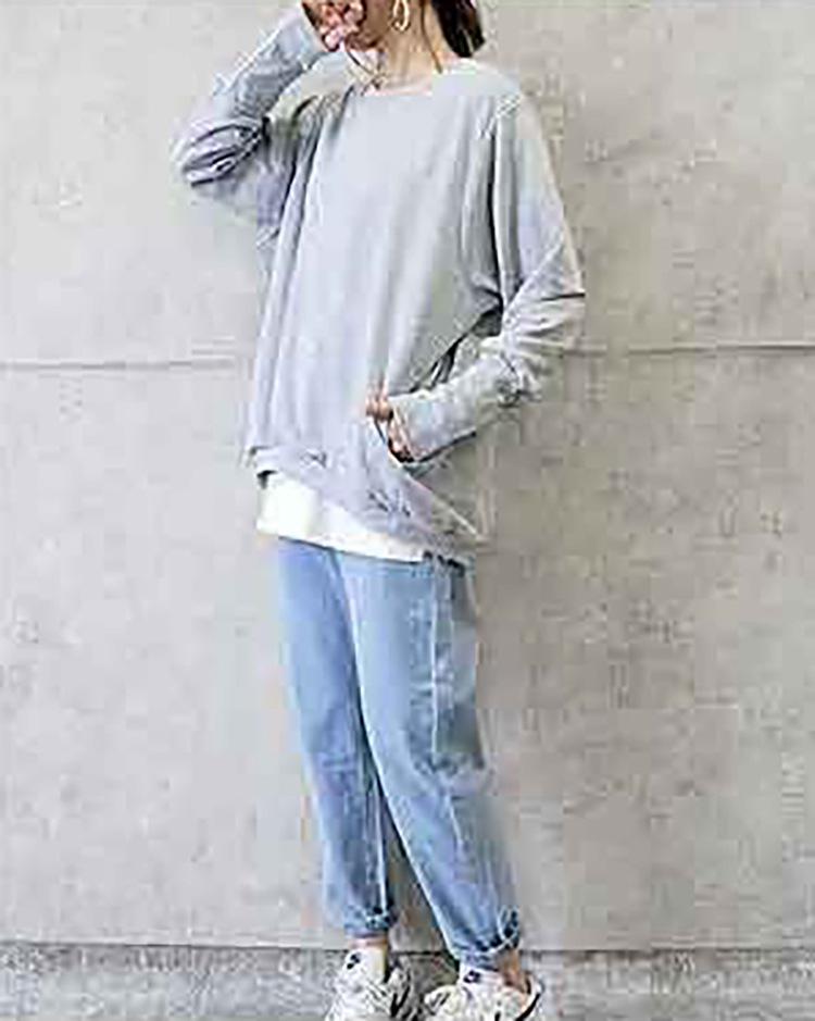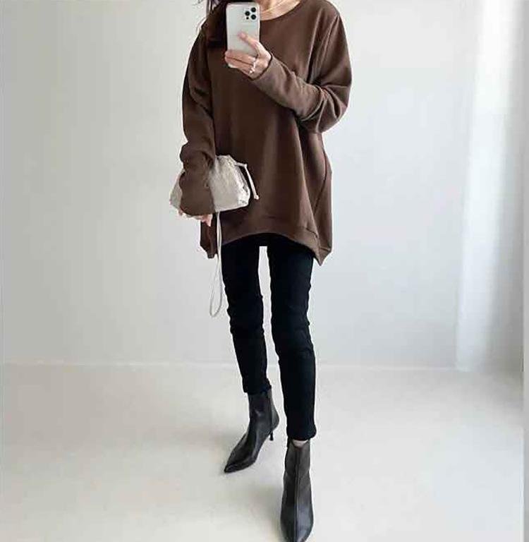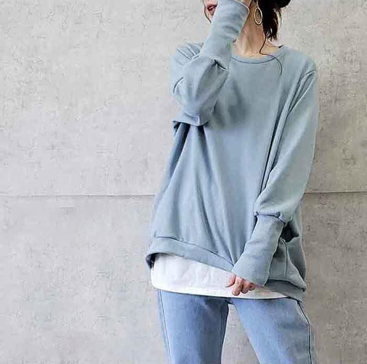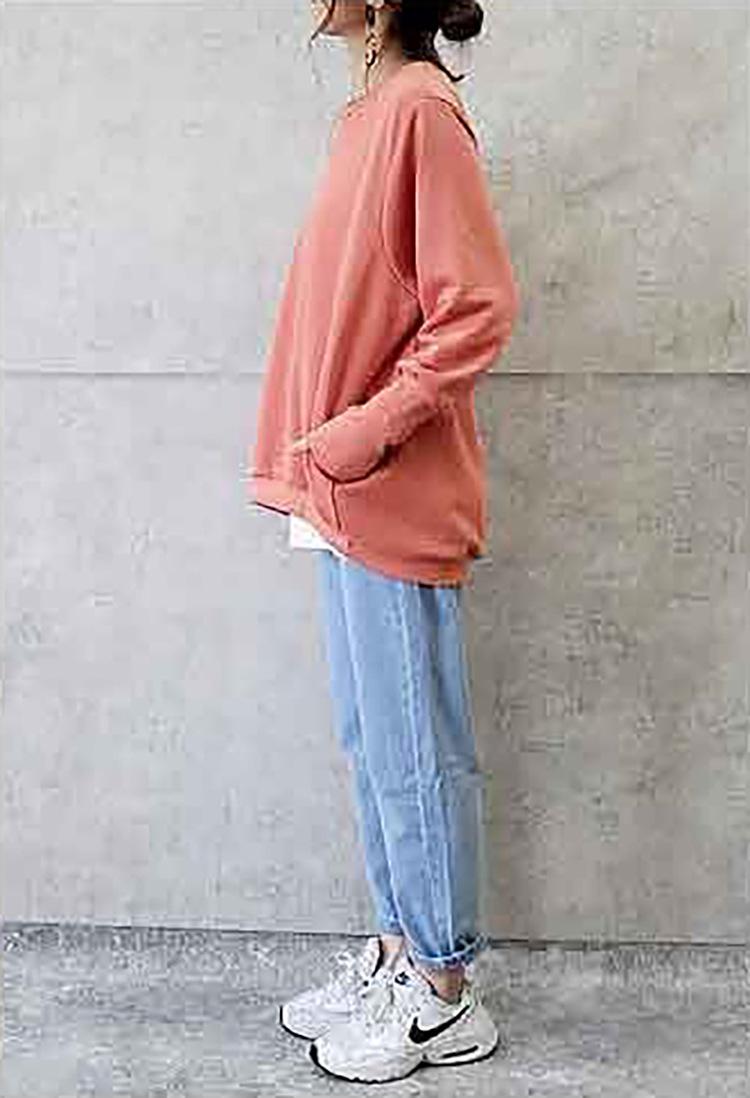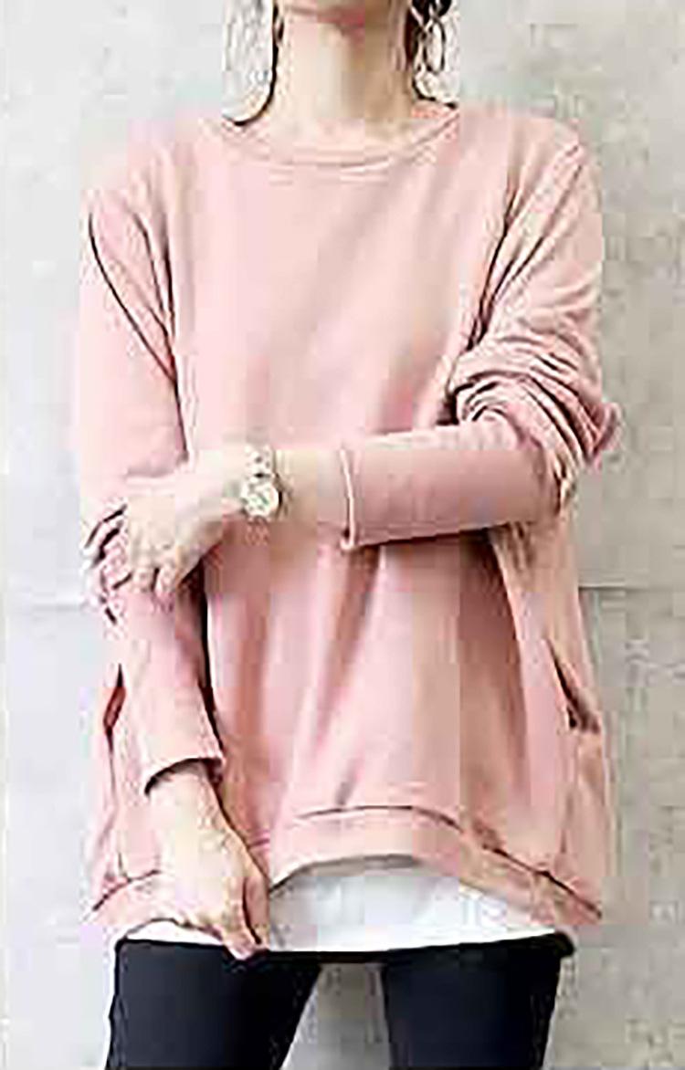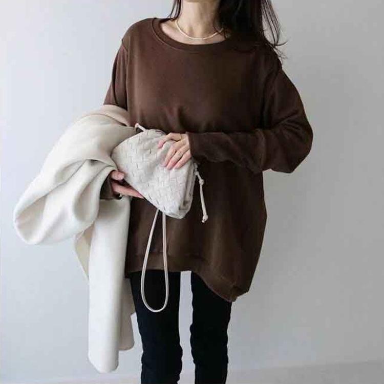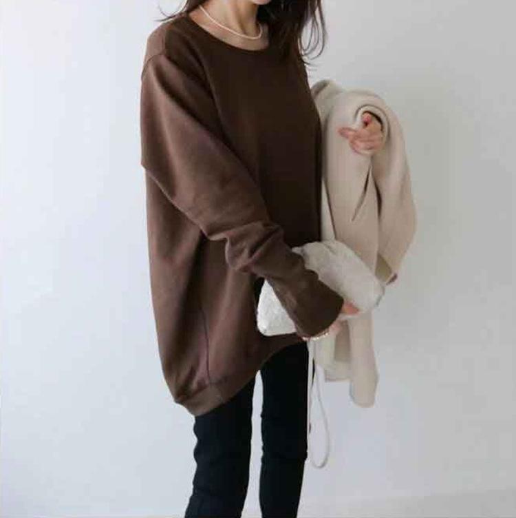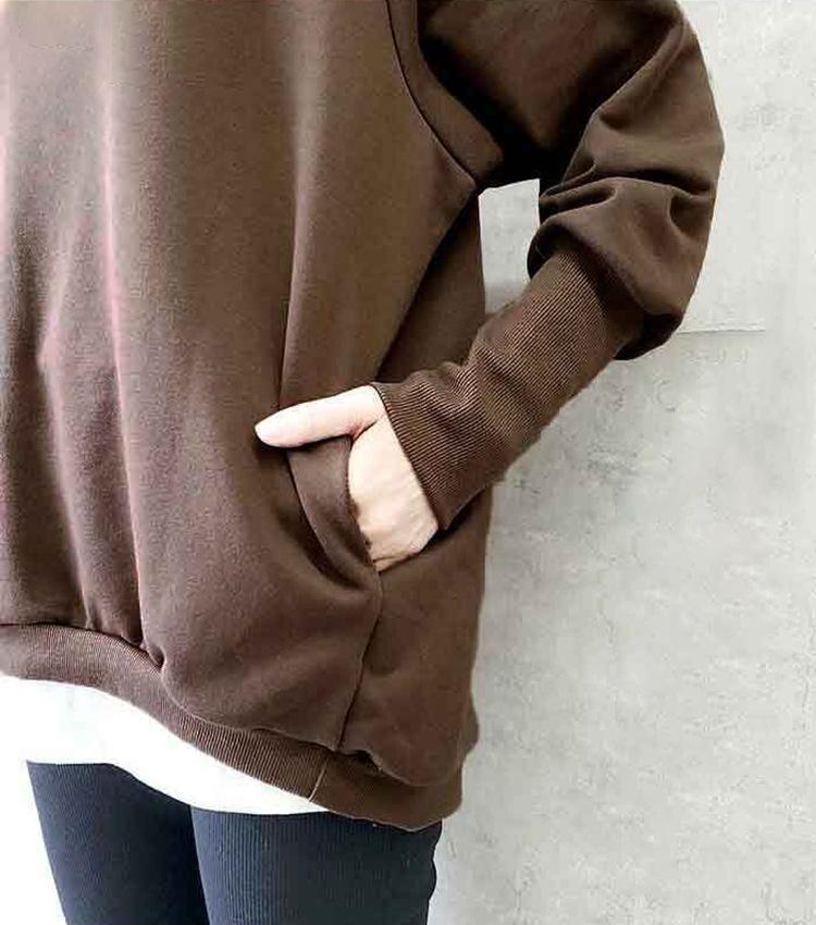Nueva sudadera japonesa de otoño con cuello redondo y bolsillo para mujer, sencilla, holgada, informal, de color sólido, combinable con todo, de manga larga, Amazon