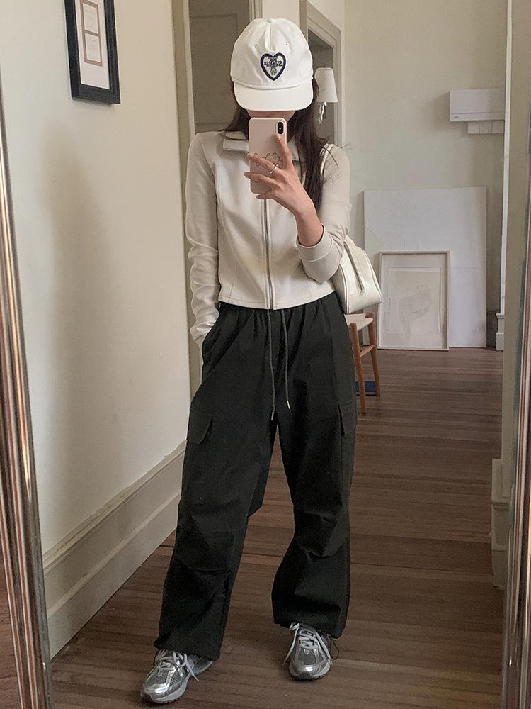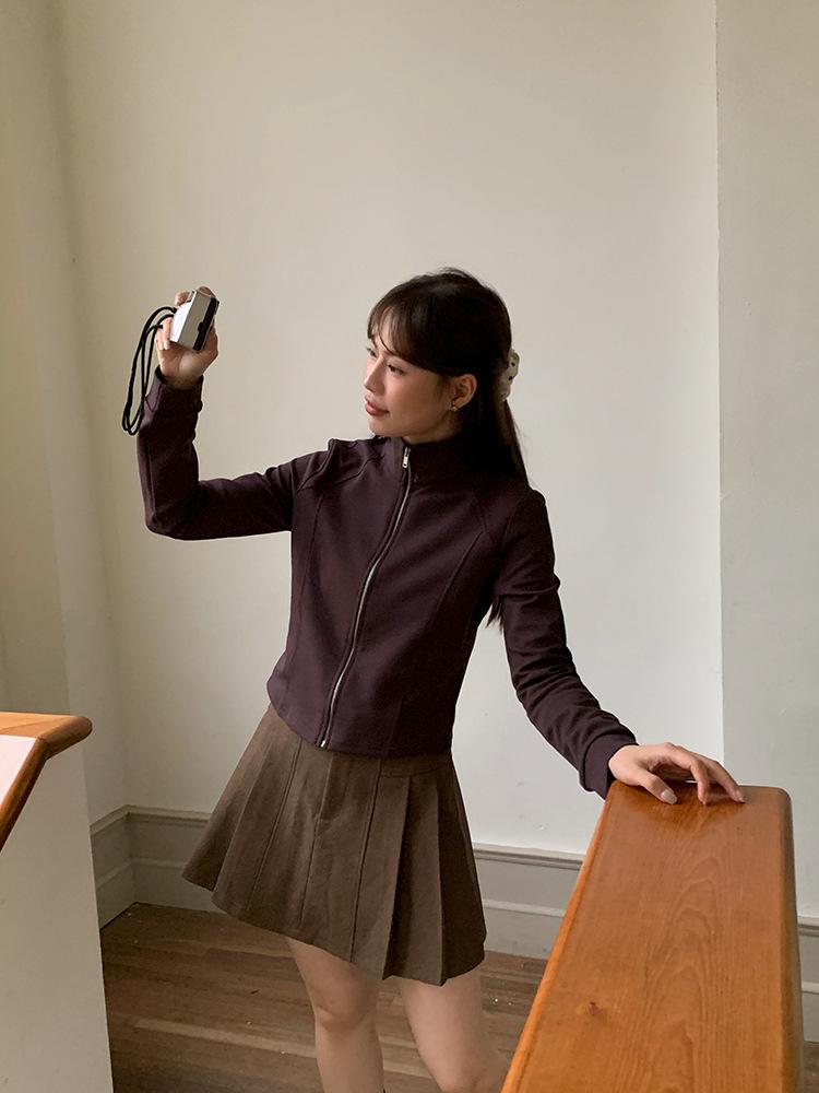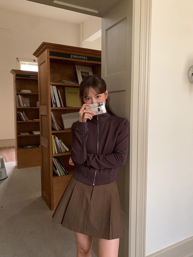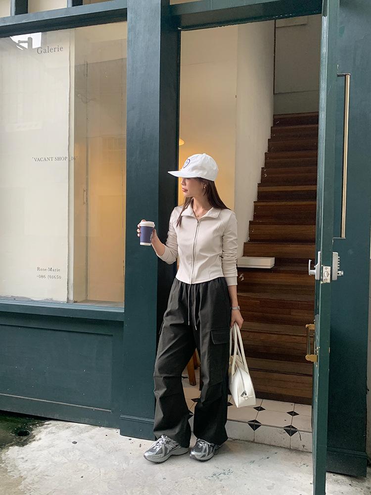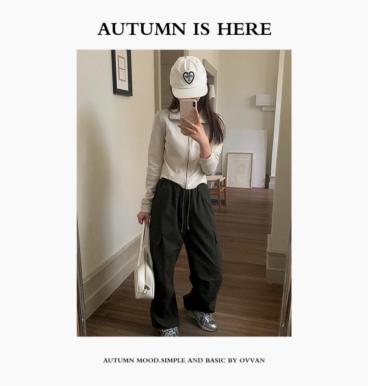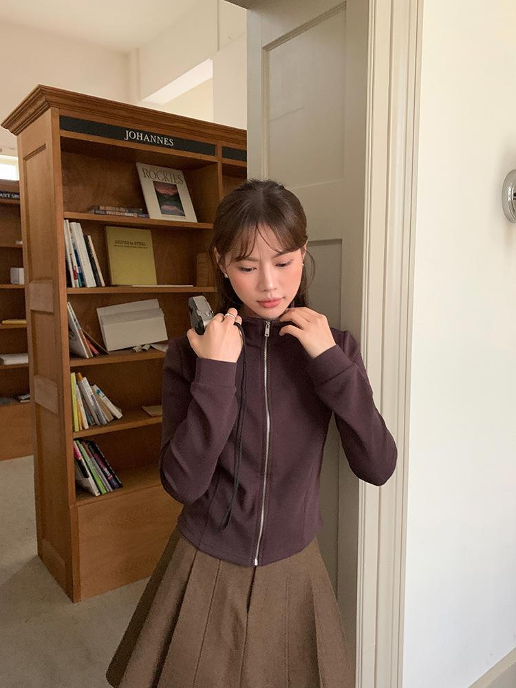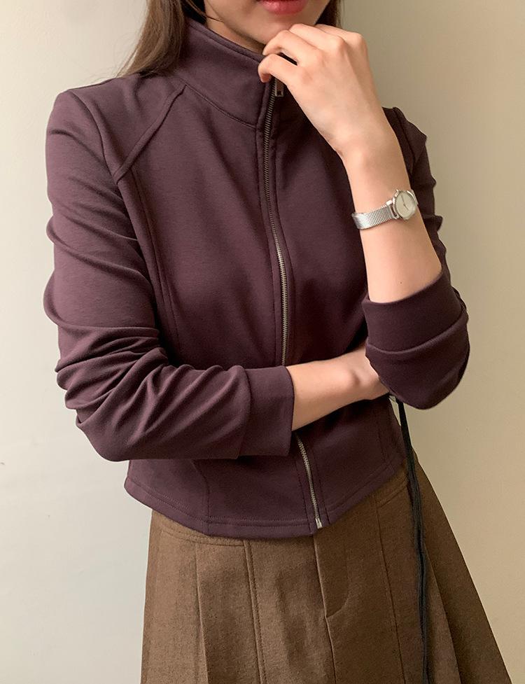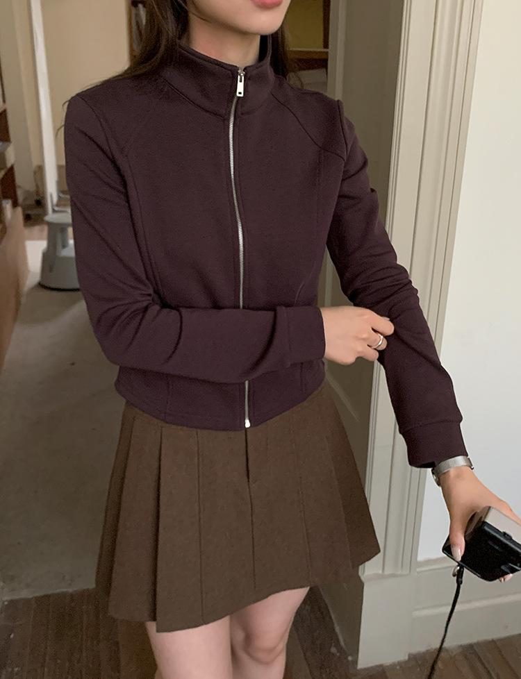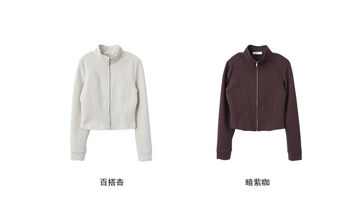 [Oufan] Chaqueta Corta Retro con Cuello Mao y Cierre para Mujer 2024 Otoño Nueva Ajustada Adelgazante Manga Larga Cárdigan 1023