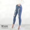Amazon Jeans Casuales Versátiles para Mujer Verano Nuevo Europeo y Americano Rotos de Pie Pequeño Lápiz Cintura Alta Ajustado Elástico