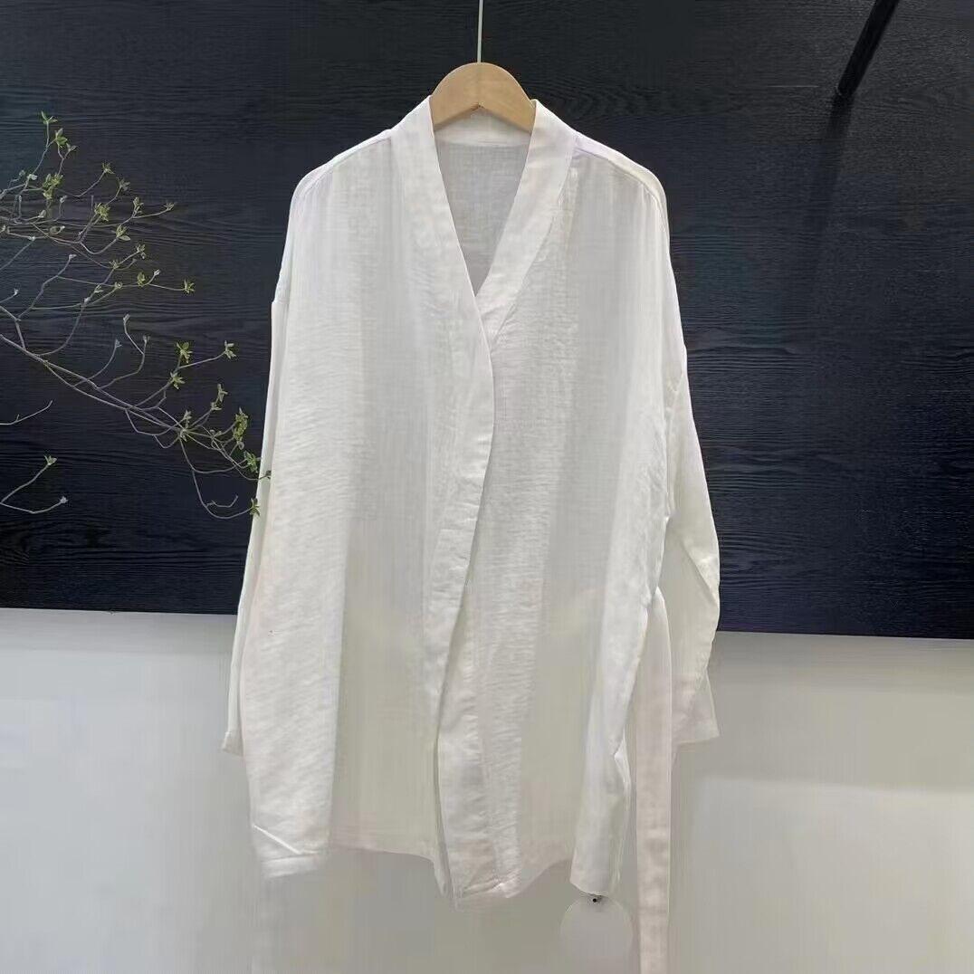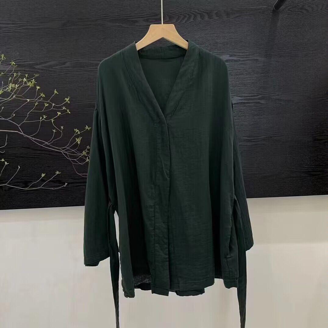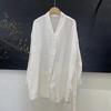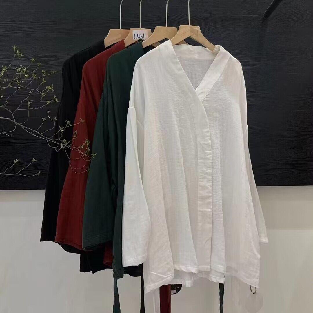 Camiseta de algodón con protección solar para mujer, estilo coreano fino, a la moda, holgada, antiedad, con cuello en V, estilo francés, para verano de 2024