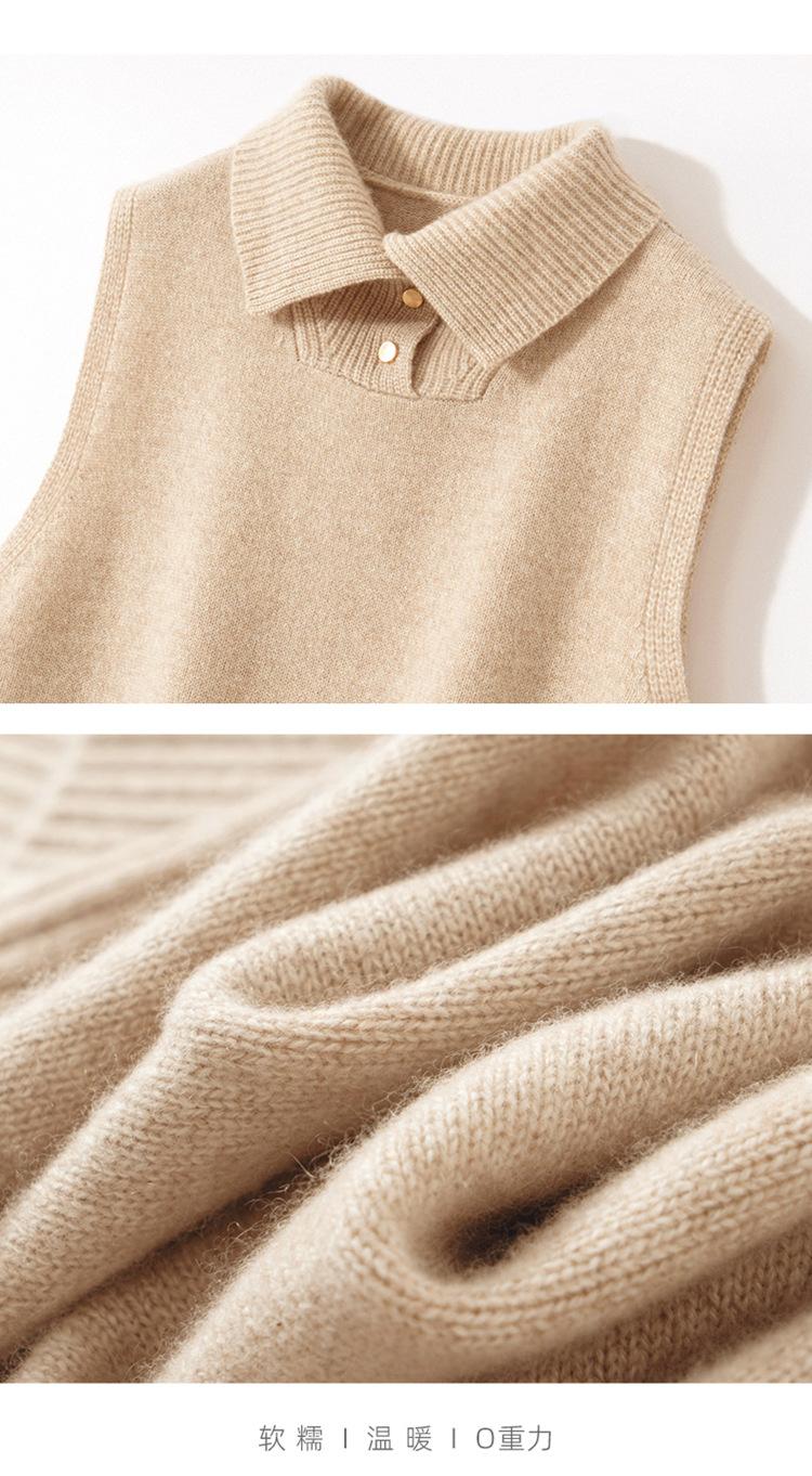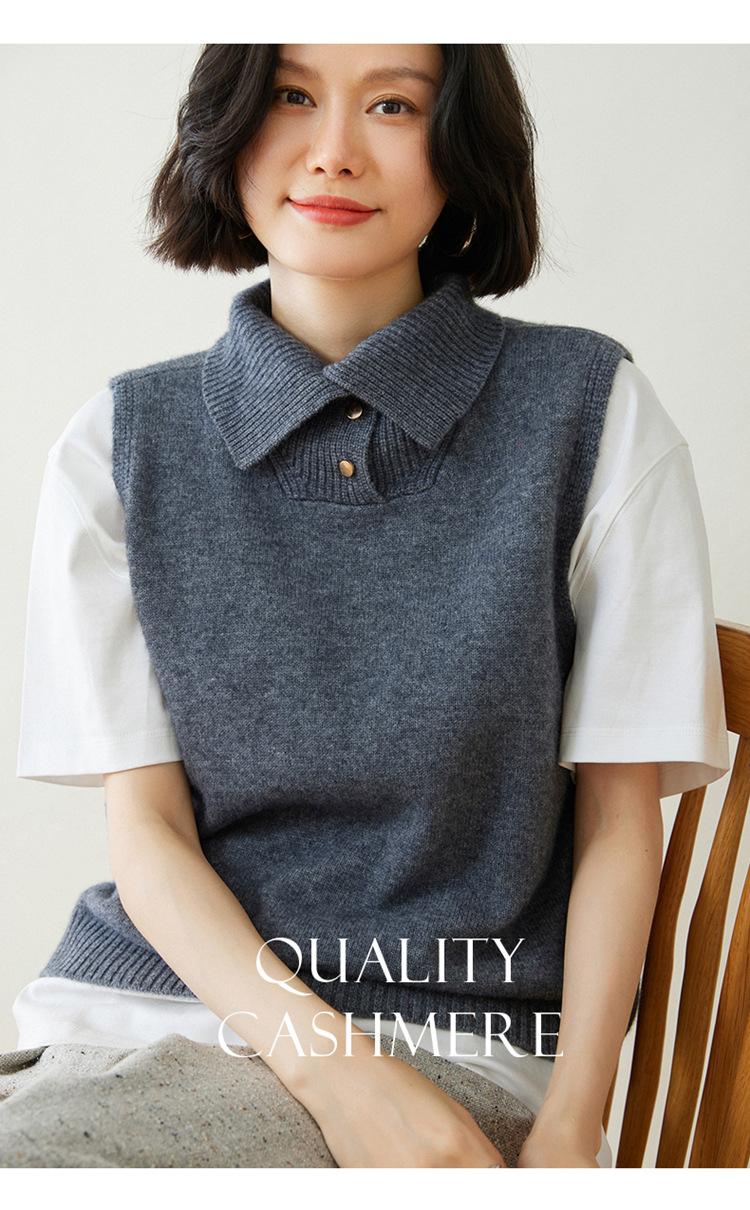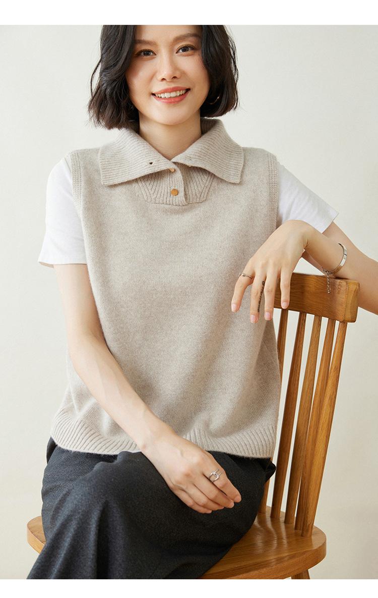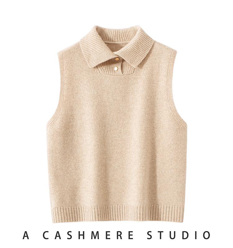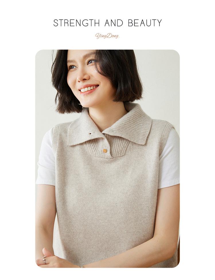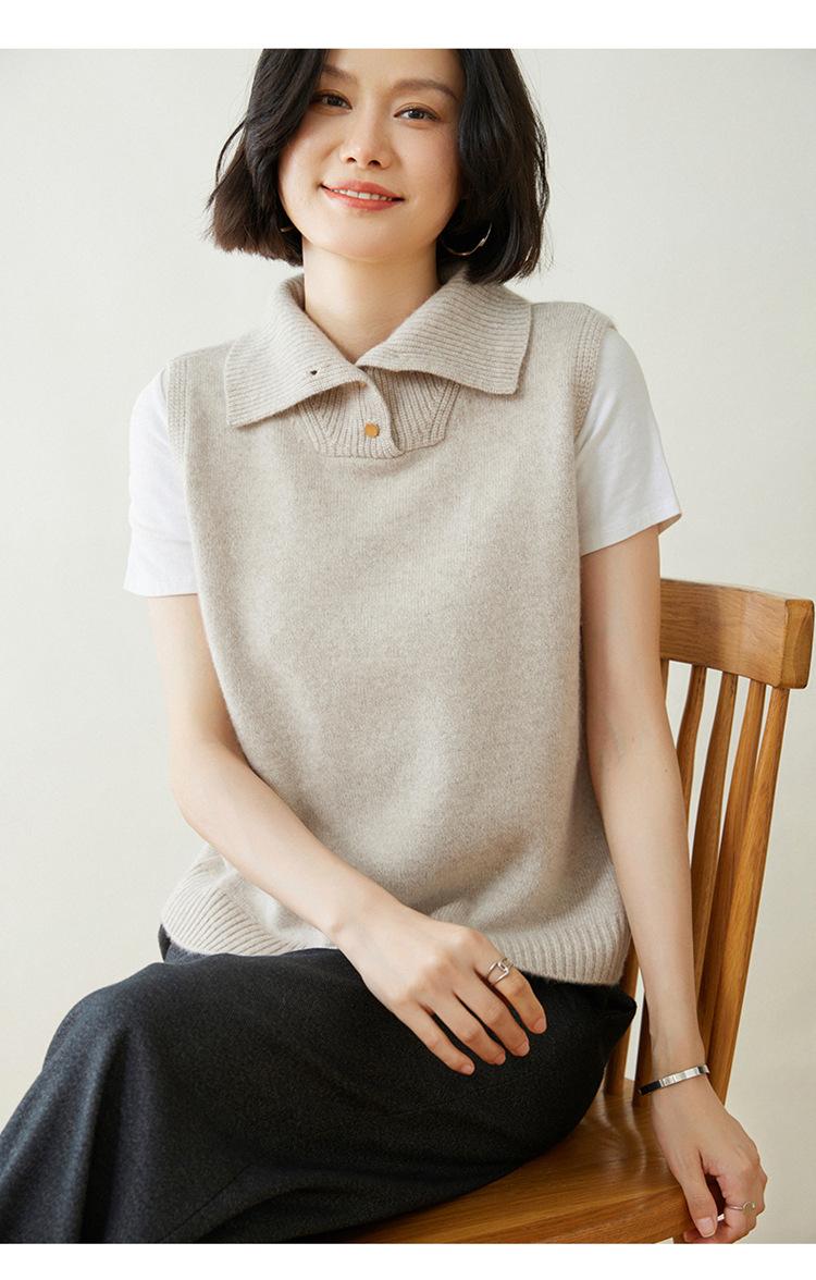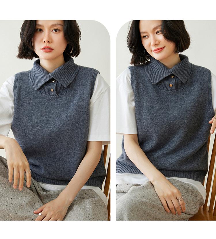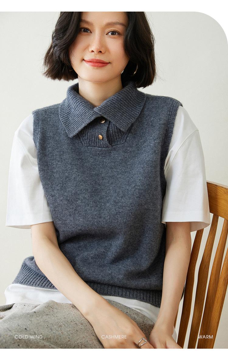 Suéter de Cachemira con Solapa Chaleco sin Mangas para Mujer Color Sólido Holgado Ajustado Cálido para Usar Exterior Chaleco Suave