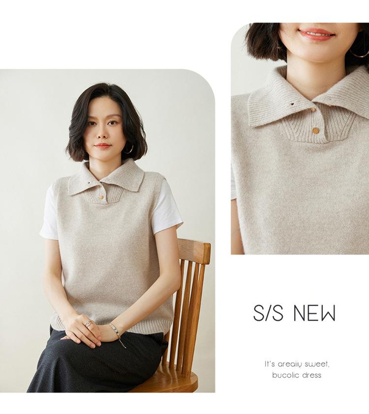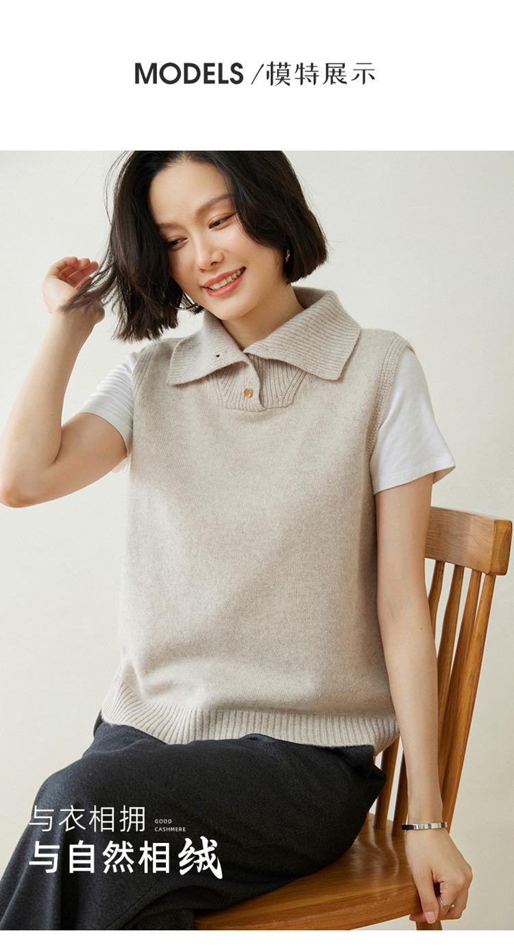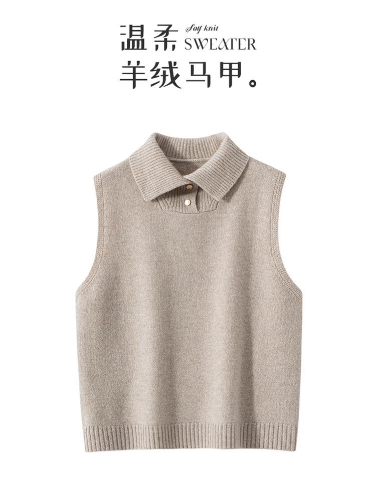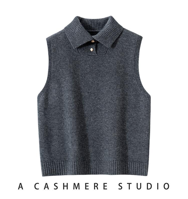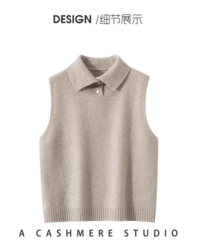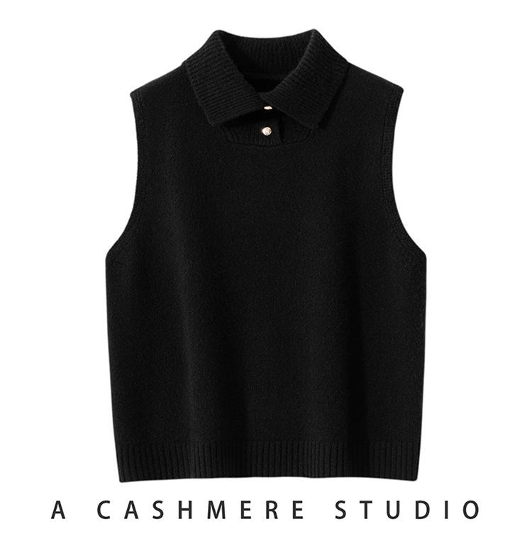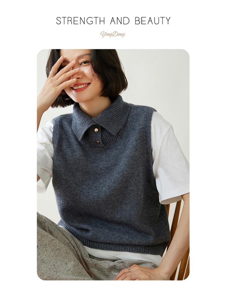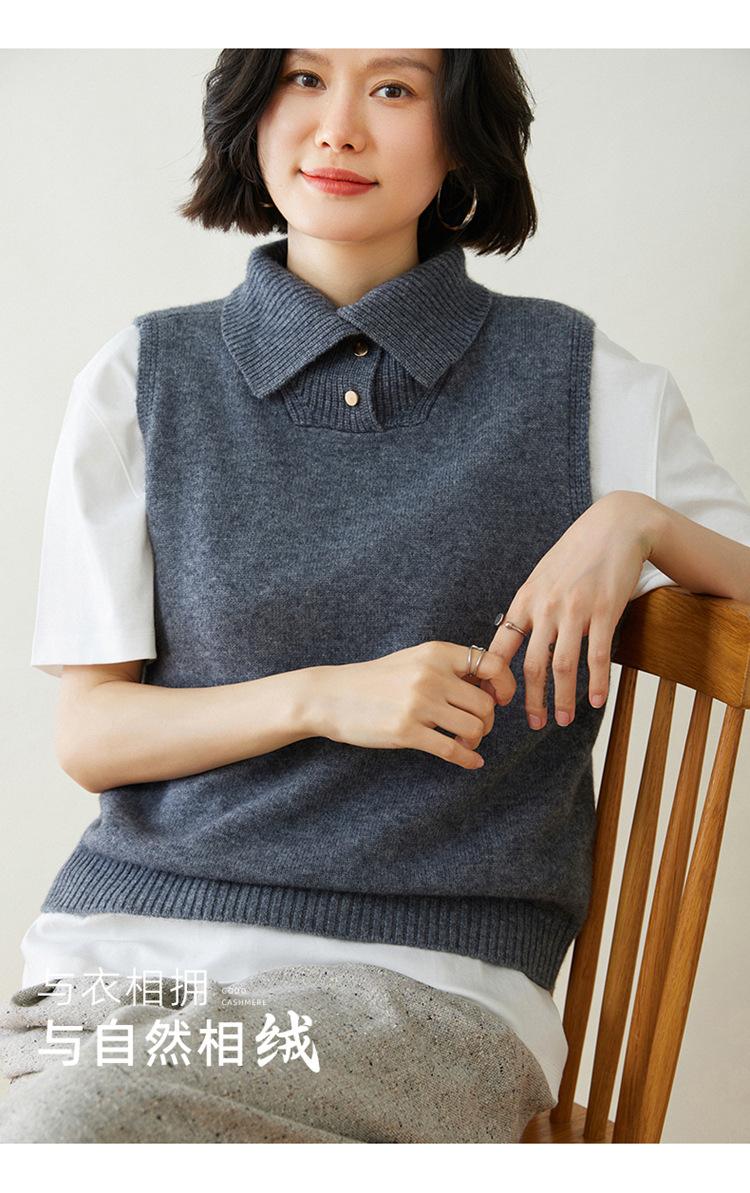 Suéter de Cachemira con Solapa Chaleco sin Mangas para Mujer Color Sólido Holgado Ajustado Cálido para Usar Exterior Chaleco Suave