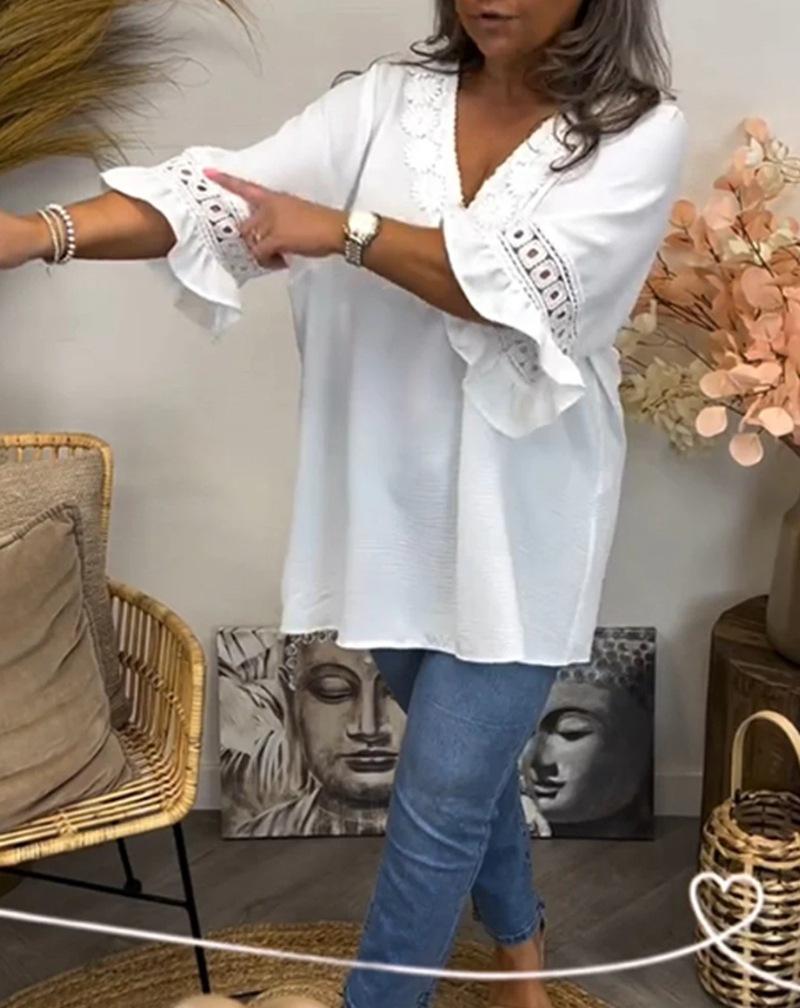 Top elegante con cuello en V y mangas abullonadas para mujer, moda europea y americana, novedad de verano 2024, Amazon