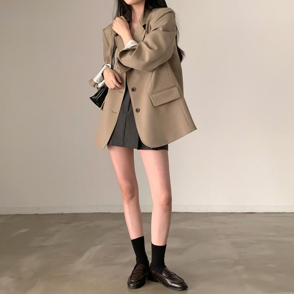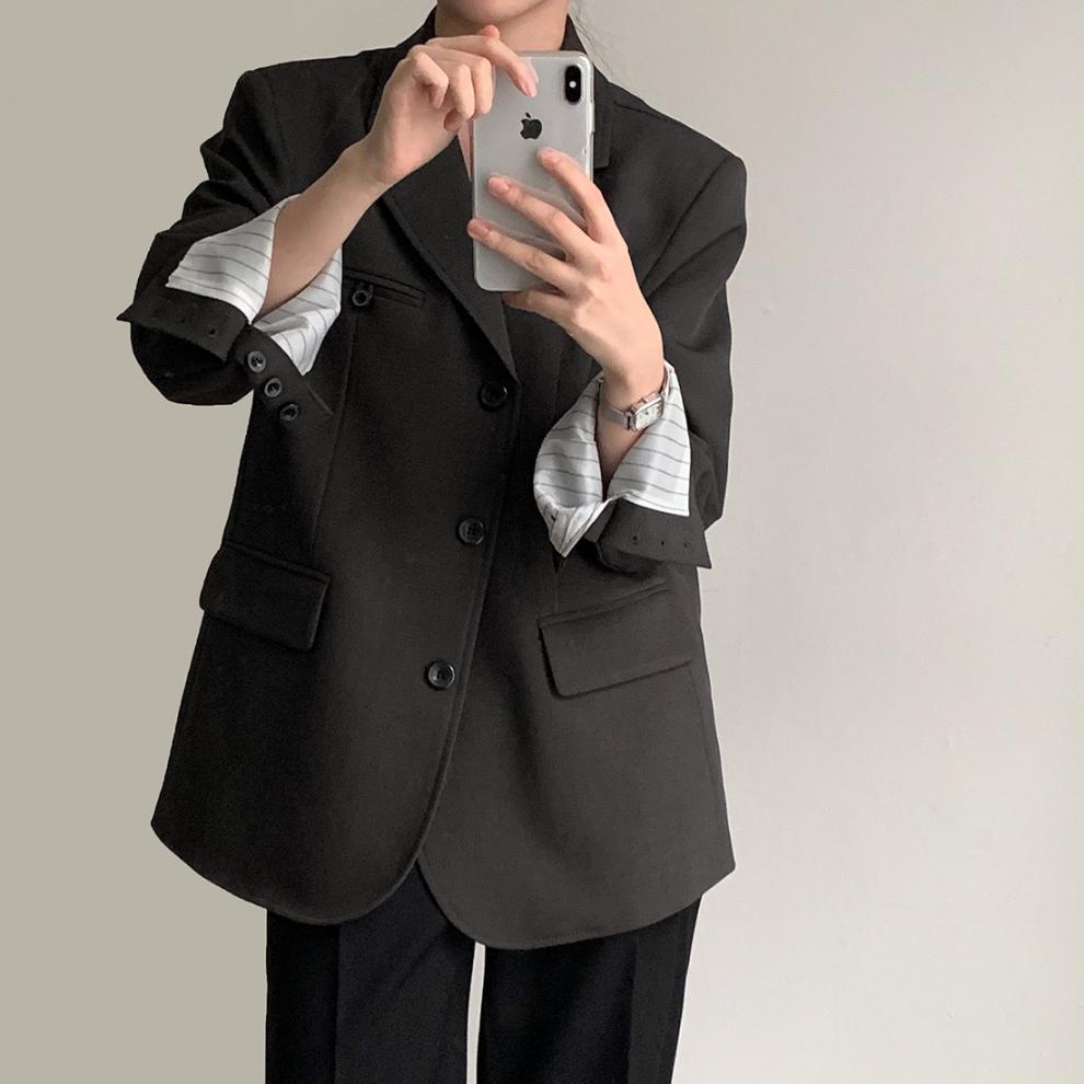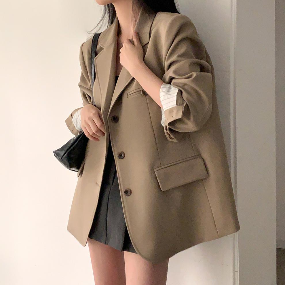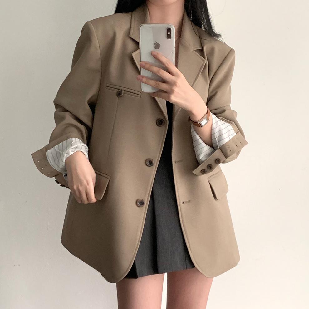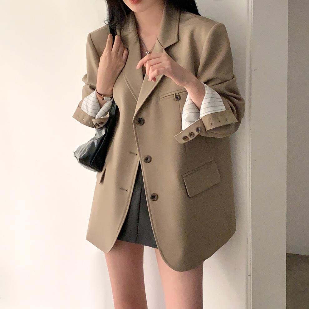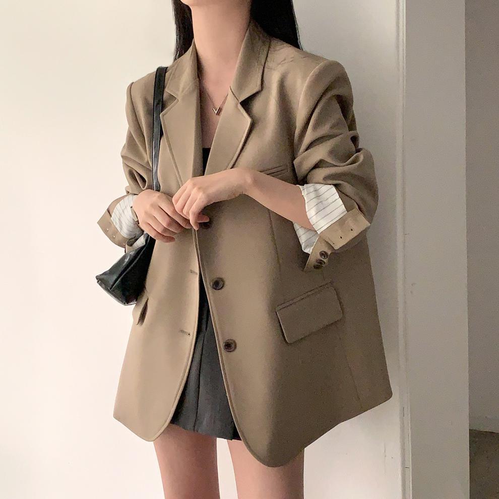 Chaqueta de Traje Coreana para Mujer Dongdaemun de Alta Calidad Chic Elegante Contrastante Holgada de Un Solo Botón de Manga Larga
