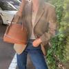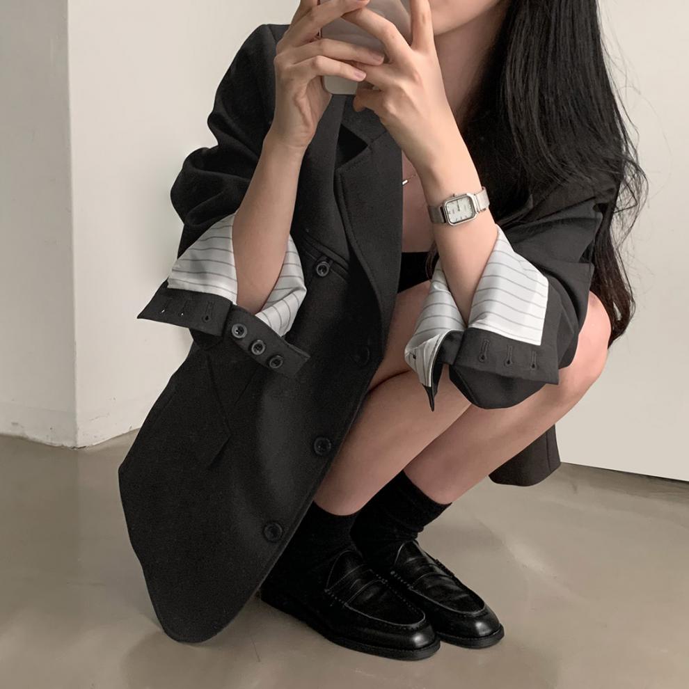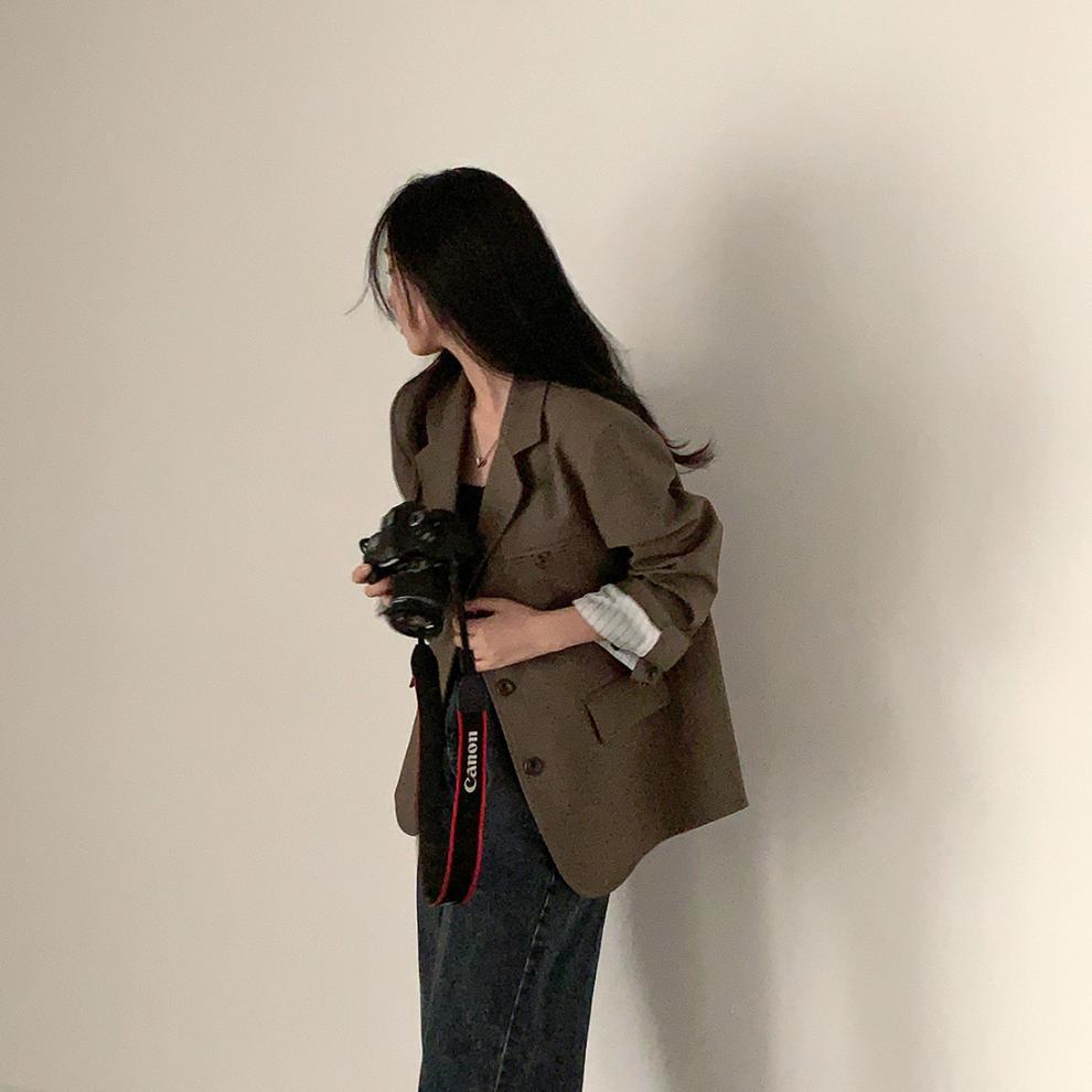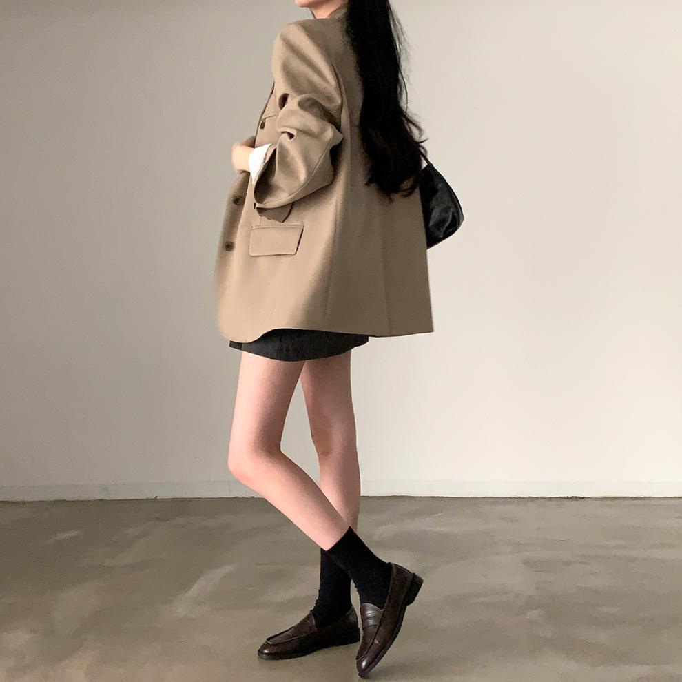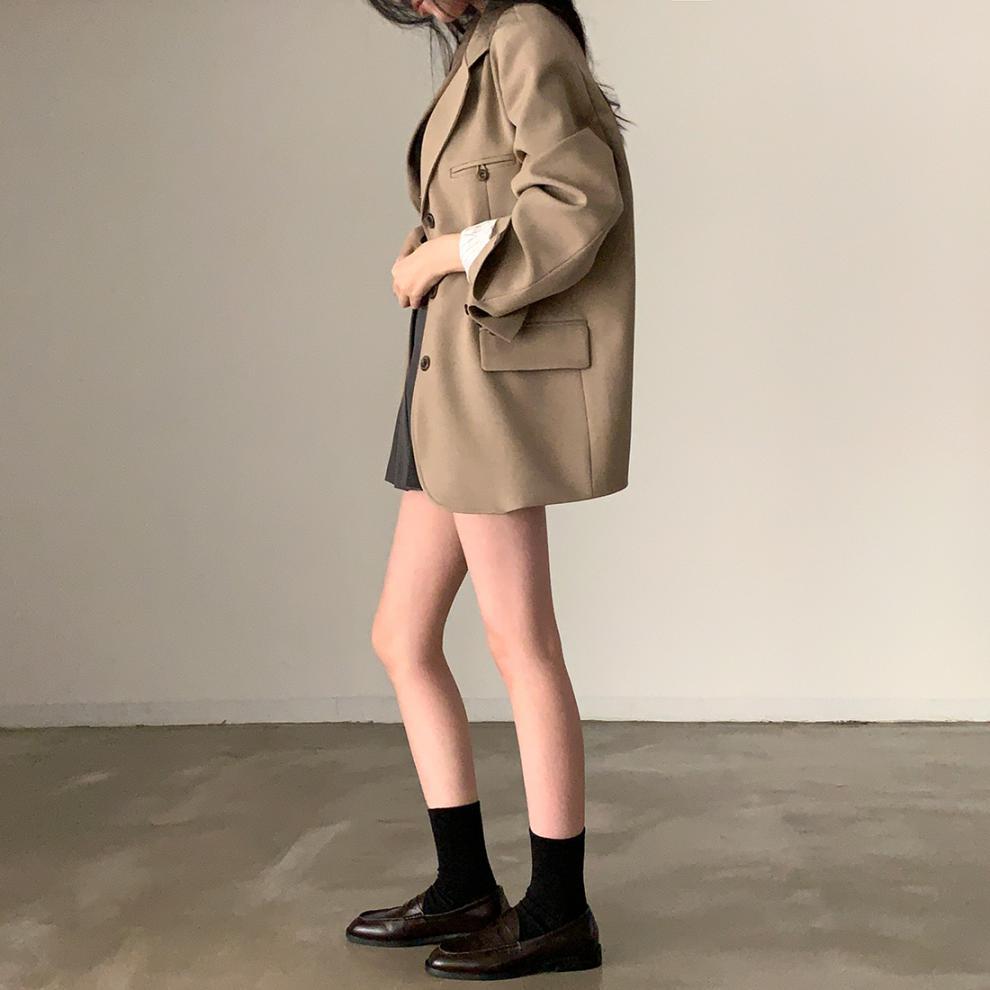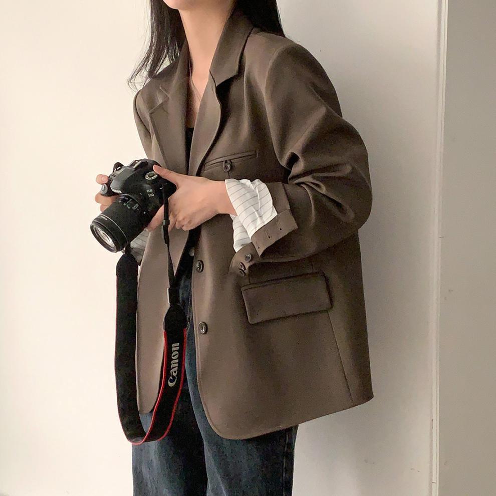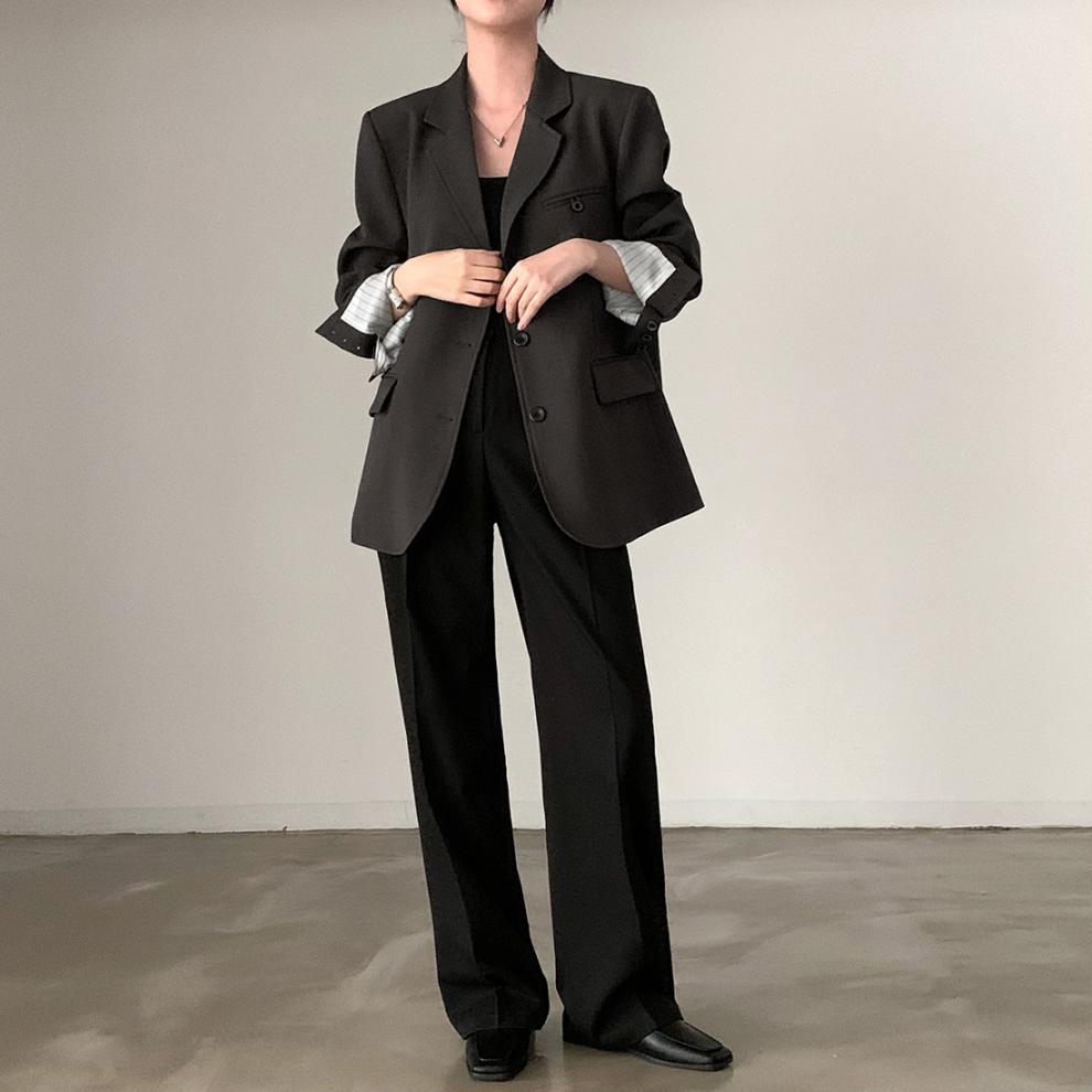 Chaqueta de Traje Coreana para Mujer Dongdaemun de Alta Calidad Chic Elegante Contrastante Holgada de Un Solo Botón de Manga Larga