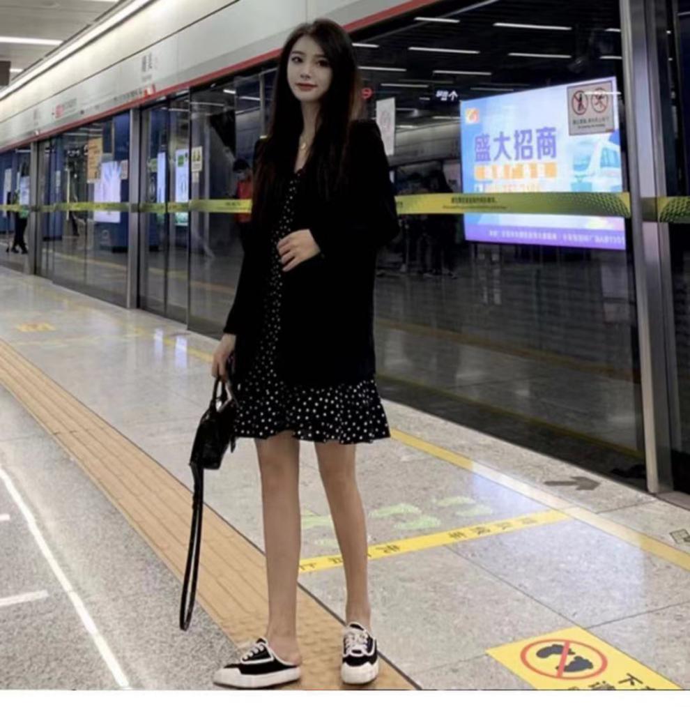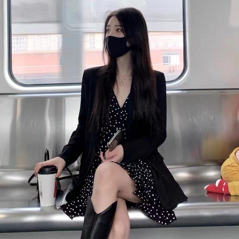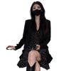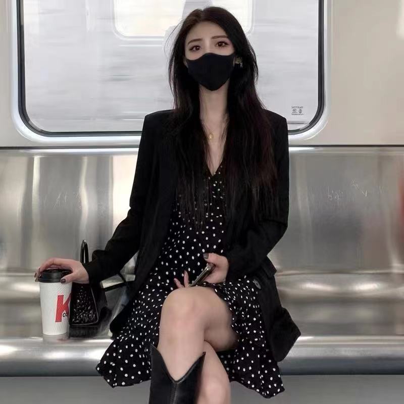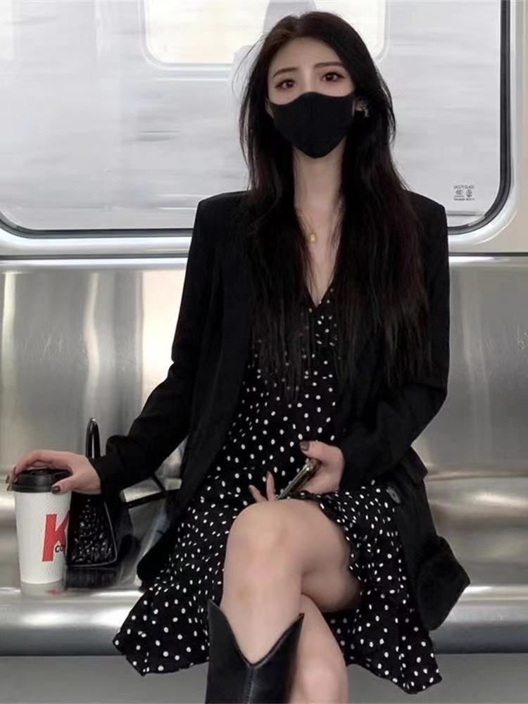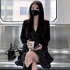 Vestido 2024 Nuevo Traje de Moda Cintura Blazer para Mujer Primavera y Otoño Vestido de Tirantes de Lunares Conjunto de Dos Piezas
